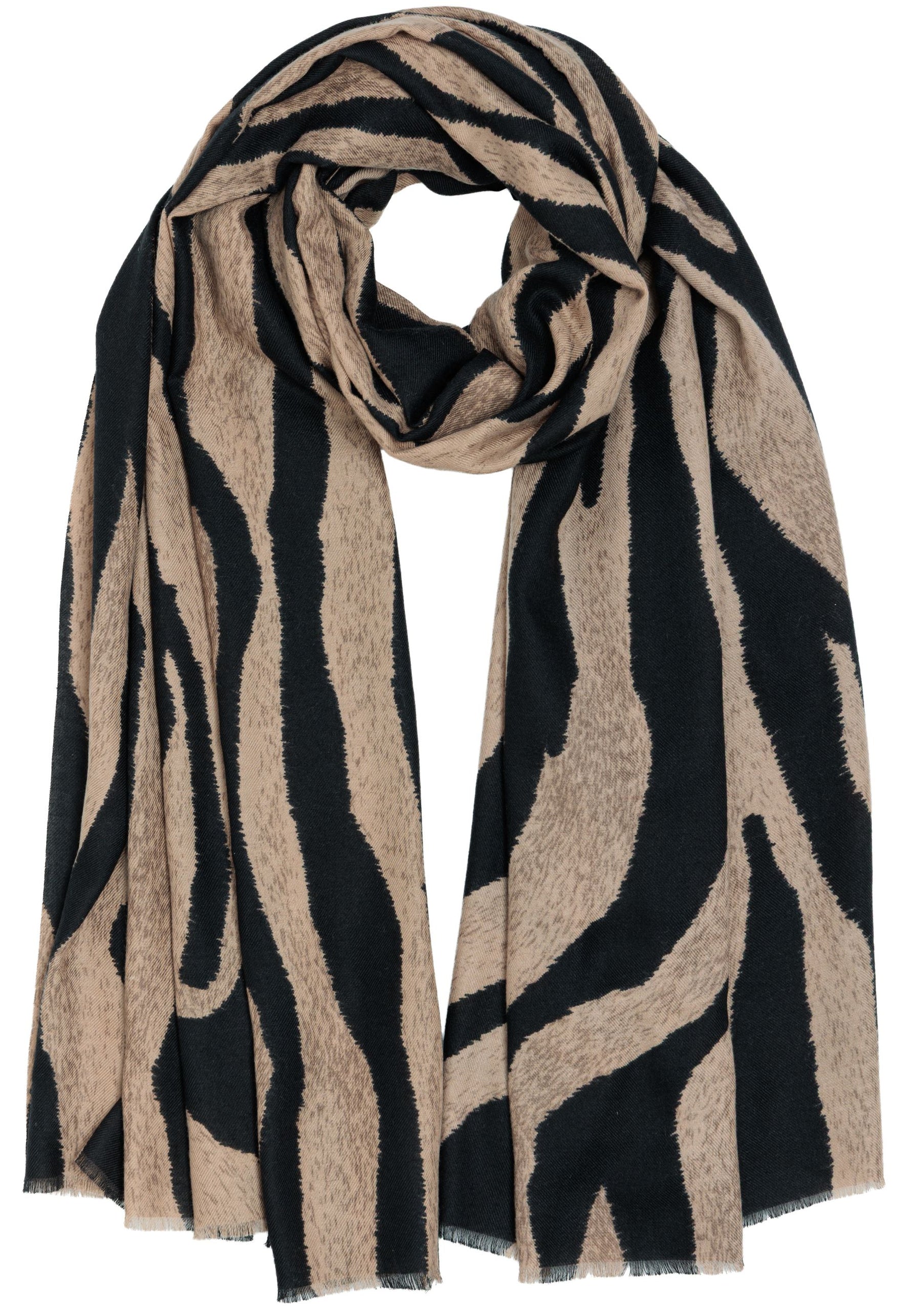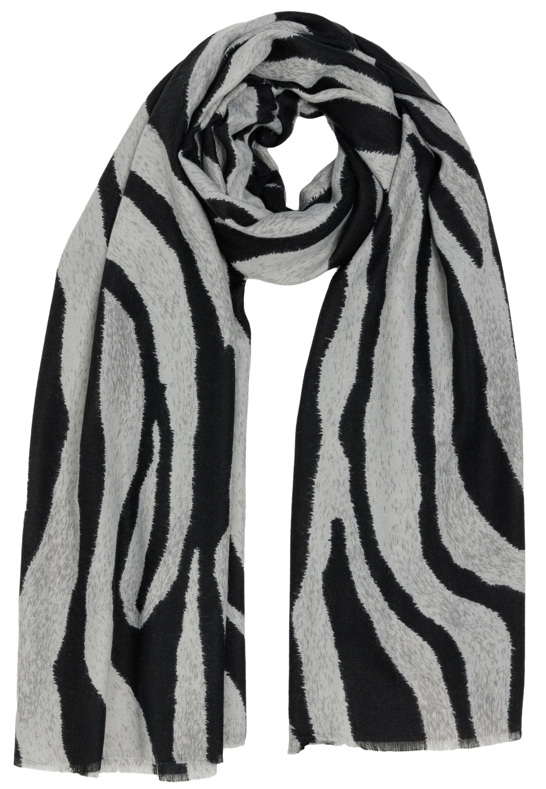 Unser stilvoller Schal im angesagten Zebra Design ist ein modisches Statement und zugleich angenehm wärmend. Gefertigt aus einer hochwertigen Materialmischung, fühlt er sich weich auf der Haut an und bietet zugleich angenehme Wärme - ideal für die Übergangszeit und milde Wintertage. Mit seinen großzügigen Maßen von 180 × 70 cm lässt er sich vielseitig tragen - ob lässig um den Hals gelegt, elegant über die Schultern drapiert oder kuschelig eingewickelt. Das auffällige Muster in harmonischen Farbkombinationen verleiht jedem Outfit einen Hauch von Extravaganz, während die feine Webstruktur für ein edles Finish sorgt. Mit einem Gewicht von ca. 200 g ist er leicht genug für den Alltag und dennoch wärmend für kühle Tage.