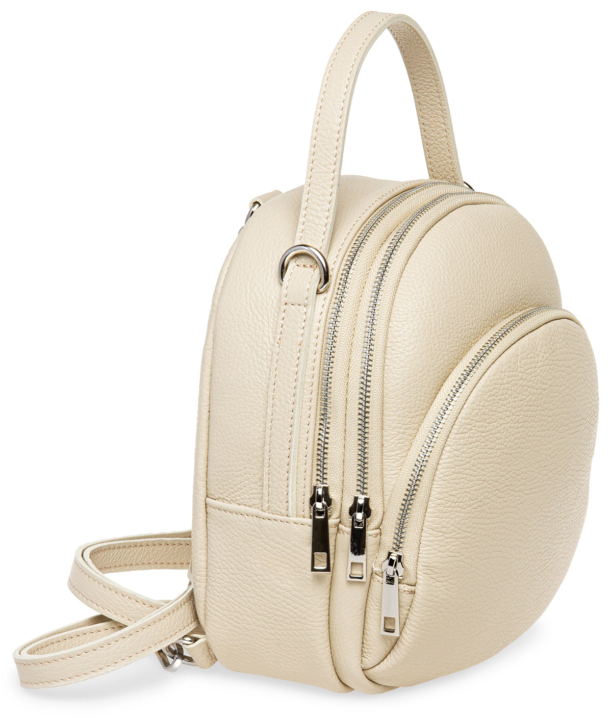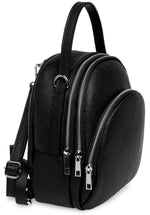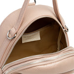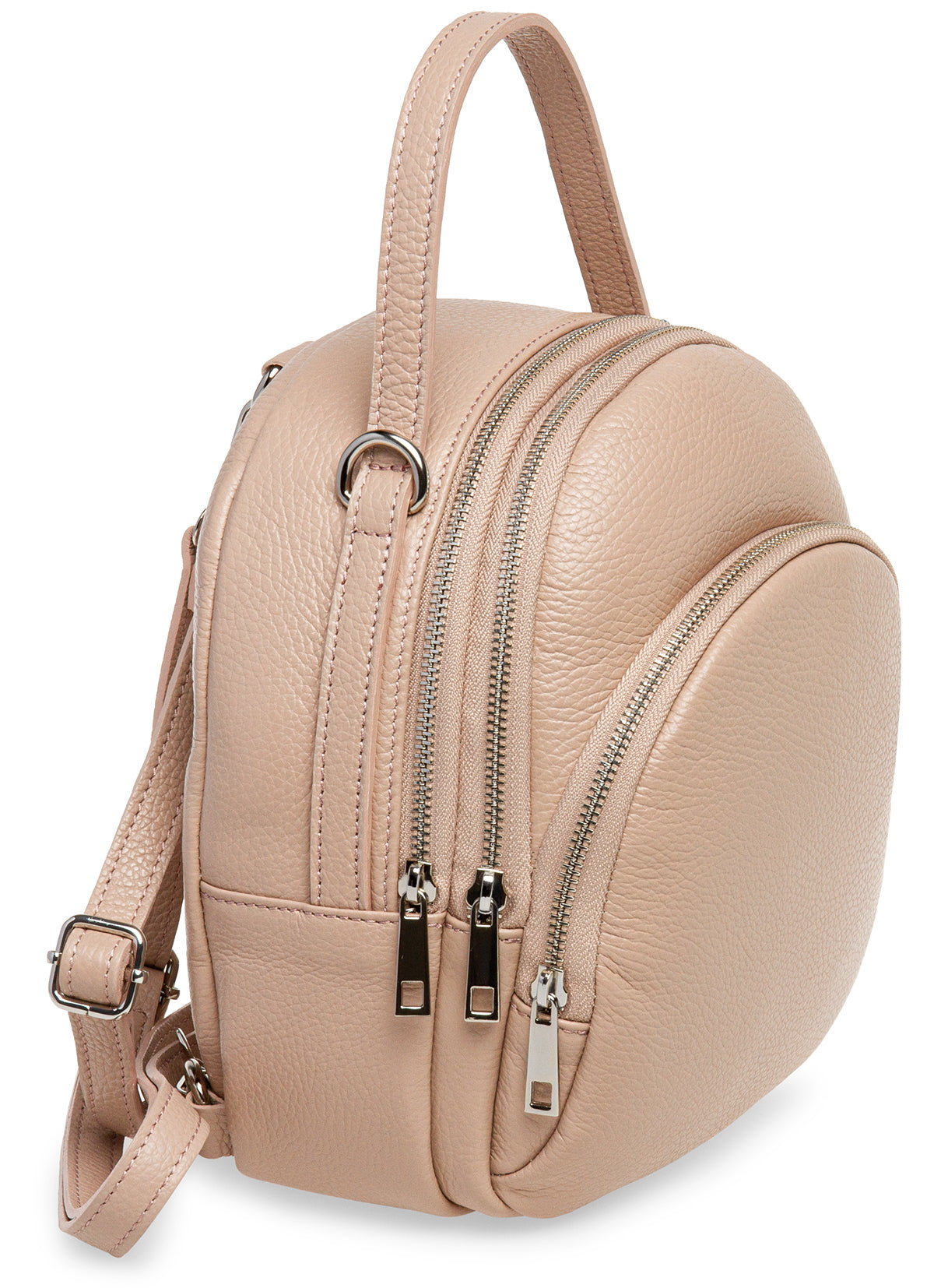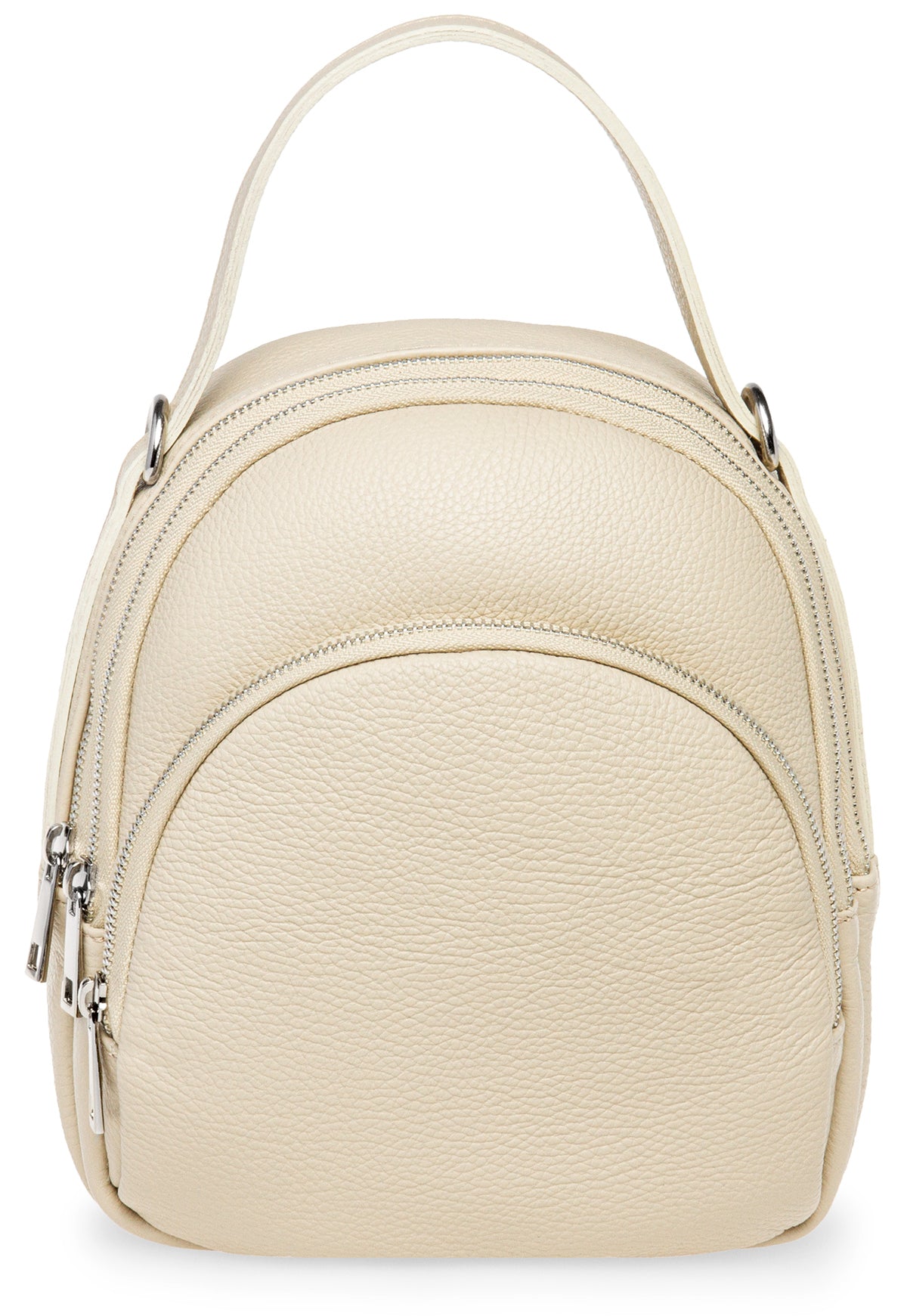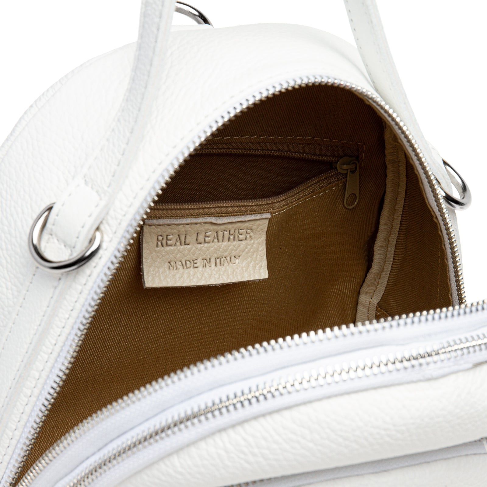 Formschöner, sportlich eleganter Damen Rucksack aus robustem italienischem Rindsleder. Form und Funktion bilden bei diesem hochwertigen Lederrucksack eine ideale Symbiose. Das besondere Design mit den halbrunden Metallreißverschlüssen macht den Daypack zu etwas ganz Besonderem. Mit seinen insgesamt 3 verschließbaren Fächern bietet der Rucksack zudem eine optimale Funktionalität. Ein zusätzliches verschließbares Sicherheitsfach im Innern des größten Hauptfaches sowie 2 ebenfalls im Hauptfach angebrachte Seitentaschen machen den City Rucksack zu einem echten Organisationstalent. Die Schultergurte sind längenverstellbar und lassen sich somit optimal an Ihre Bedürfnisse anpassen. Sie können die Schultergurte mit Hilfe der angebrachten Karabiner einfach abnehmen und an die am Henkel angebrachten Ösen anhängen. So wird der Rucksack zu einer praktischen Umhängetasche. Insgesamt eine sehr gut durchdachte, außergewöhnliche Tasche an der kein Teil zu viel und kein Teil zu wenig dran ist. Das Obermaterial besteht aus regen- und kratzunempfindlichem, leicht genarbtem Rindsleder. Maße des Rucksacks: BxHxT ca. 22x24(ohne Henkel) x13 cm. Material: Rindsleder. Caspar - Made in Italy.