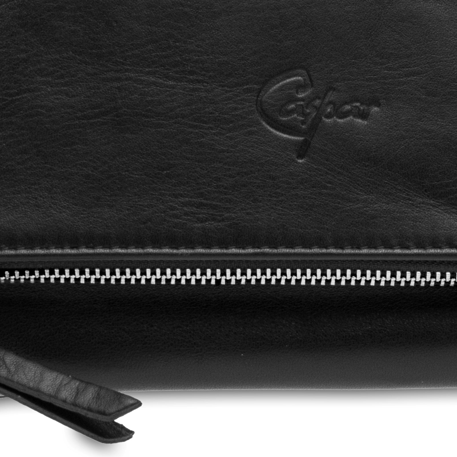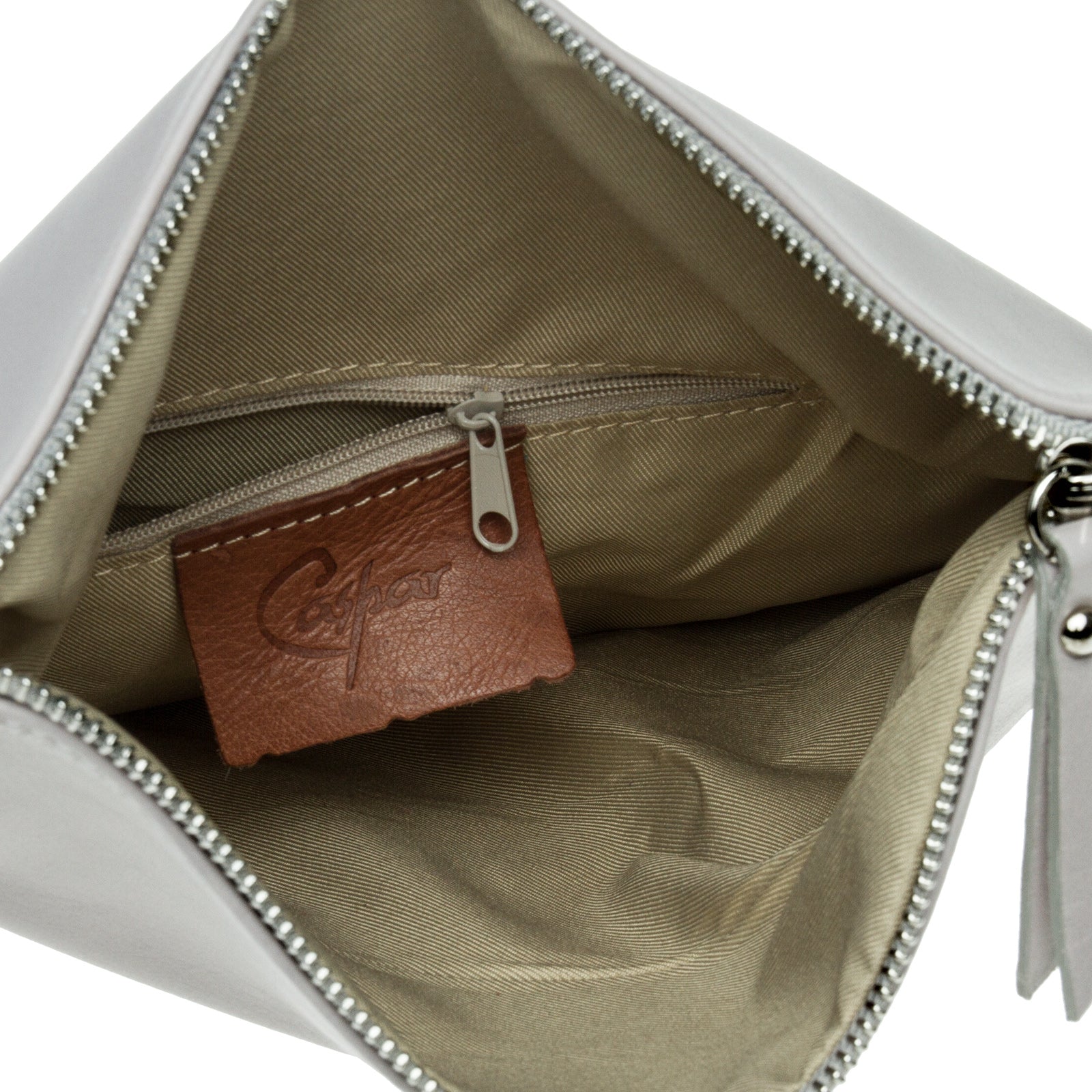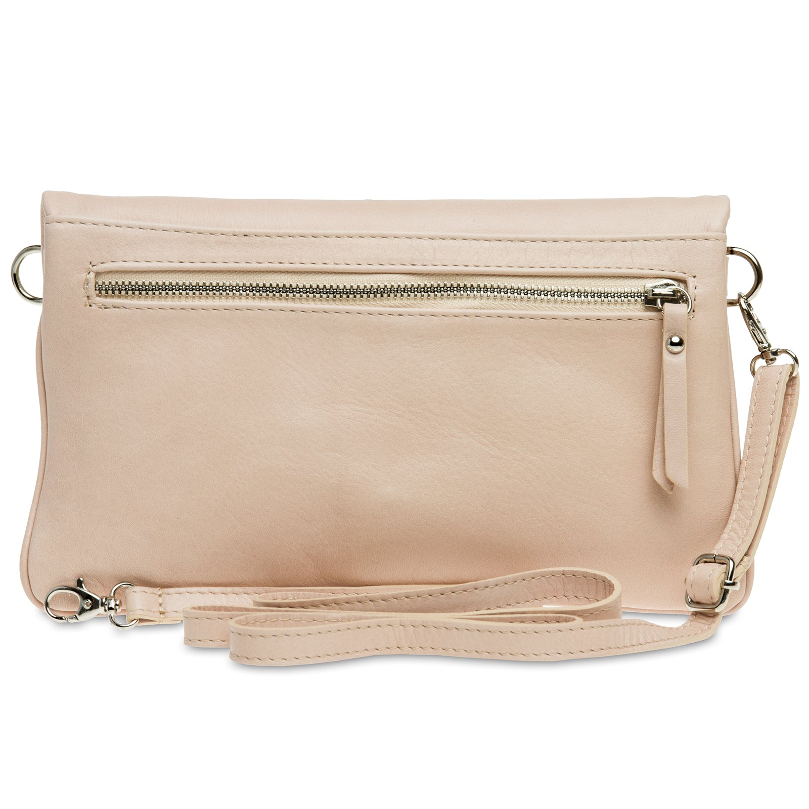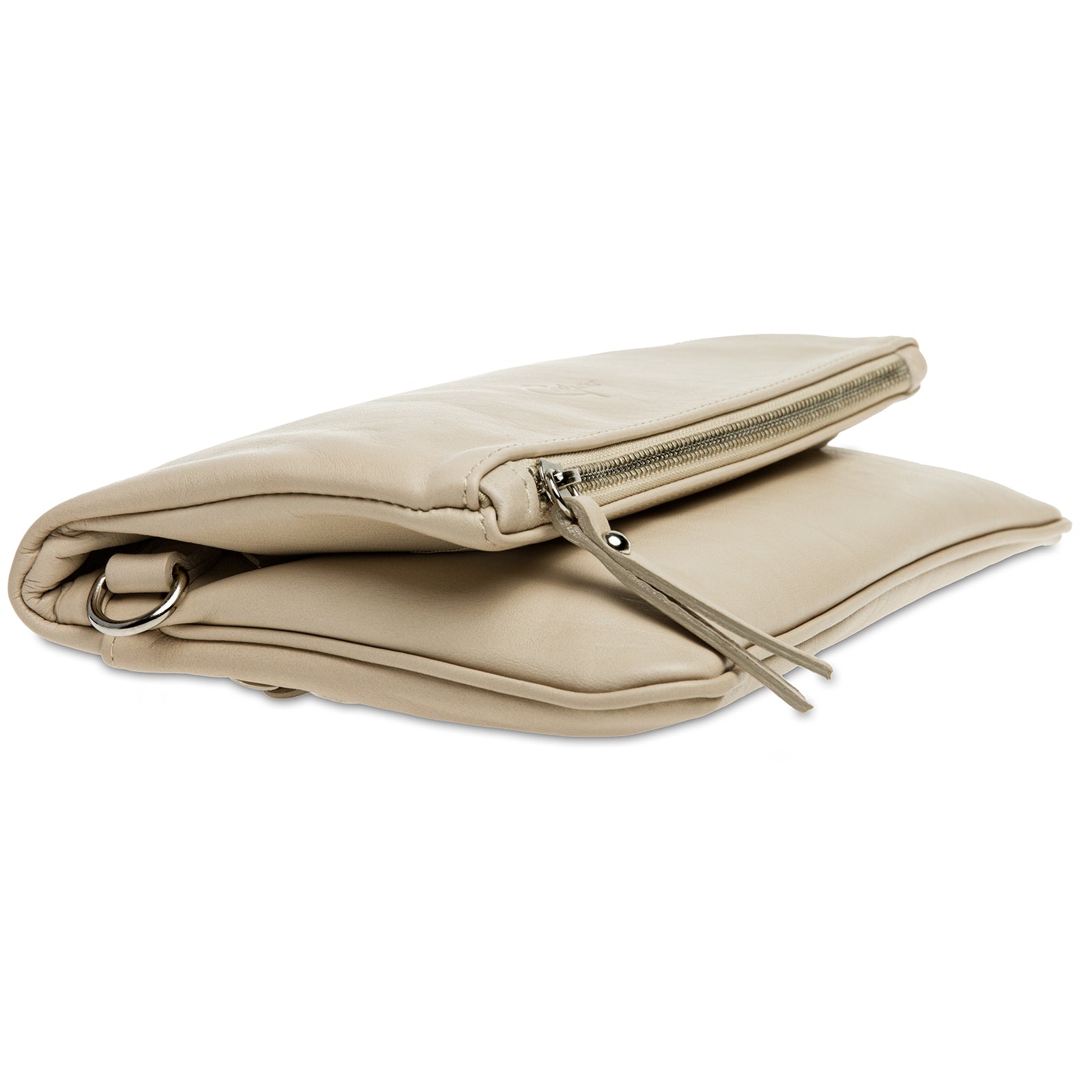 Superschöne elegante Damen Clutch aus feinem italienischem Nappaleder. Diese Abendtasche ist die pefekte Begleiterin für Ihren stilvollen Auftritt. Sie können die Tasche mit Hilfe des abnehmbaren Schultergurtes (Länge ca. 130cm) bequem über den Schulter oder ganz ohne Gurt als klassische Clutch unter dem Arm oder auch in der Hand tragen. Die Tasche hat perfekte Abmessungen, ist nicht zu groß und nicht zu klein. Handy, Lippenstift, Geldbörse, etc. passen problemlos hinein. Das Leder ist hochwertig, angenehm weich und trotzdem sehr robust. Das Design zurückhaltend und schlicht. Mit dieser Clutch beweisen Sie Stil und Klasse! Unter dem großen Überschlag sowie auf der Rückseite der Lederhandtasche befinden sich Außenfächer mit Metallreißverschluss. Im Innern befindet sich ein großes Hauptfach mit seitlichem verschließbarem Nebenfach. Geschlossen wird die Umhängetasche mit einem an der oberen Kante sitzenden silberfarbenen Reißverschluss. Maße (mit umgeschlagenem Oberteil) BxHxT ca. 26 x 15,5 x 4 cm.