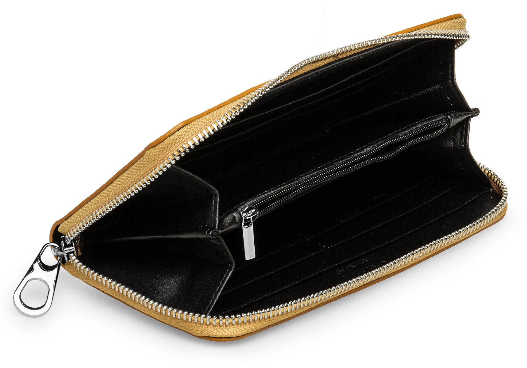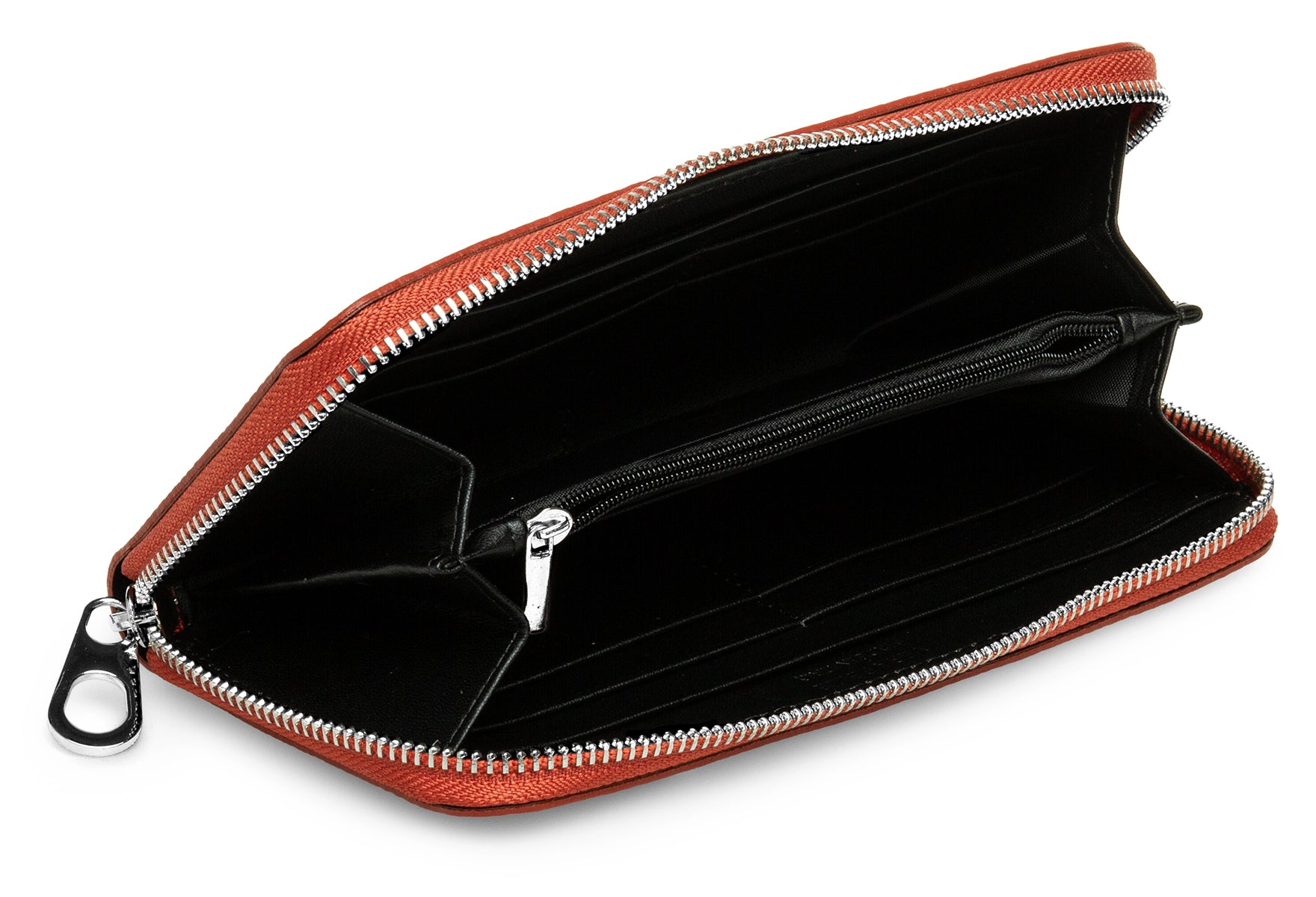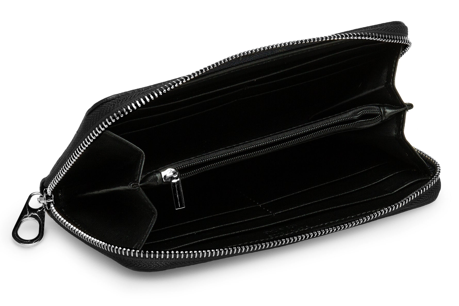 Klassische, flache und lange Damen Geldbörse aus robustem, wasserabweisendem italienischem Rindsleder. Diese Börse bietet eine optimale Balance aus Funktion und Größe. Denn nicht nur das schlichte und hochwertige Design sowie das super angenehme Material und die praktische Größe überzeugen. Auch die hohe Funktionalität dieses Geldbeutels wird Sie Begeistern. Ausgestattet mit insgesamt 8 Kartenfächern, 4 großen Einsteckfächern sowie einem verschließbaren Münzfach sind Sie bestens organisiert und sortiert. Die hochwertige Verarbeitung und Materialqualität sind weitere hervorzuhebende Eigenschaften dieses Geldbeutels. Er wird mit Hilfe eines silberfarbenen umlaufenden Metall-Reißverschlusses geschlossen. Maße in geschlossenem Zustand (LxBxH) ca. 20,5 x 10,5 x 2,5 cm. Material: genarbtes Rindsleder. CASPAR Fashion Collection.