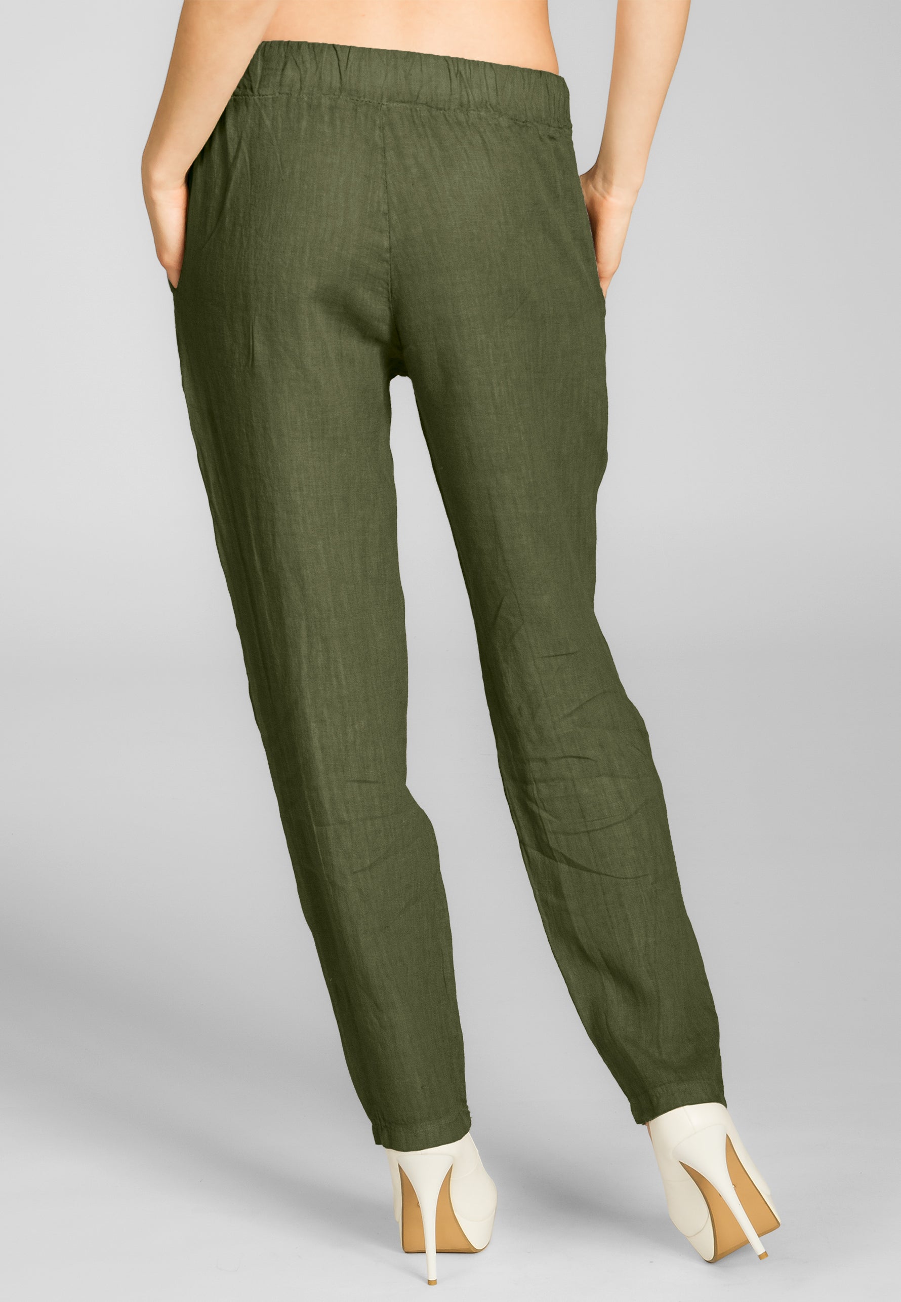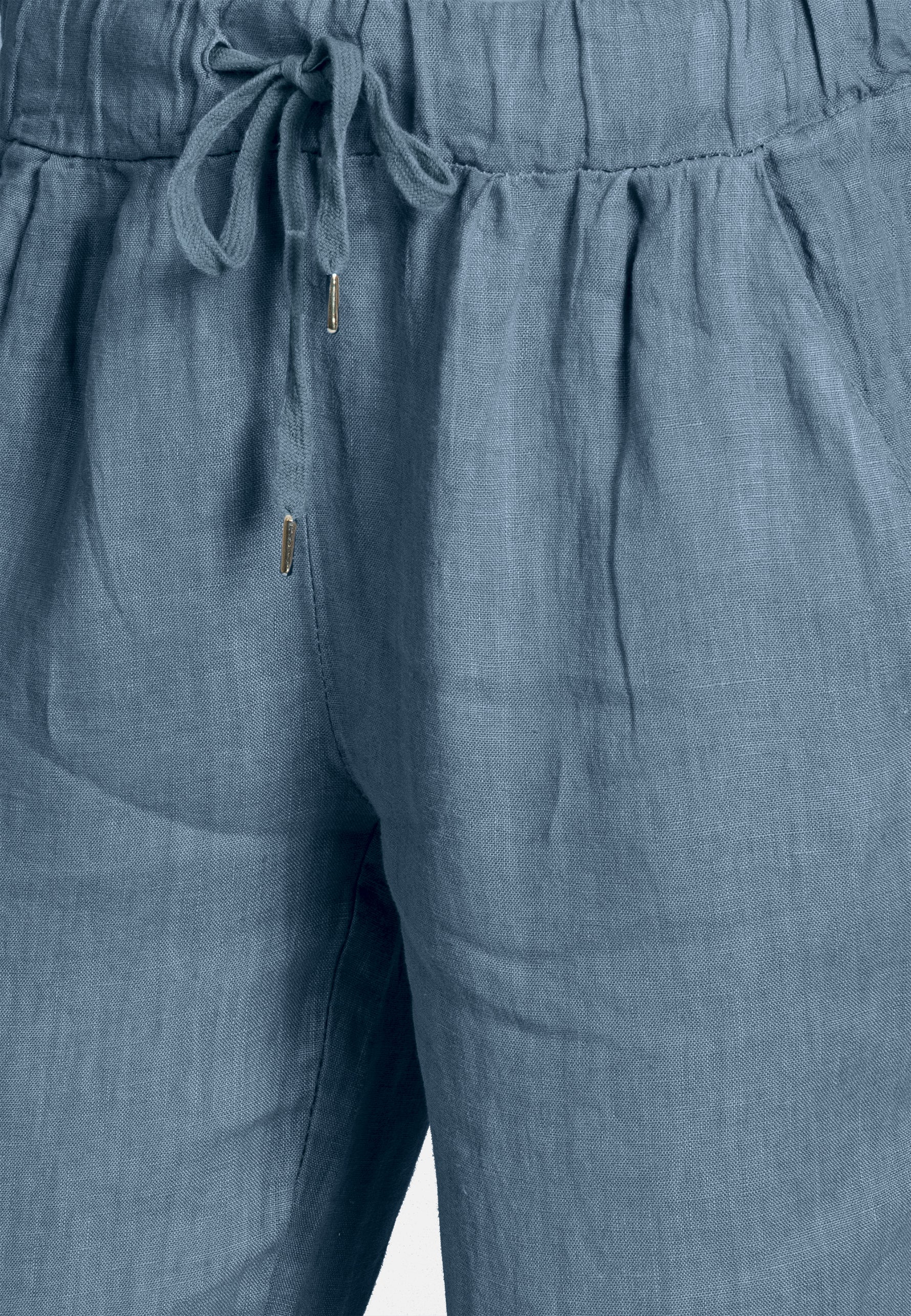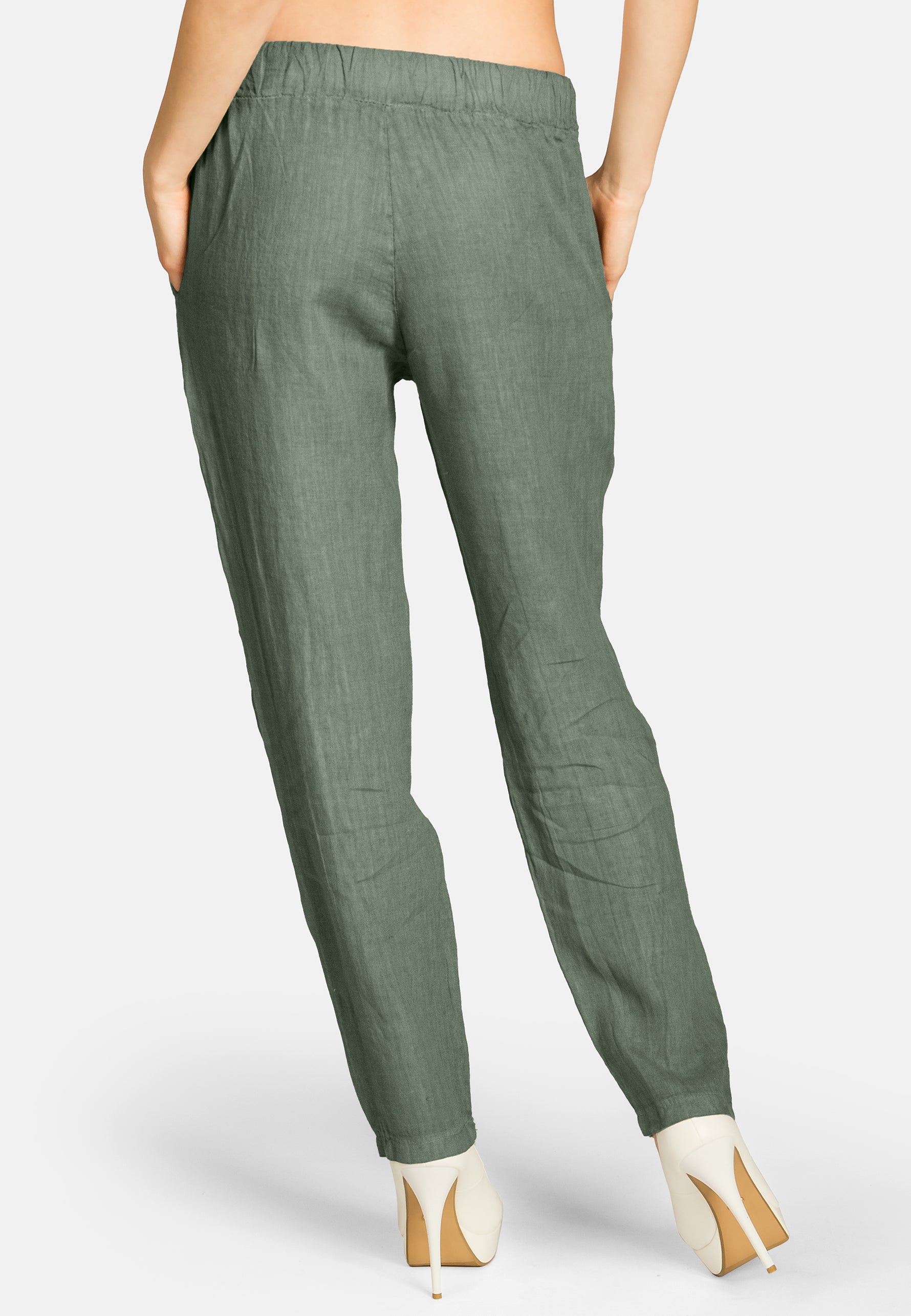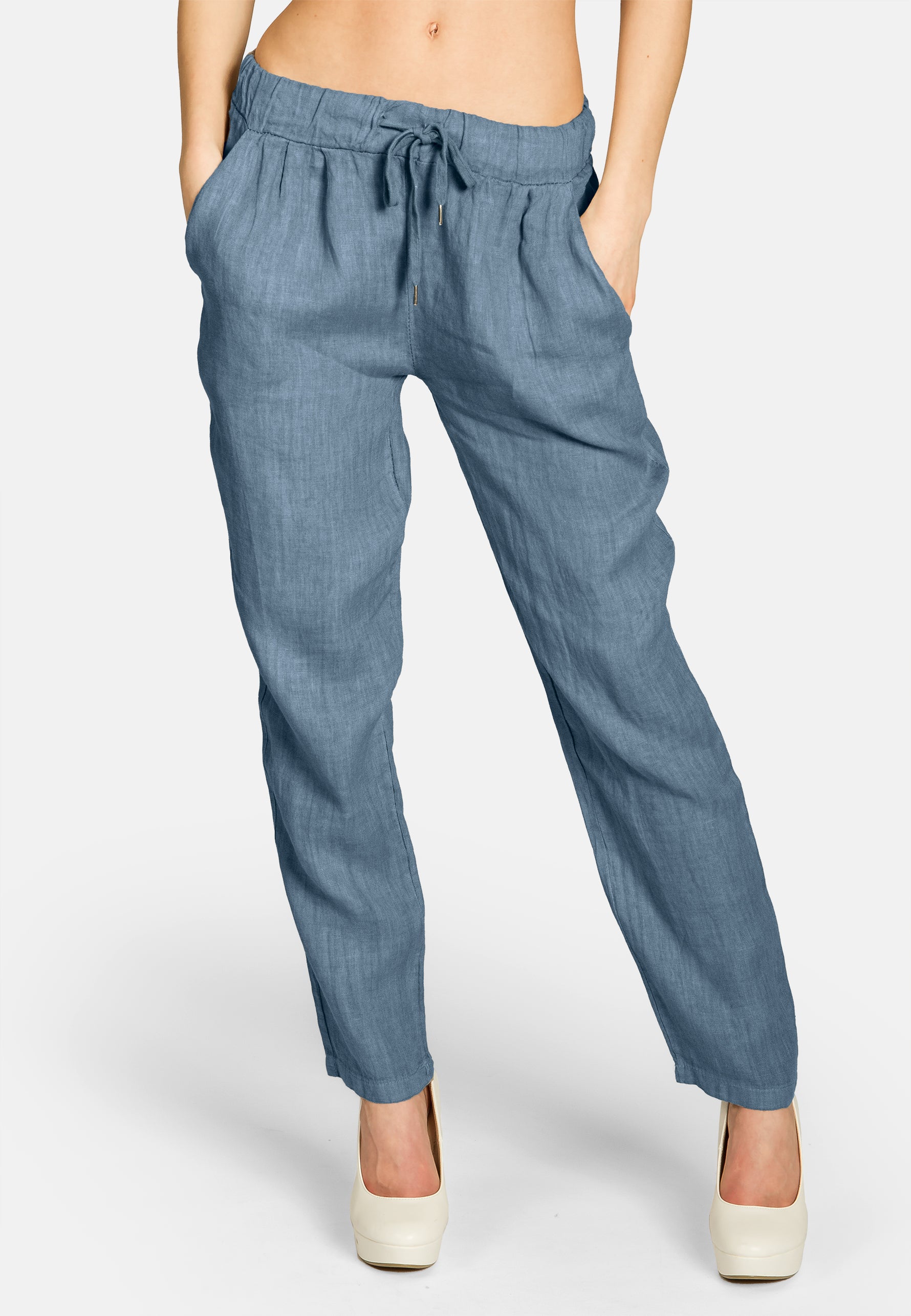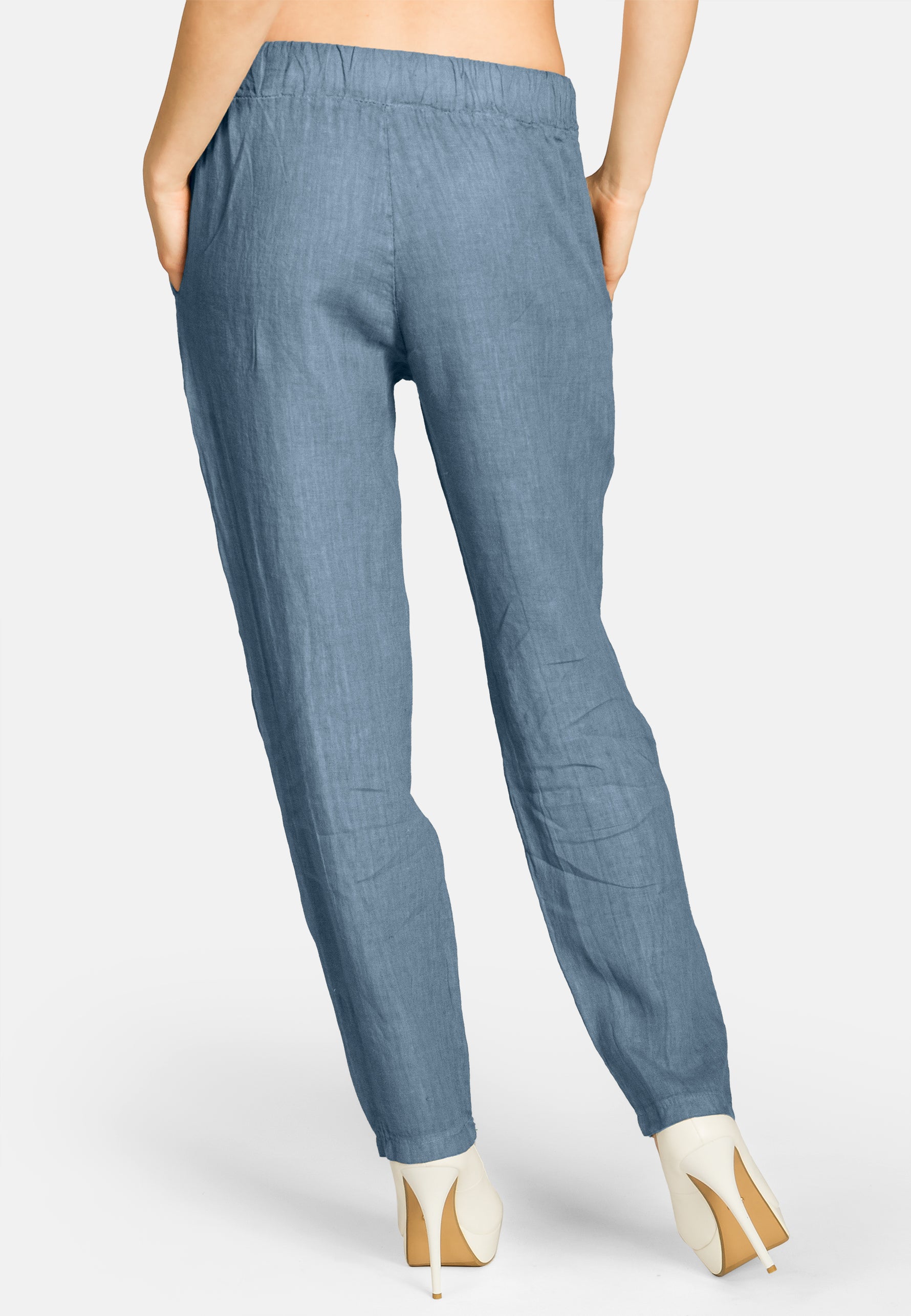Die lässige Passform und die dezenten Joggpants-Details machen die herrlich leichte Loose Fit Hose aus Leinen perfekt für den neuen Leisure-Look! Die schrägen Eingrifftaschen unterstreichen den trendigen Joggstyle-Kick. Der breite Gummibund in der Taille mit zusätzlichem Bindeband sorgt zusammen mit dem trageangenehmen Naturmaterial für einen besonders angenehmen Tragekomfort. Die große Unifarbauswahl machen die lässig-bequeme Hose fit für smarte Styles und elegante Kombinationen. Eine perfekte Hose für den sommerlichen Alltag! Material: 100% Leinen, waschbar bei 30°C. Caspar Fashion - Made in Italy.