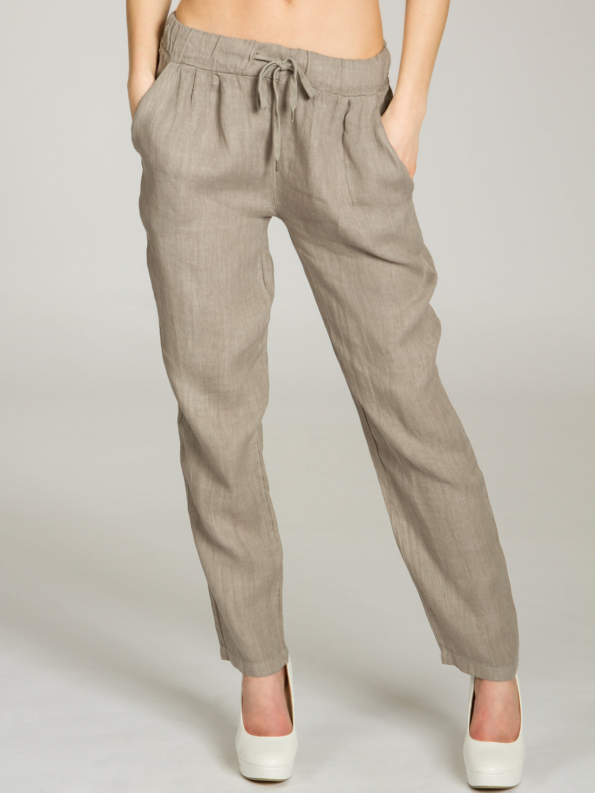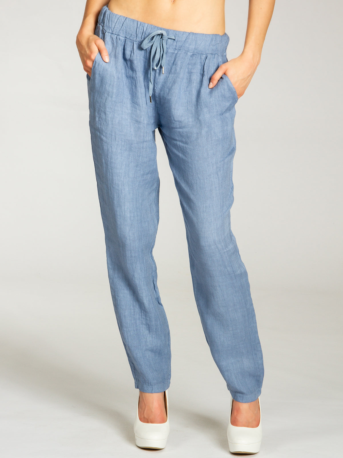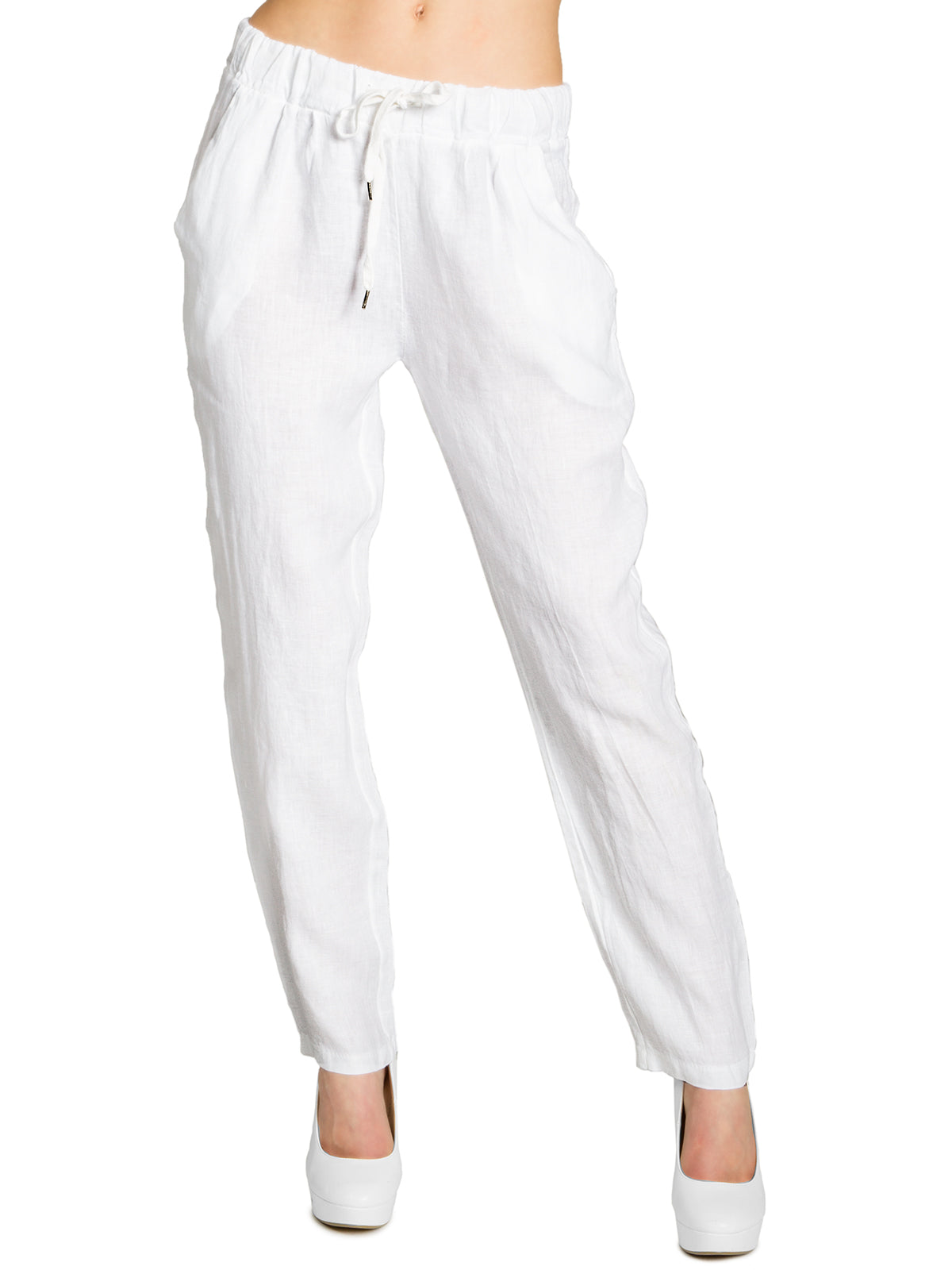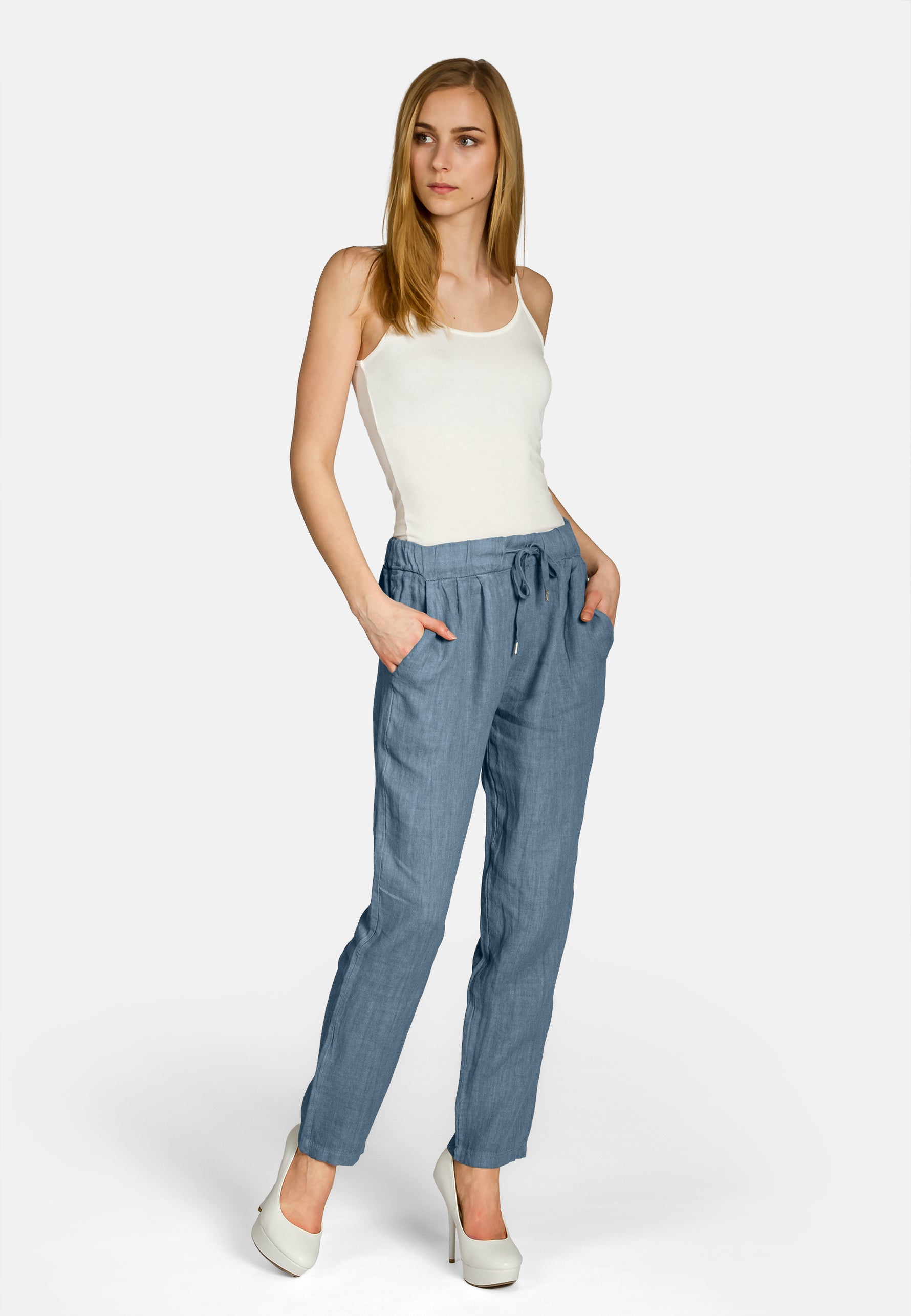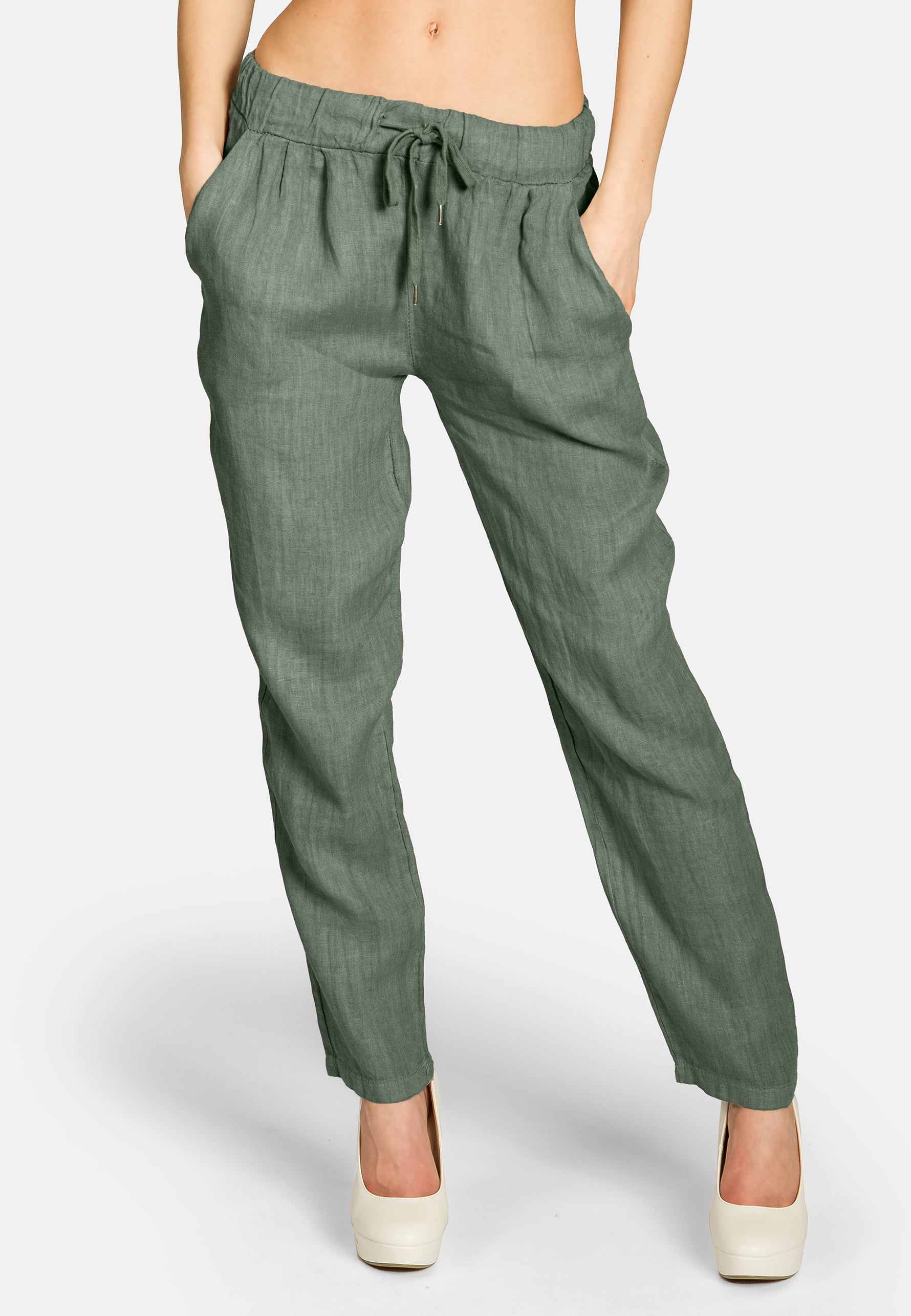 Die lässige Passform und die dezenten Joggpants-Details machen die herrlich leichte Loose Fit Hose aus Leinen perfekt für den neuen Leisure-Look! Die schrägen Eingrifftaschen unterstreichen den trendigen Joggstyle-Kick. Der breite Gummibund in der Taille mit zusätzlichem Bindeband sorgt zusammen mit dem trageangenehmen Naturmaterial für einen besonders angenehmen Tragekomfort. Die große Unifarbauswahl machen die lässig-bequeme Hose fit für smarte Styles und elegante Kombinationen. Eine perfekte Hose für den sommerlichen Alltag! Material: 100% Leinen, waschbar bei 30°C. Caspar Fashion - Made in Italy.
