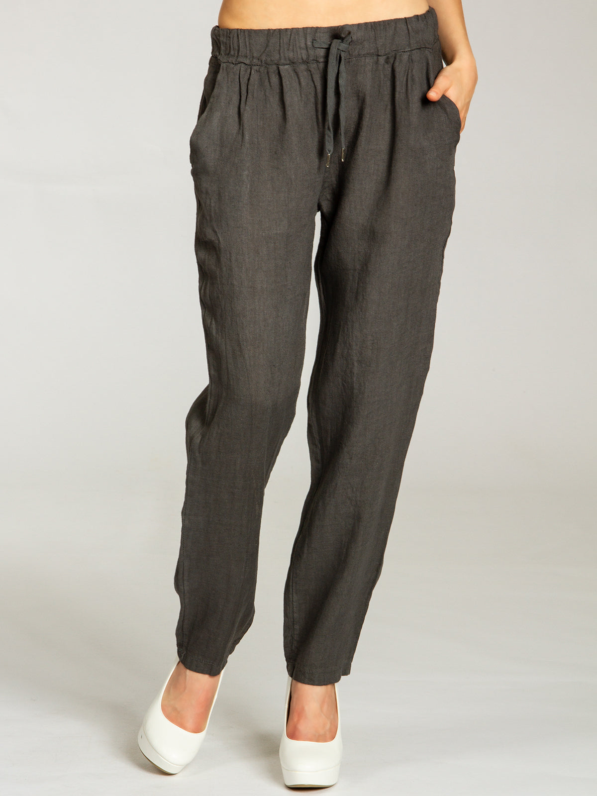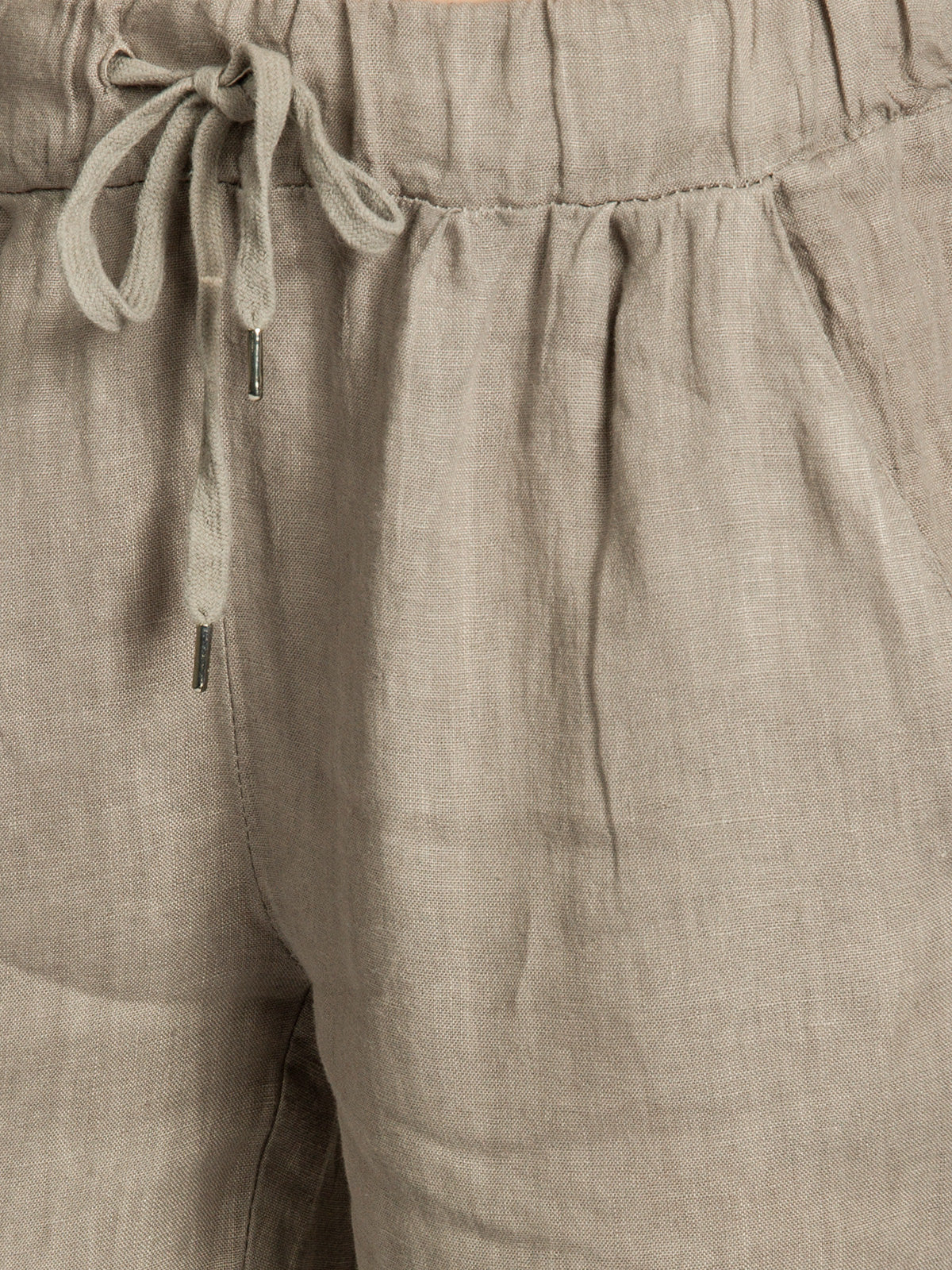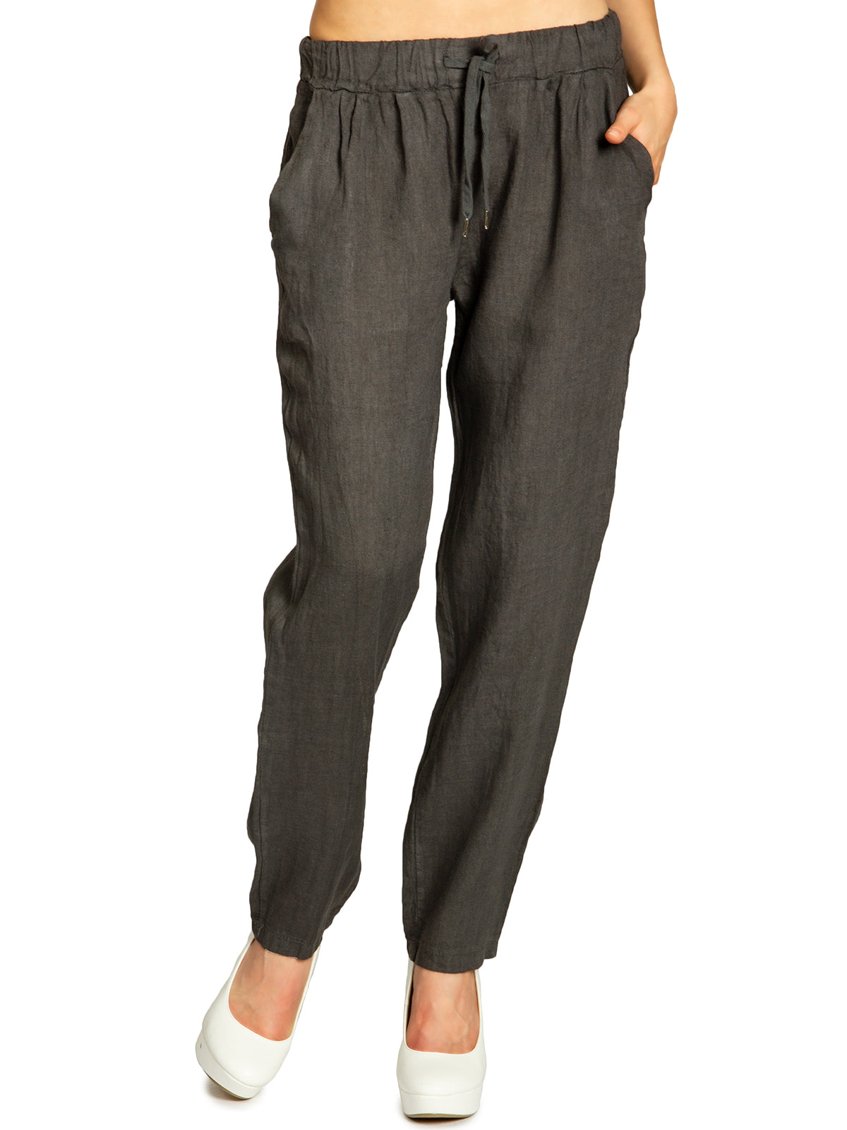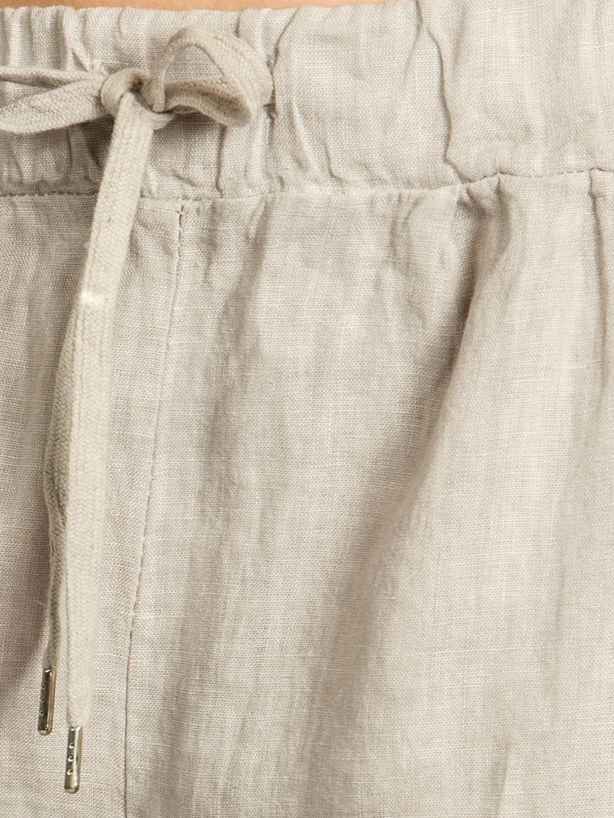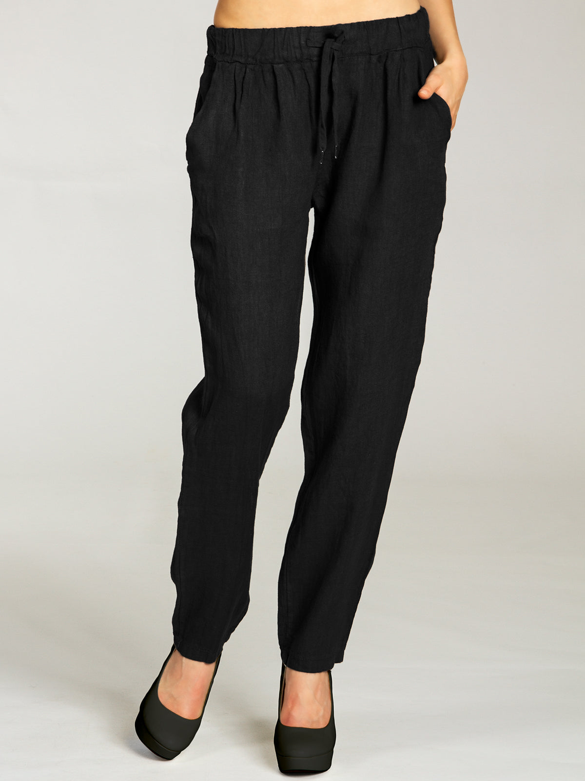 Die lässige Passform und die dezenten Joggpants-Details machen die herrlich leichte Loose Fit Hose aus Leinen perfekt für den neuen Leisure-Look! Die schrägen Eingrifftaschen unterstreichen den trendigen Joggstyle-Kick. Der breite Gummibund in der Taille mit zusätzlichem Bindeband sorgt zusammen mit dem trageangenehmen Naturmaterial für einen besonders angenehmen Tragekomfort. Die große Unifarbauswahl machen die lässig-bequeme Hose fit für smarte Styles und elegante Kombinationen. Eine perfekte Hose für den sommerlichen Alltag! Material: 100% Leinen, waschbar bei 30°C. Caspar Fashion - Made in Italy.