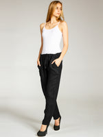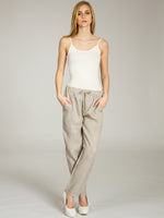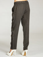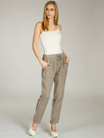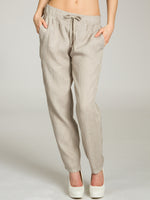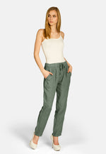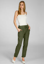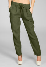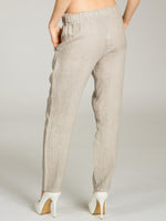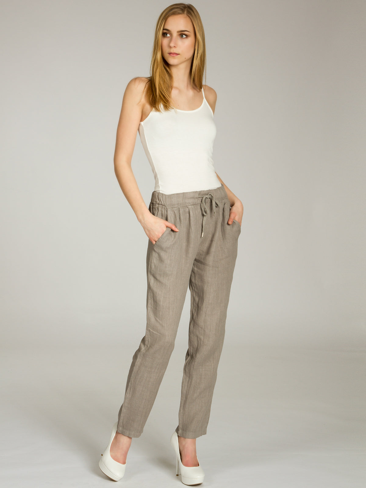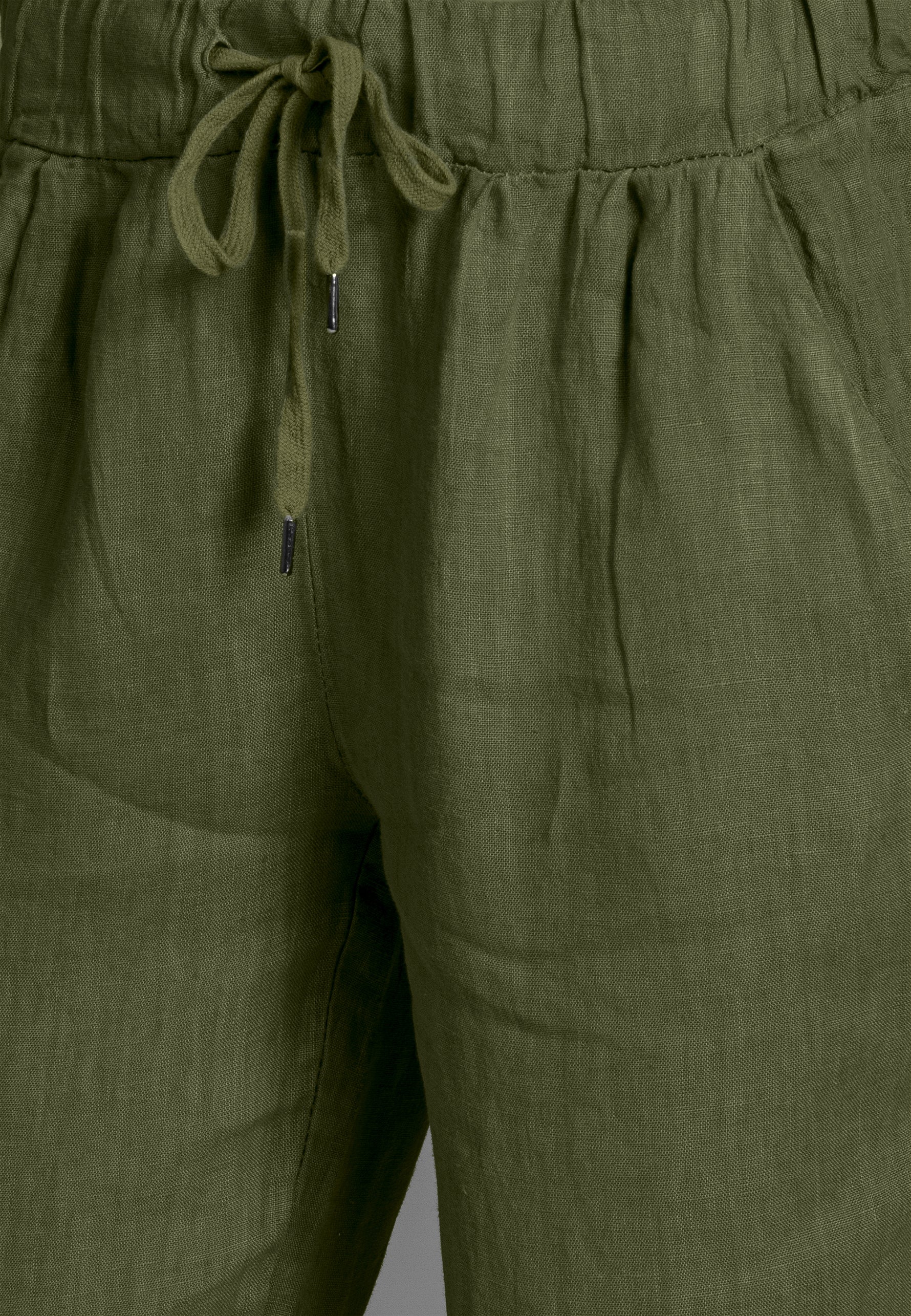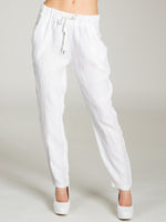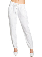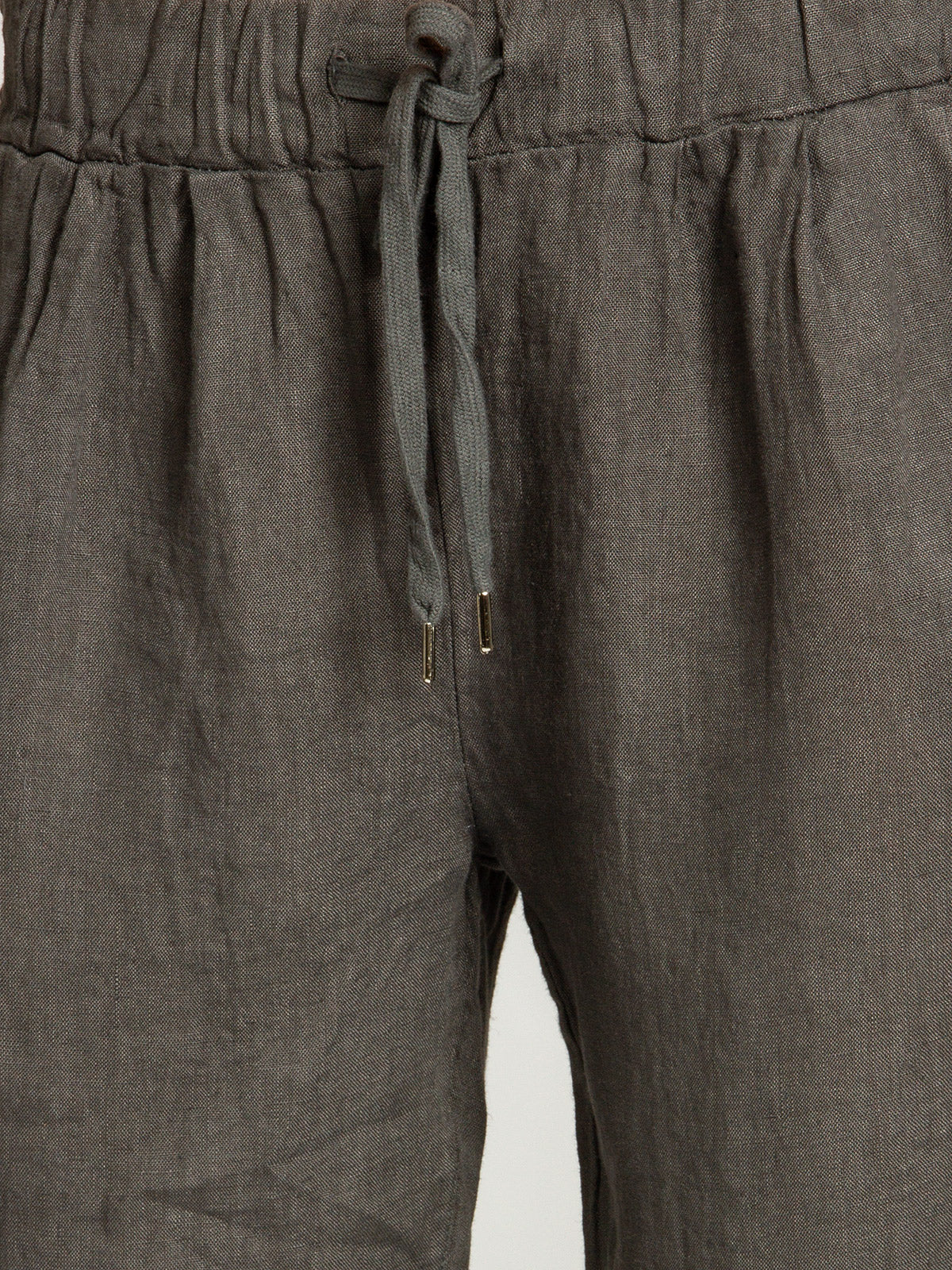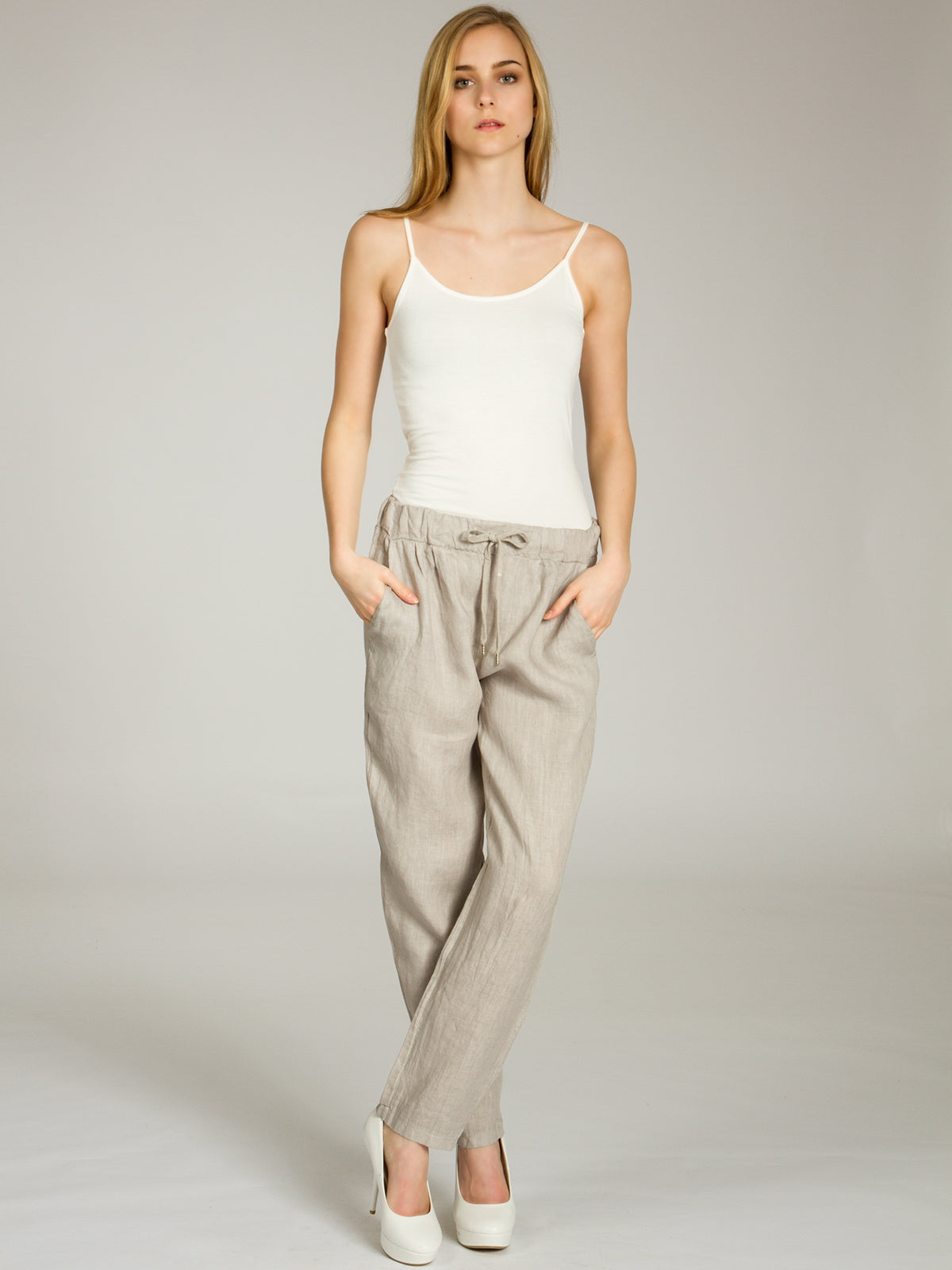Die lässige Passform und die dezenten Joggpants-Details machen die herrlich leichte Loose Fit Hose aus Leinen perfekt für den neuen Leisure-Look! Die schrägen Eingrifftaschen unterstreichen den trendigen Joggstyle-Kick. Der breite Gummibund in der Taille mit zusätzlichem Bindeband sorgt zusammen mit dem trageangenehmen Naturmaterial für einen besonders angenehmen Tragekomfort. Die große Unifarbauswahl machen die lässig-bequeme Hose fit für smarte Styles und elegante Kombinationen. Eine perfekte Hose für den sommerlichen Alltag! Material: 100% Leinen, waschbar bei 30°C. Caspar Fashion - Made in Italy.