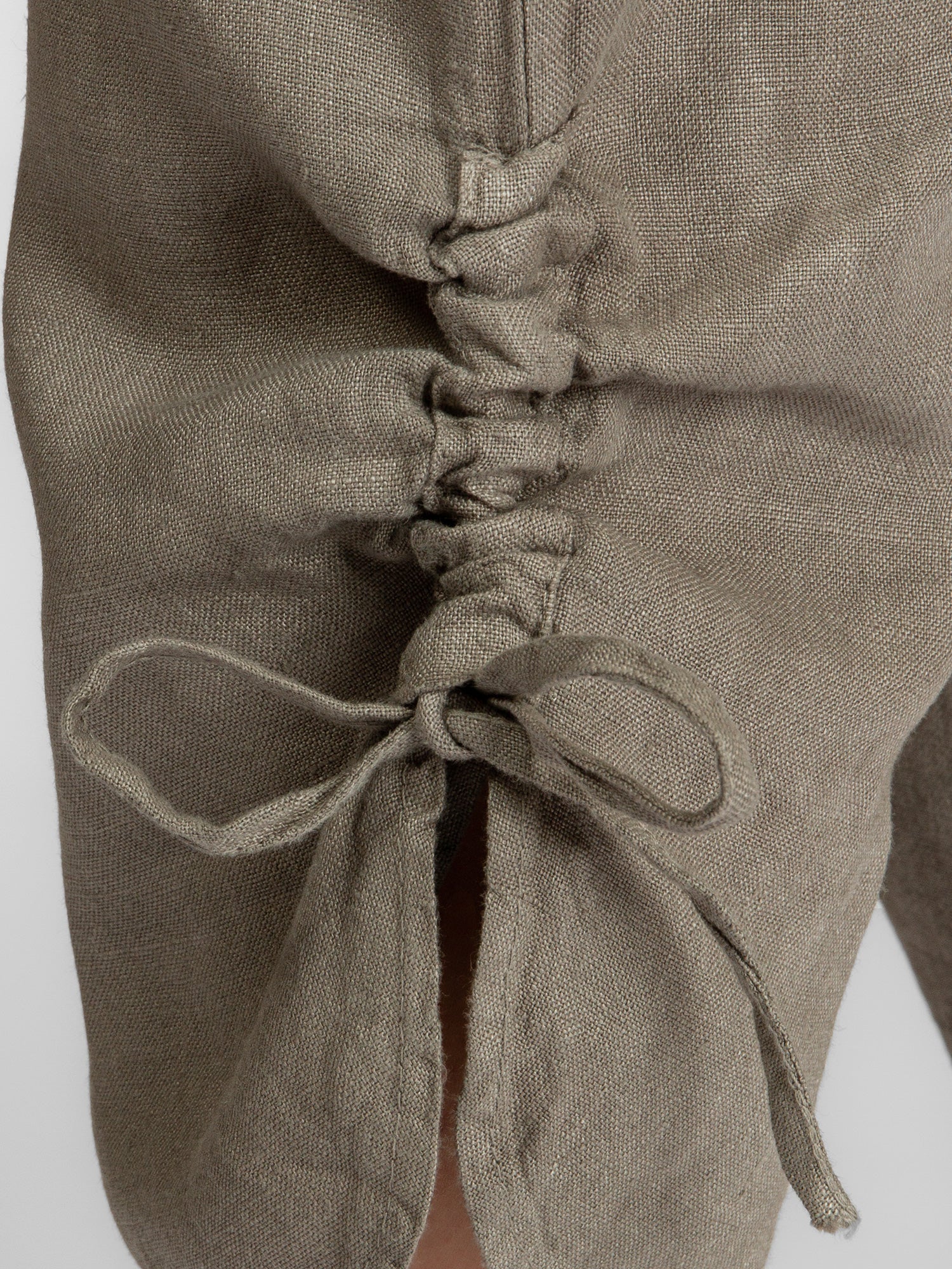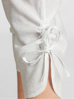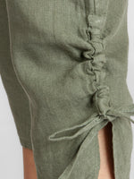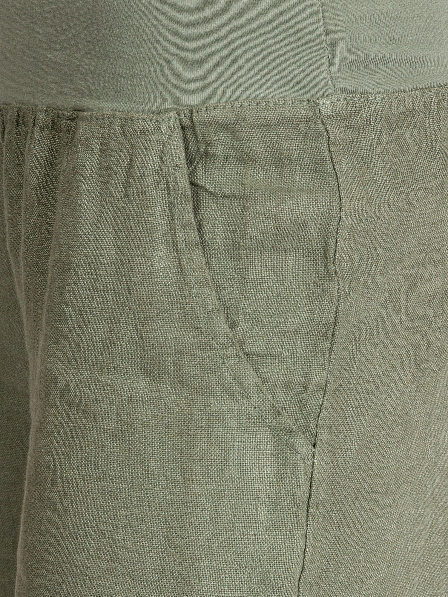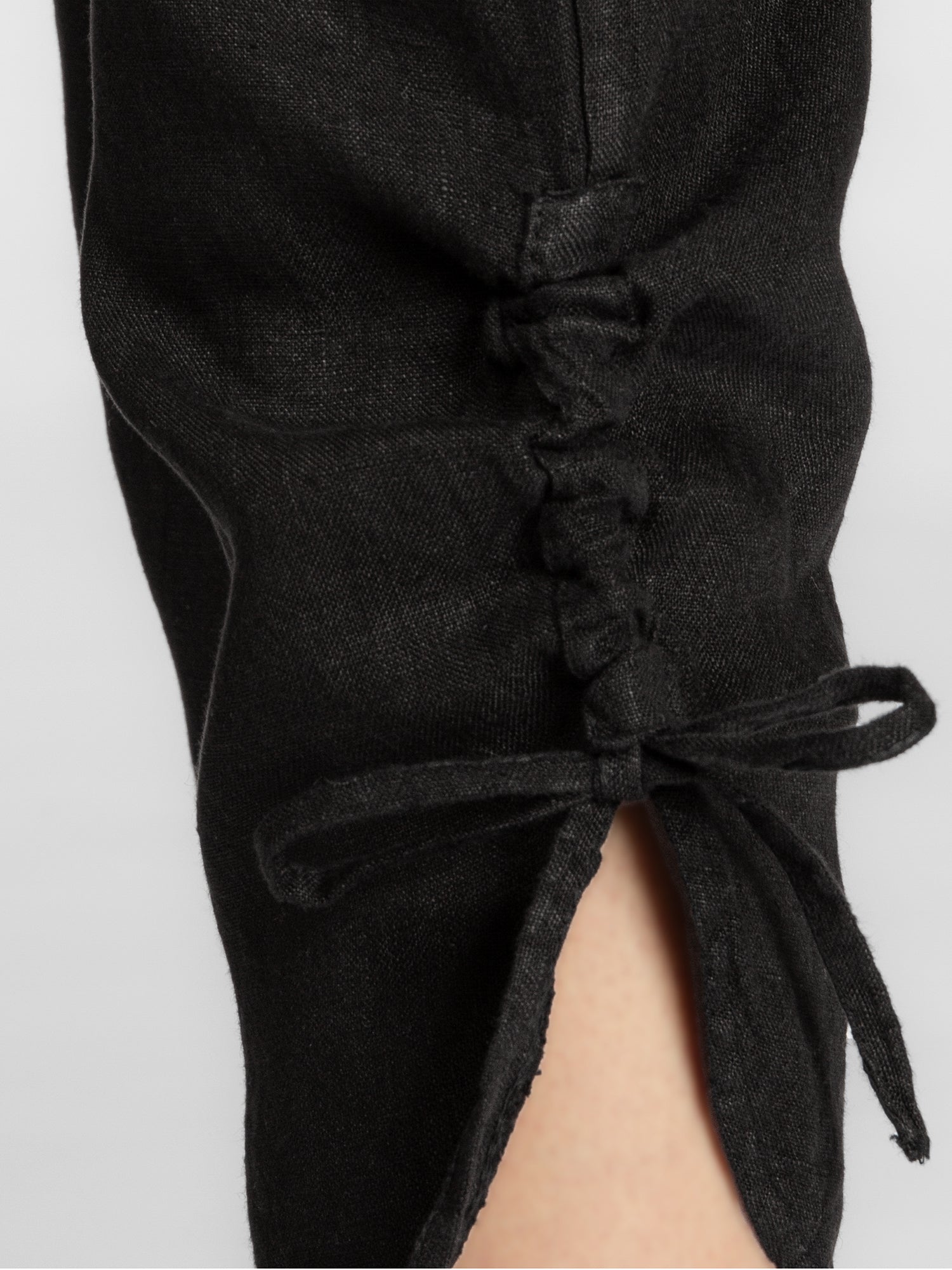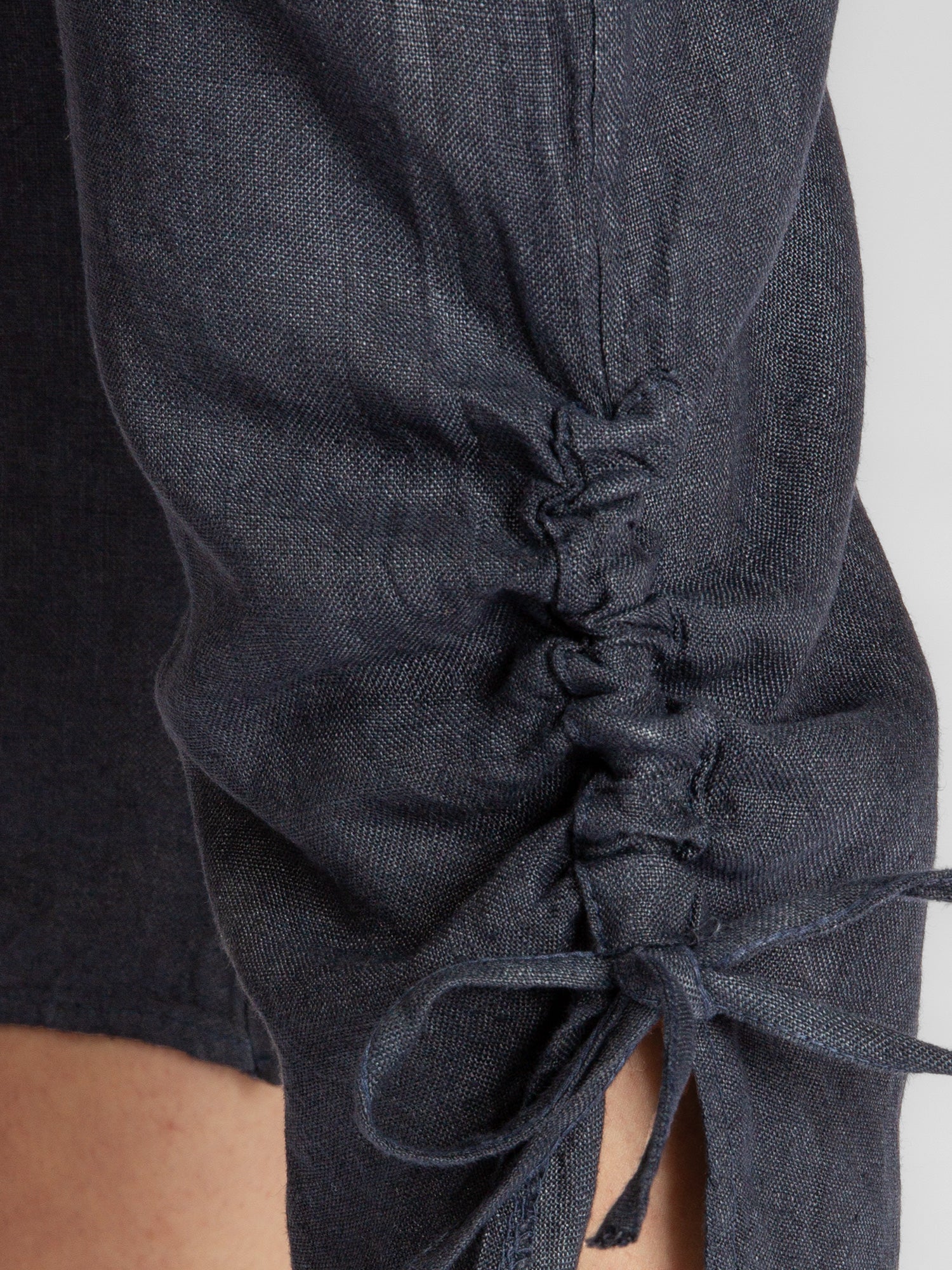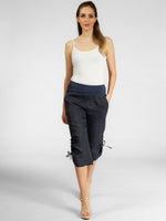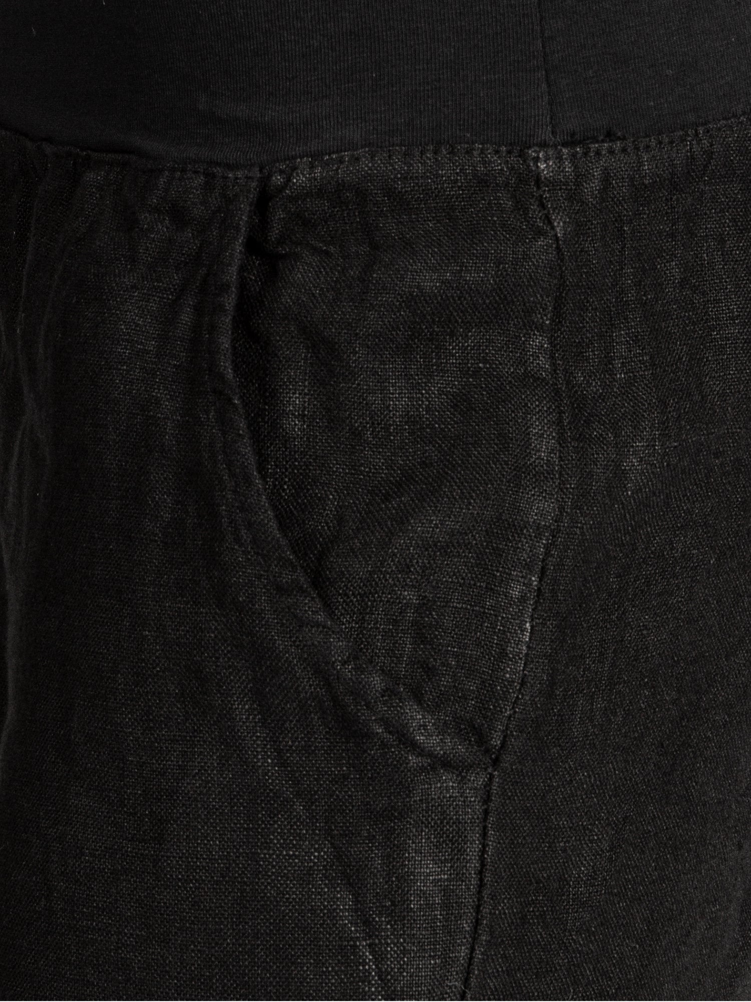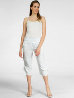Sportlich elegante Casual 3/4 Sommerhose mit seitlicher Raffung aus besonders angenehmen Leinenstoff! Mit dieser stylischen Boyfriend Caprihose besitzt man einen individuellen Style und setzt klare Akzente denn man ist dank dieser komfortablen kurzen Sommerhose immer top aktuell und modisch gekleidet. Egal ob mit klassischen Pumps und Bluse ins Büro oder mit lässigem Shirt und Sneaker am Wochenende! Zu dieser Hose passt einfach alles. Viel Platz hast du in den Seitentaschen. Das Material besteht zu 100 % aus Leinen und sorgt für ein super angenehmes, leichtes Tragegefühl. Material: 100% Leinen. Problemlos waschbar bei 30°C. Caspar Fashion - Made in Italy.