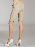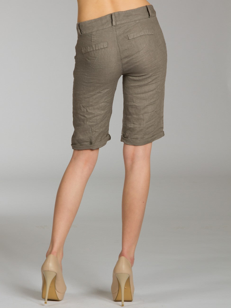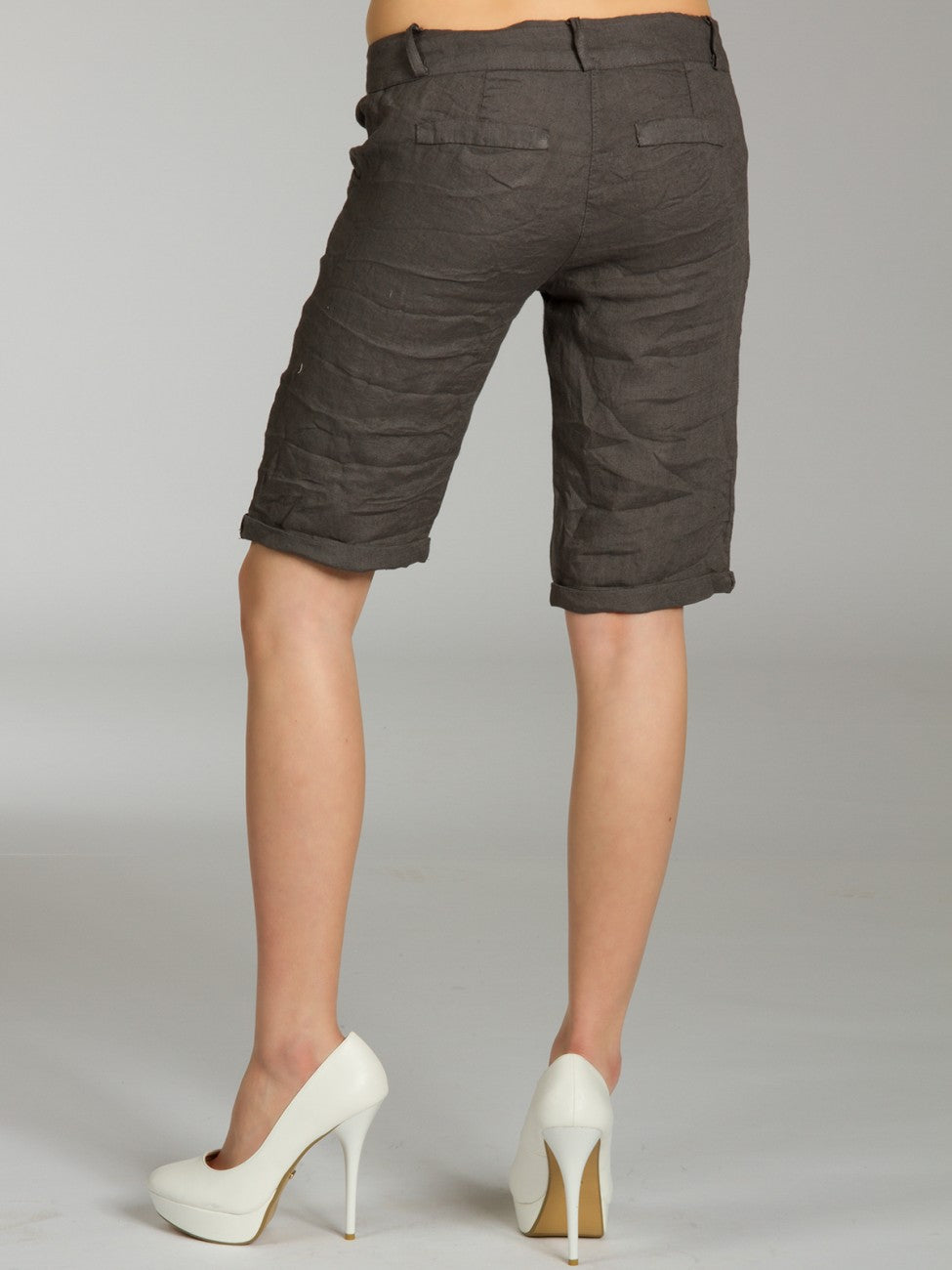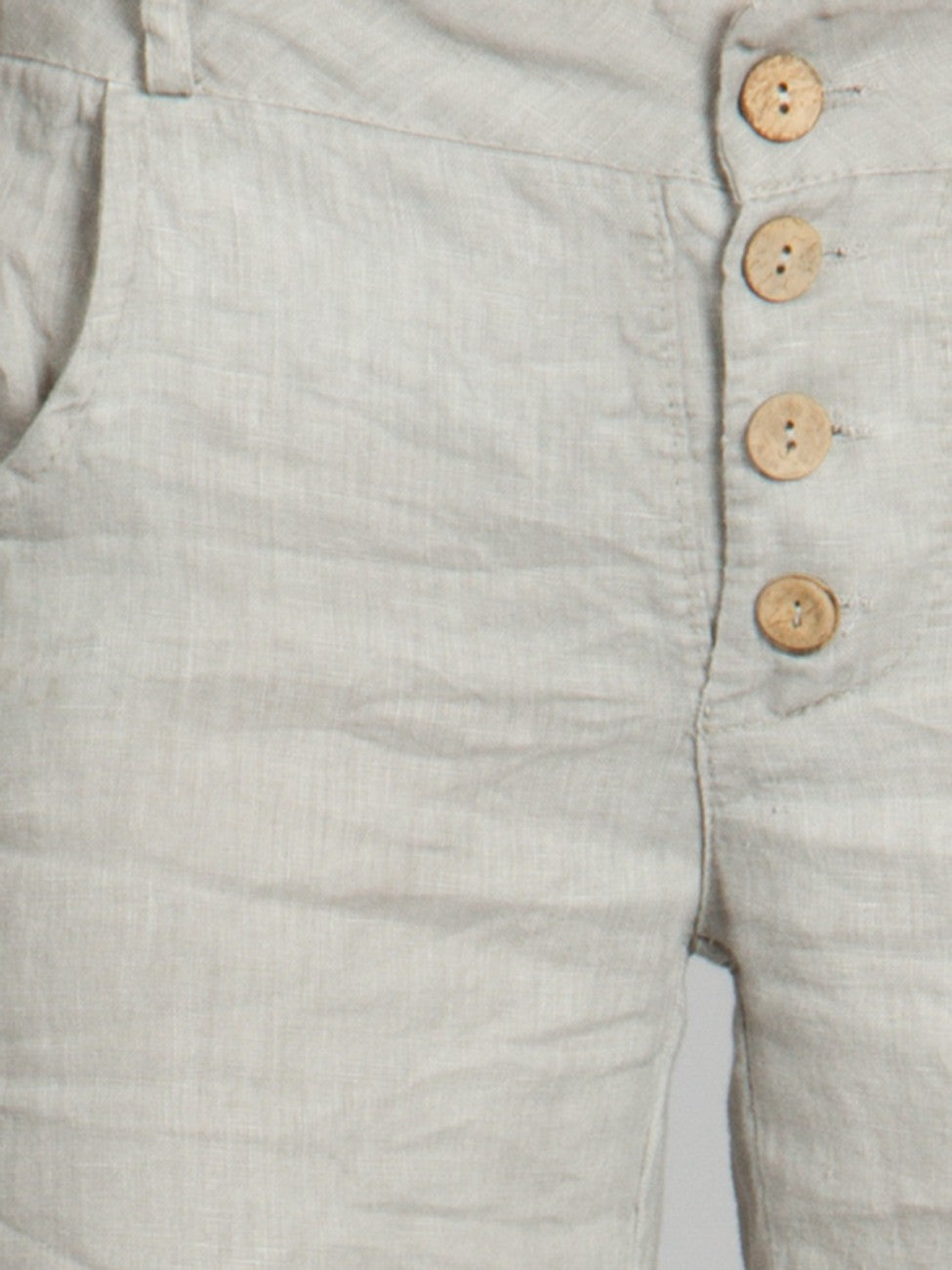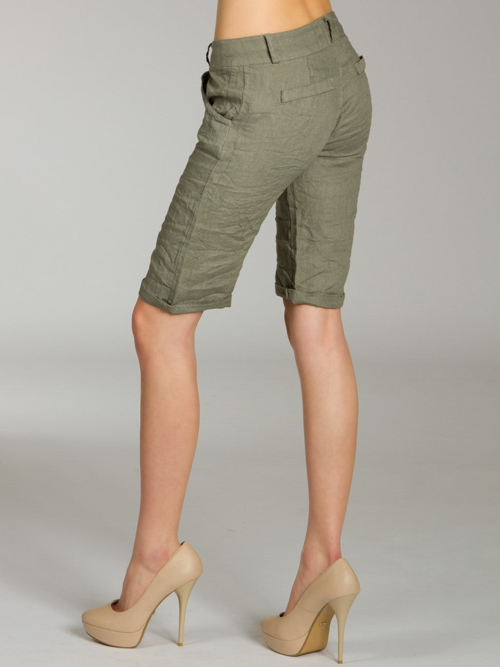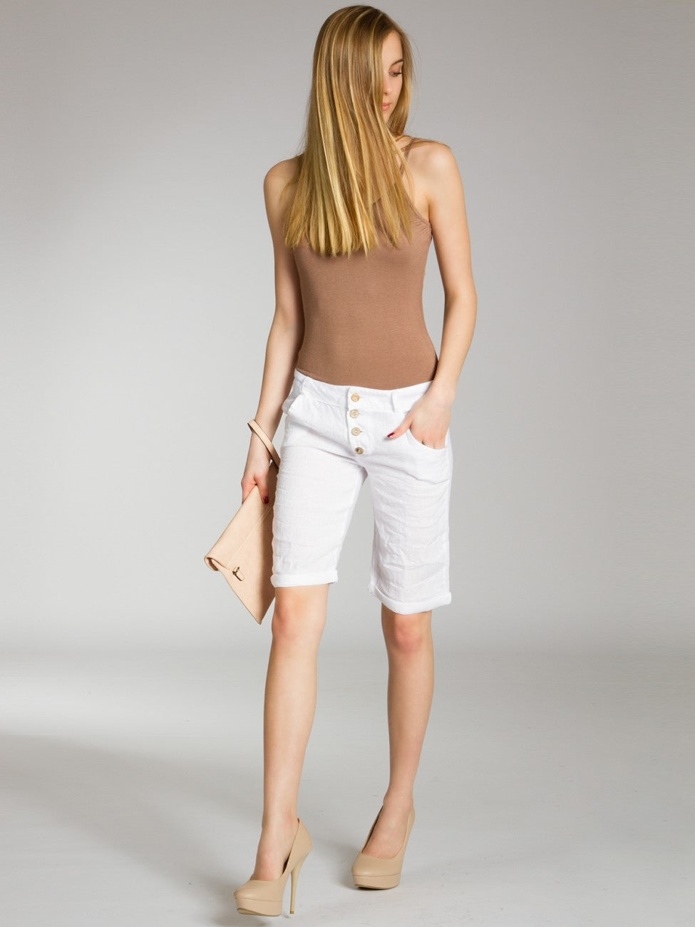 Sportlich elegante Casual Shorts aus besonders leichtem Leinenstoff ! Die Hose ist dank ihrem klassisch eleganten Schnitt vielseitig kombinierbar. Egal ob mit Pumps und Bluse oder mit buntem Shirt und Ballerinas die Hose passt sich ihrem Stil an. Sie besitzt eine Knopfleiste mit vier naturfarbenen Kokosknöpfen. Der lässige 4 Pocket Style der Hose sorgt für die sportliche Note wobei die hinteren Taschen nur angedeutet sind. Das Material trägt nicht auf und bietet ein sehr angenehmes, leichtes Tragegefühl. HINWEIS: Im Lieferzustand sind die Beine nicht umgekrempelt können aber leicht selbst zweifach umgekrempelt und umgebügelt werden. Material: 100% Leinen. Problemlos waschbar bei 30°C. CASPAR Fashion Collection - Made in Italy.