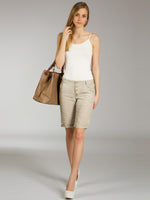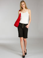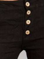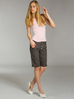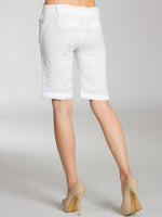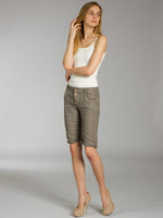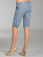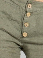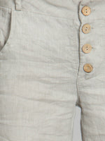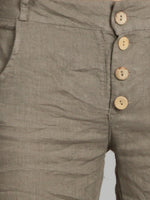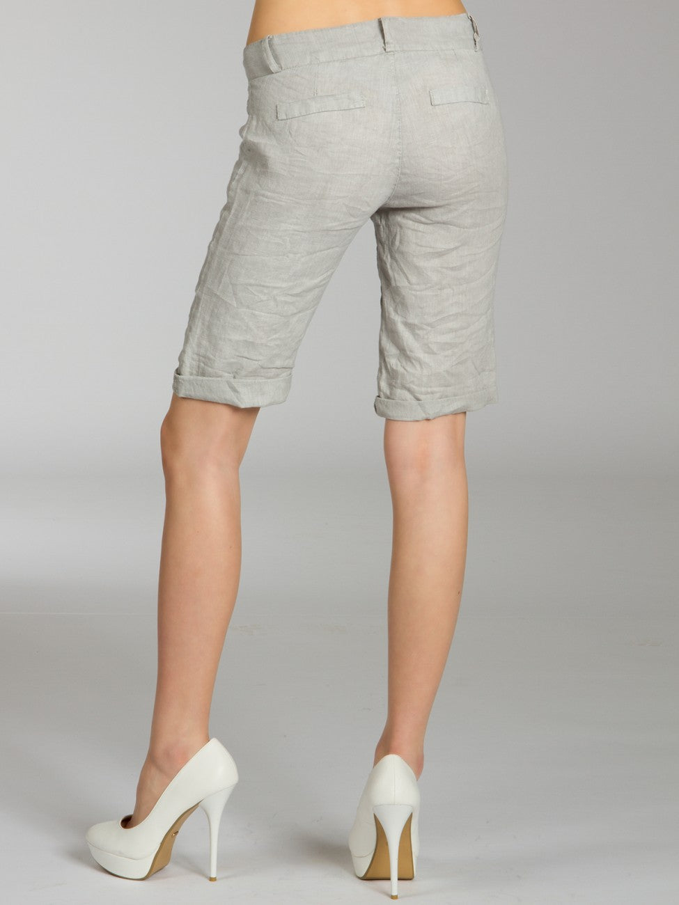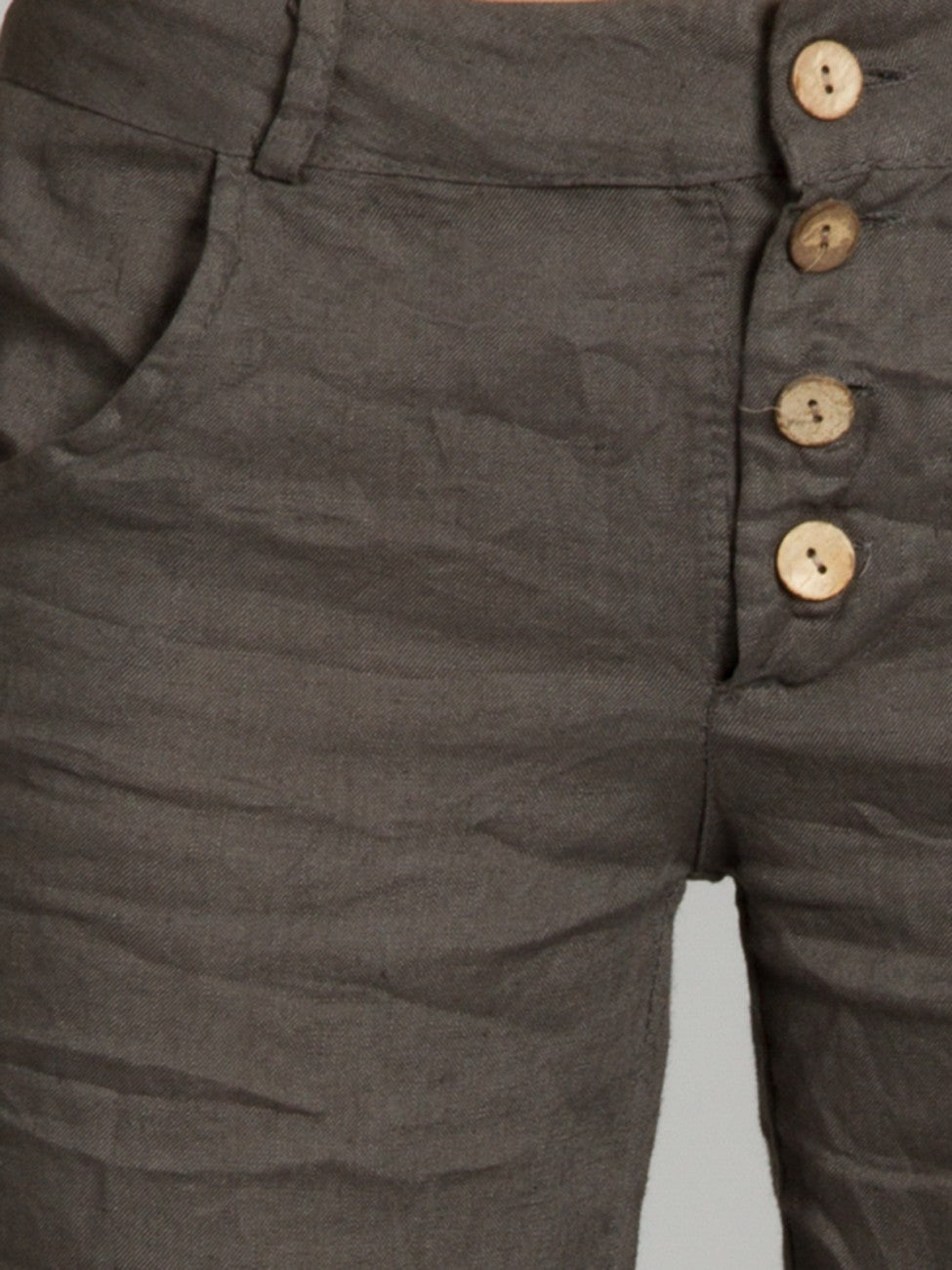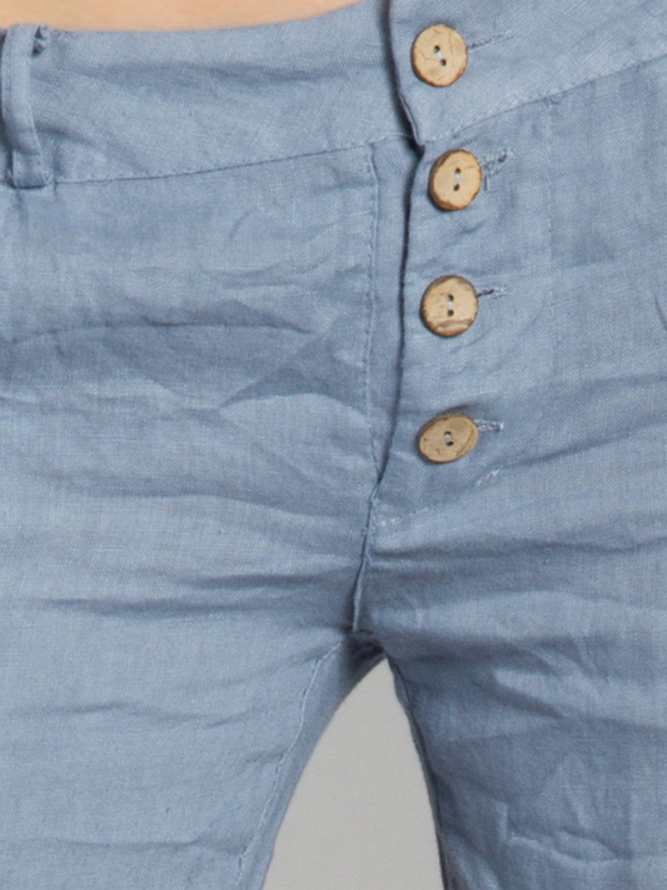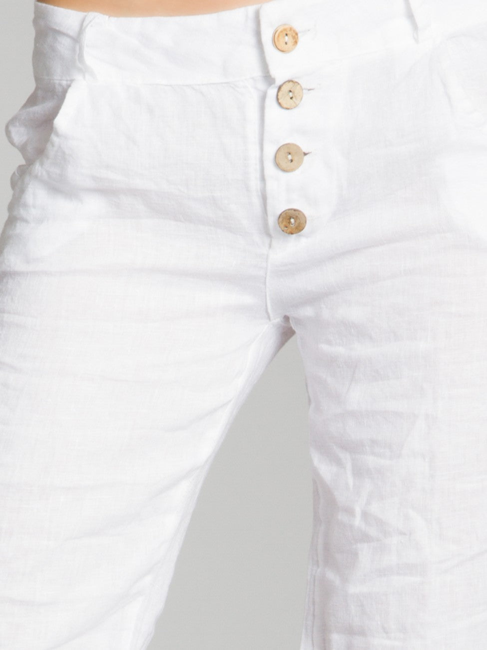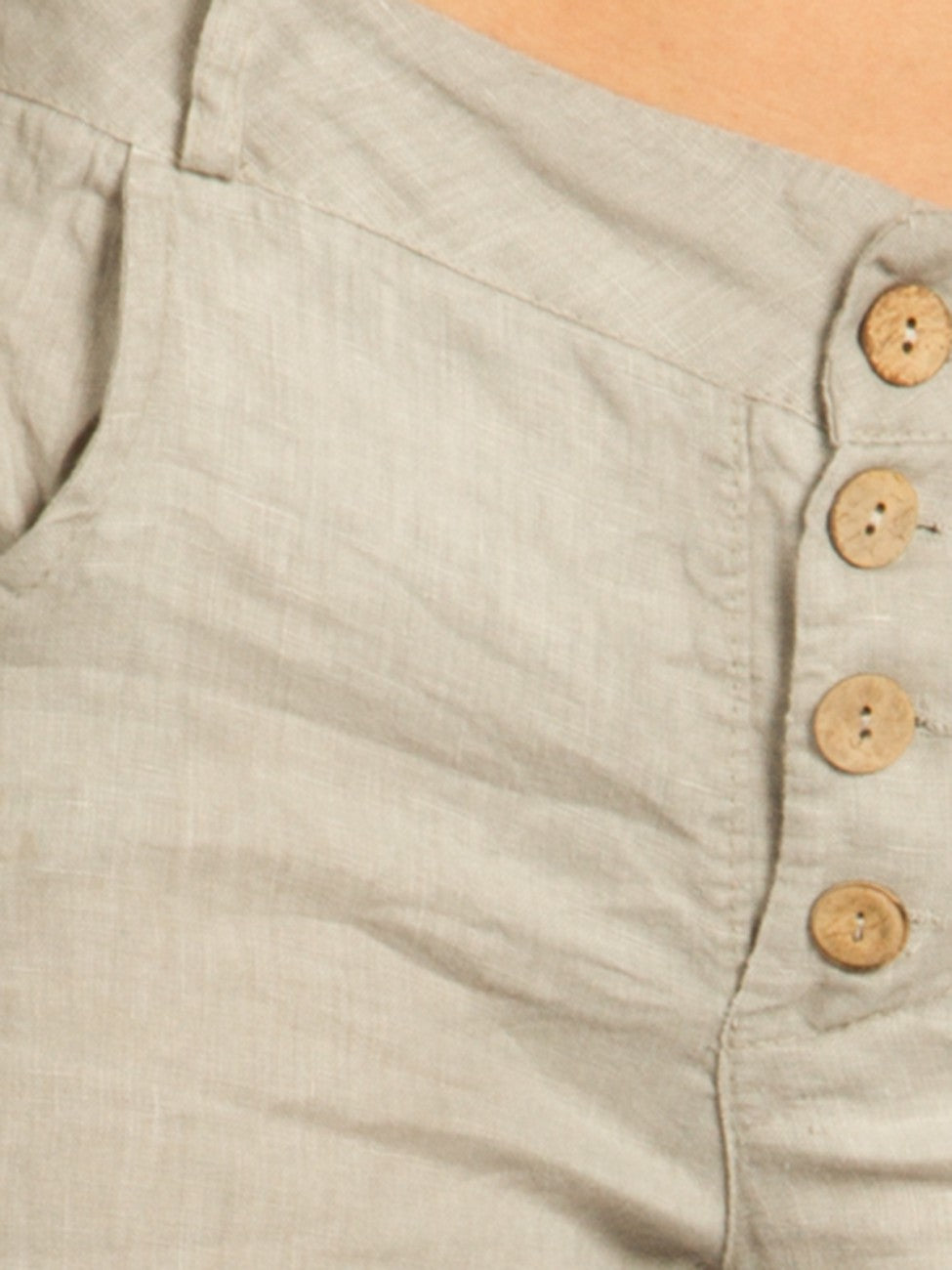 Sportlich elegante Casual Shorts aus besonders leichtem Leinenstoff ! Die Hose ist dank ihrem klassisch eleganten Schnitt vielseitig kombinierbar. Egal ob mit Pumps und Bluse oder mit buntem Shirt und Ballerinas die Hose passt sich ihrem Stil an. Sie besitzt eine Knopfleiste mit vier naturfarbenen Kokosknöpfen. Der lässige 4 Pocket Style der Hose sorgt für die sportliche Note wobei die hinteren Taschen nur angedeutet sind. Das Material trägt nicht auf und bietet ein sehr angenehmes, leichtes Tragegefühl. HINWEIS: Im Lieferzustand sind die Beine nicht umgekrempelt können aber leicht selbst zweifach umgekrempelt und umgebügelt werden. Material: 100% Leinen. Problemlos waschbar bei 30°C. CASPAR Fashion Collection - Made in Italy.