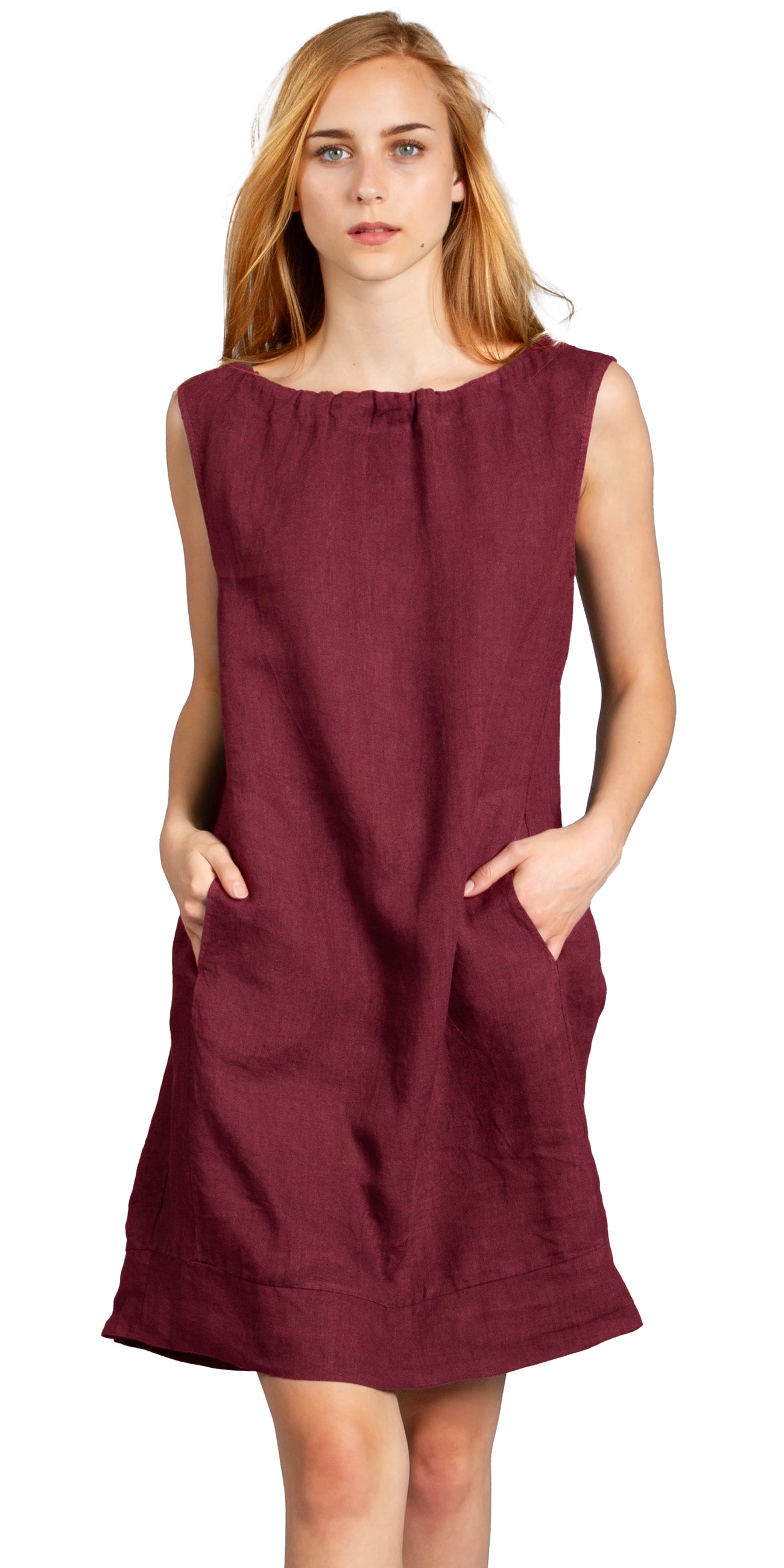 Lässiges, bequemes Damen Sommerkleid aus 100% Leinen. Dieses knielange Kleid ist besonders an heißen Tagen super angenehm zu Tragen. Der bequeme, weite Schnitt kaschiert geschickt kleine Problemzonen und das luftig leichte, natürliche Material bietet einen ausgesprochen hohen Tragekomfort. Der Halsausschnitt ist mit einer dezenten Raffung versehen. Auf der Vorderseite befinden sich in Hüfthöhe 2 kleine Eingriff-Taschen. Beweisen Sie Klasse mit dem schlichten, hochwertige Style dieses wundervollen Sommerkleides. Material: 100% Leinen. Pflegehinweis: Maschinenwäsche bei 30 Grad. Caspar Fashion - Made in Italy.