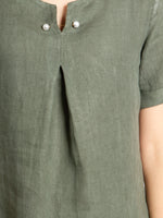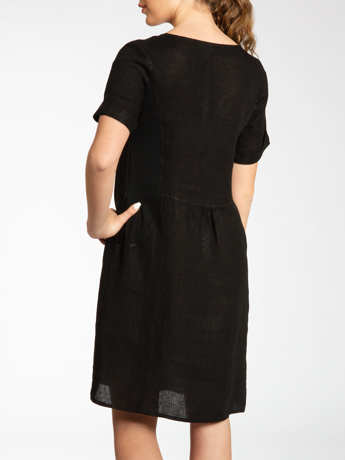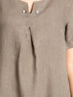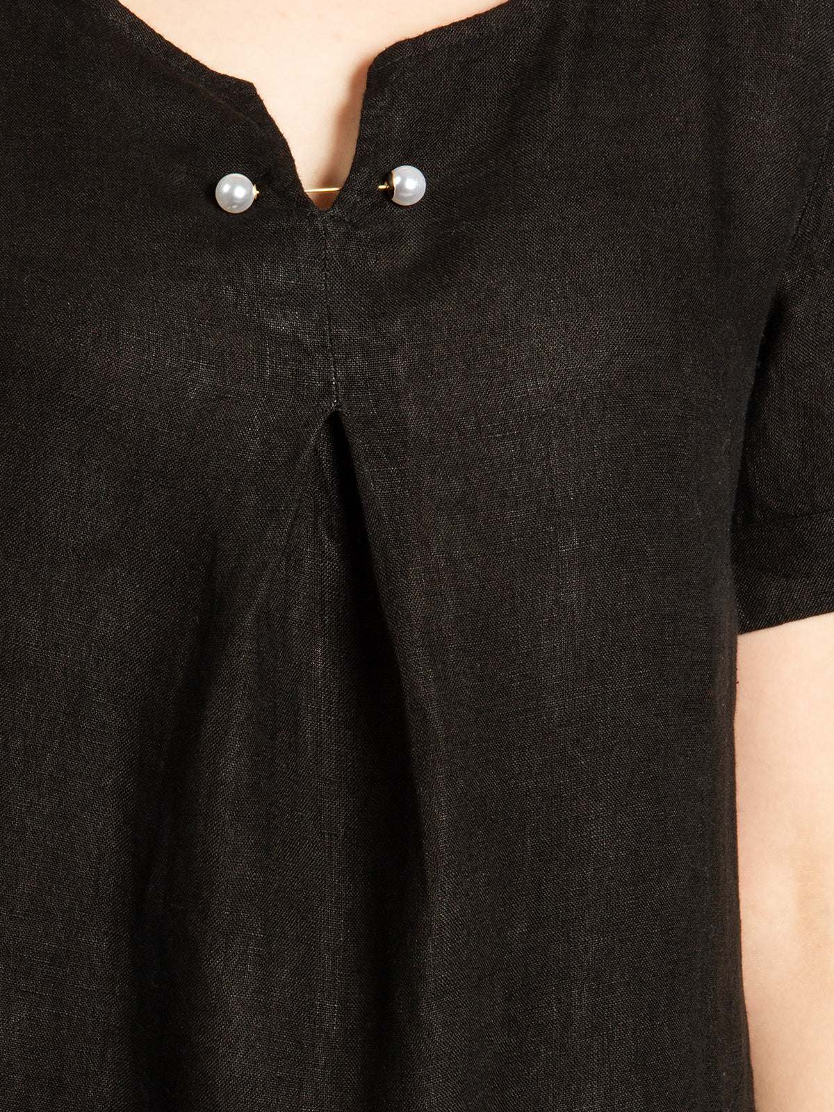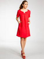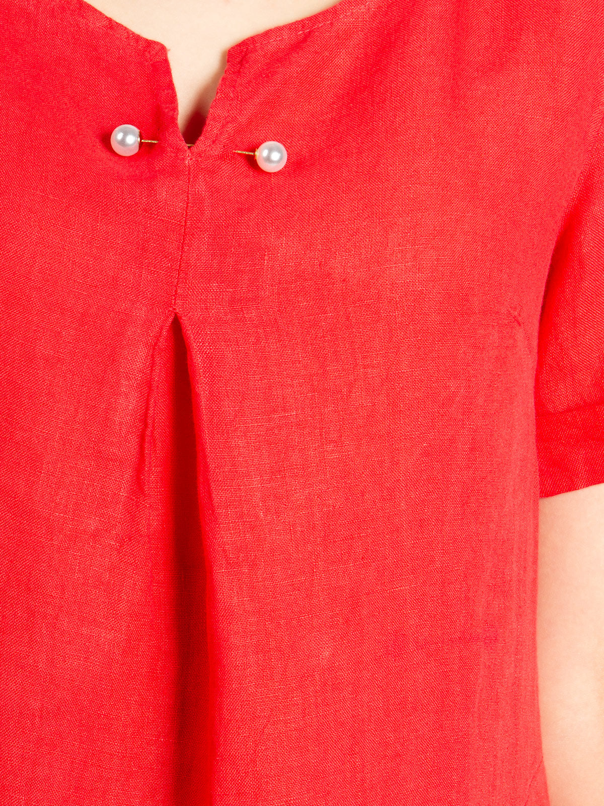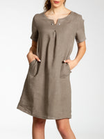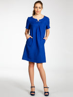 Lässig elegantes, bequemes Damen Sommerkleid aus 100% Leinen mit kurzen Ärmeln. Dieses knielange Kleid ist besonders an heißen Tagen super angenehm zu Tragen. Der bequeme, nur leicht taillierte Schnitt kaschiert geschickt kleine Problemzonen und das luftig leichte, natürliche Material bietet einen ausgesprochen hohen Tragekomfort. Seitlich hinten vom Ärmel bis zur Hüfte verläuft zusätzlich ein schmaler leicht dehnbarer Ripp-Einsatz. Der Halsausschnitt am Dekoltée ist mit einer dezenten Nadel mit Perlendekor (Kunstperlen) versehen. Auf der Vorderseite befinden sich in Hüfthöhe 2 kleine Eingrifftaschen. Beweisen Sie Klasse mit dem schlichten, hochwertige Style dieses wundervoll eleganten Sommerkleides. Material: 100% Leinen. Pflegehinweis: Maschinenwäsche bei 30 Grad. Größenhinweis: Das Kleid ist leicht tailliert geschnitten. Wir empfehlen es daher im Zweifel eine Nummer größer zu bestellen, insbesondere wenn man eine eher lockere Tragweise bevorzugt. Caspar - Made in Italy.