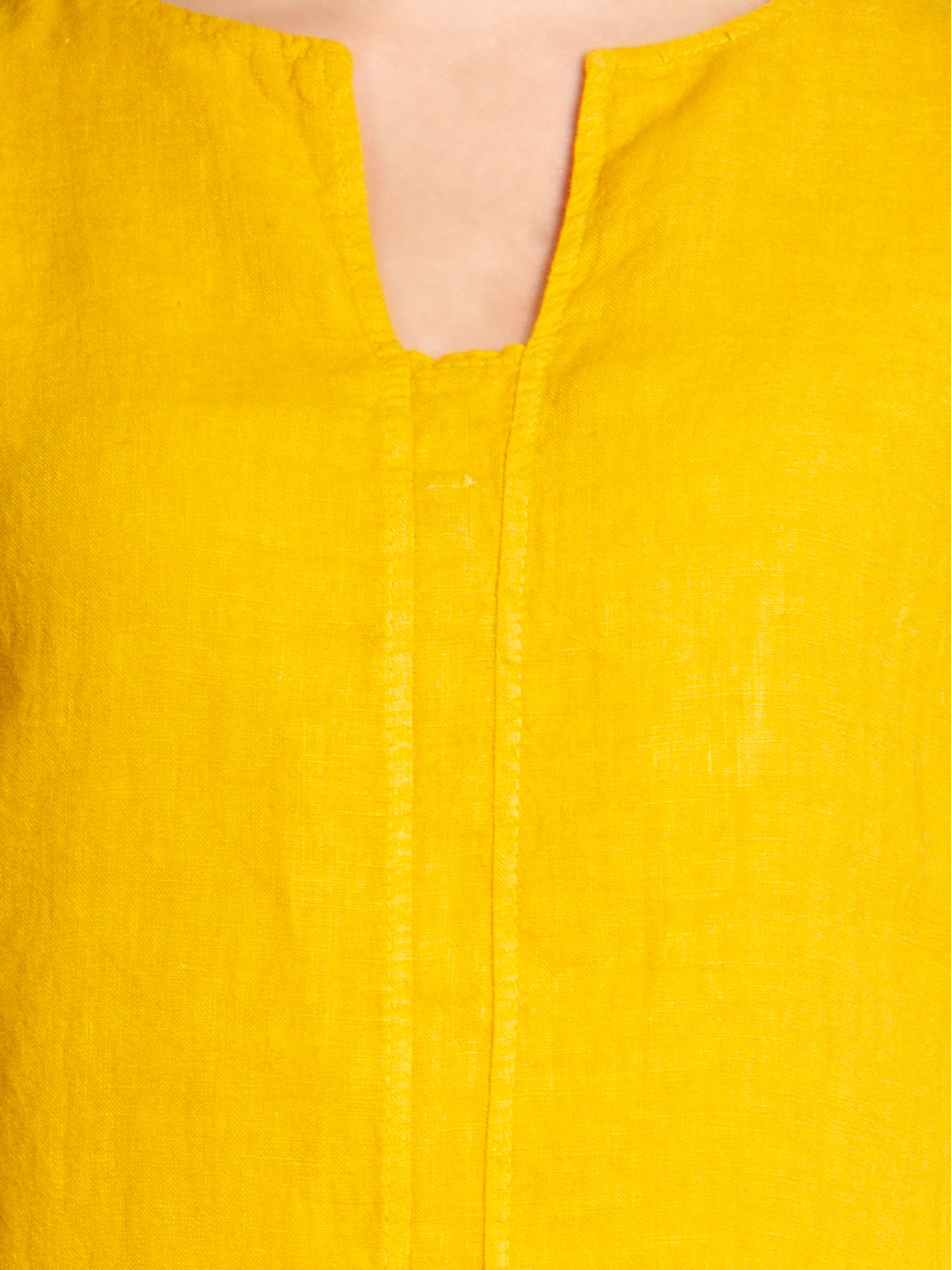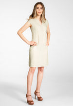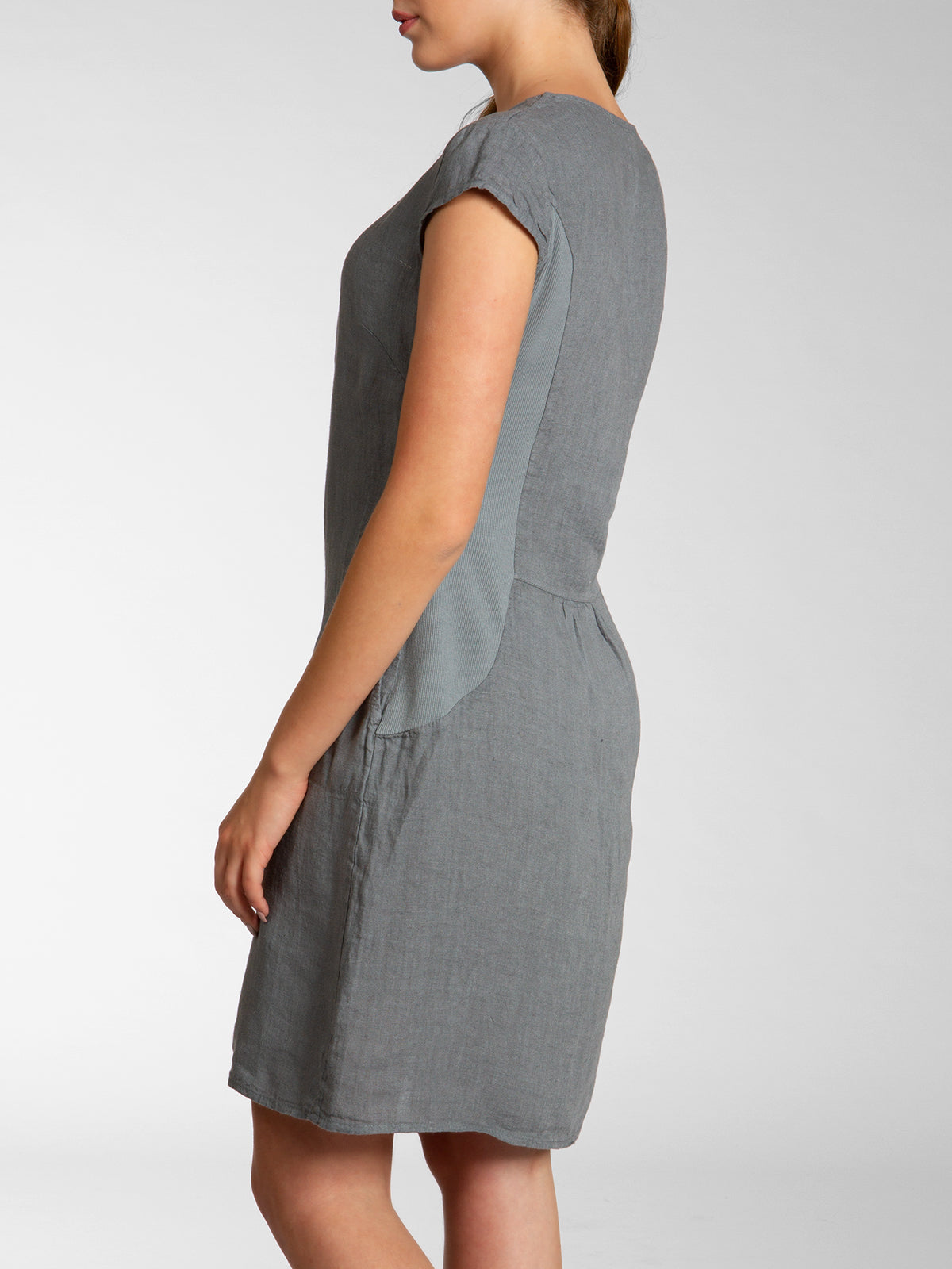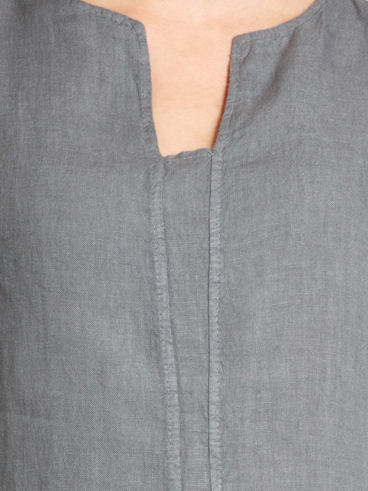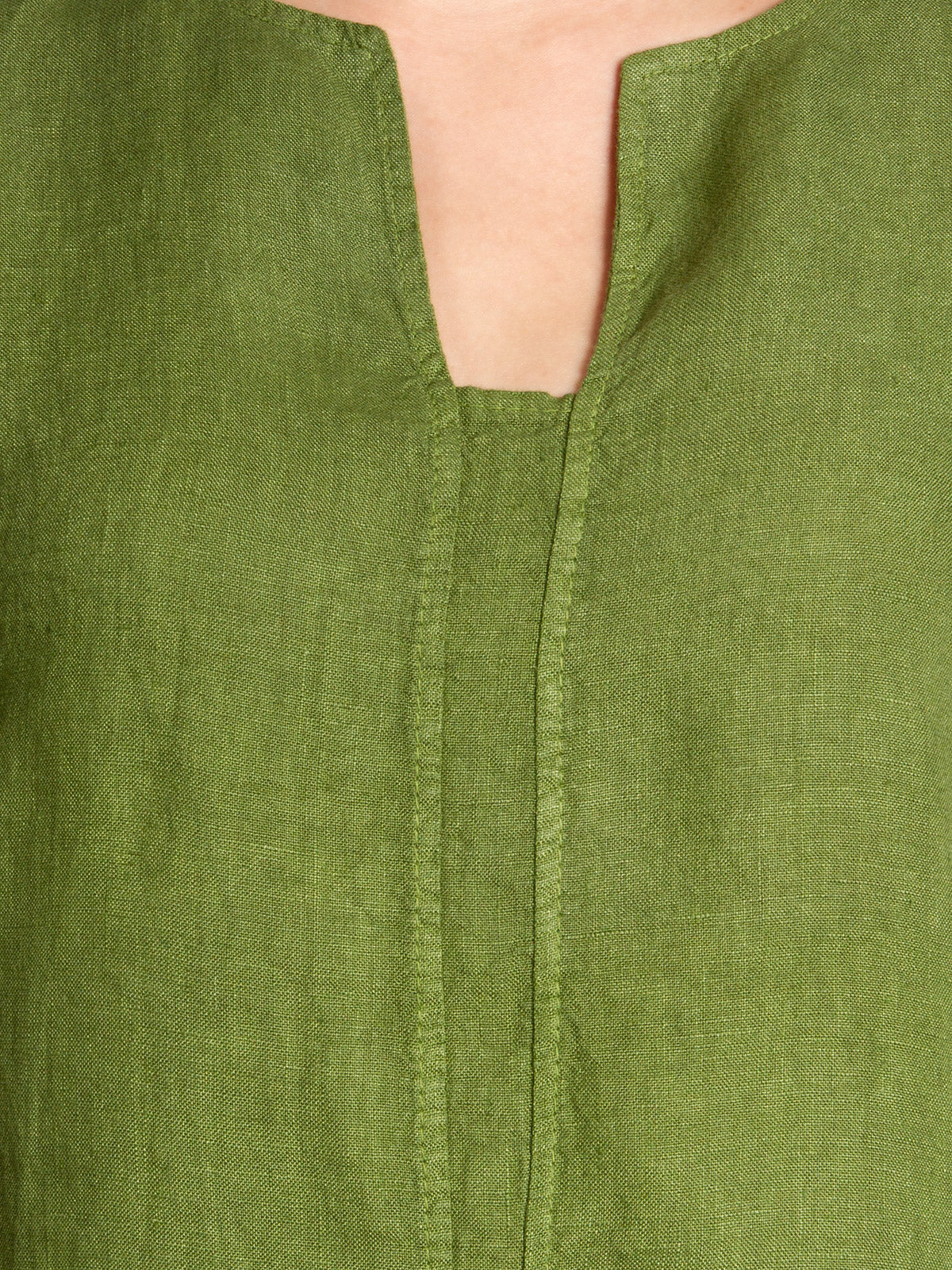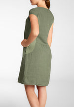 Lässig elegantes, bequemes Damen Sommerkleid aus 100% Leinen mit kurzen Ärmeln. Dieses knielange Kleid ist besonders an heißen Tagen super angenehm zu Tragen. Der bequeme, nur leicht taillierte Schnitt kaschiert geschickt kleine Problemzonen und das luftig leichte, natürliche Material bietet einen ausgesprochen hohen Tragekomfort. Seitlich hinten vom Ärmel bis zur Hüfte verläuft zusätzlich ein schmaler leicht dehnbarer Ripp-Einsatz. Der Halsausschnitt am Dekoltée ist mit einem ausgefallenen, grafischen Schnitt versehen, welcher in Form von 2 vertikalen Ziernähten bis an den unteren Saum des Kleides verläuft. Auf der Vorderseite befinden sich in Hüfthöhe 2 aufgesetzte kleine Eingrifftaschen. Beweisen Sie Stil und Klasse mit dem schlichten, hochwertige Style dieses wundervoll eleganten Sommerkleides. Material: 100% Leinen. Pflegehinweis: Maschinenwäsche bei 30 Grad. CASPAR Fashion GmbH - Made in Italy.