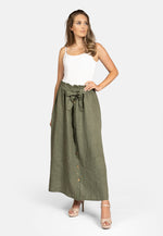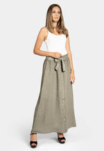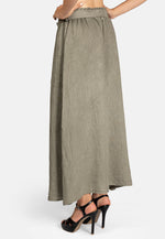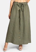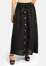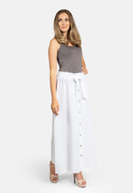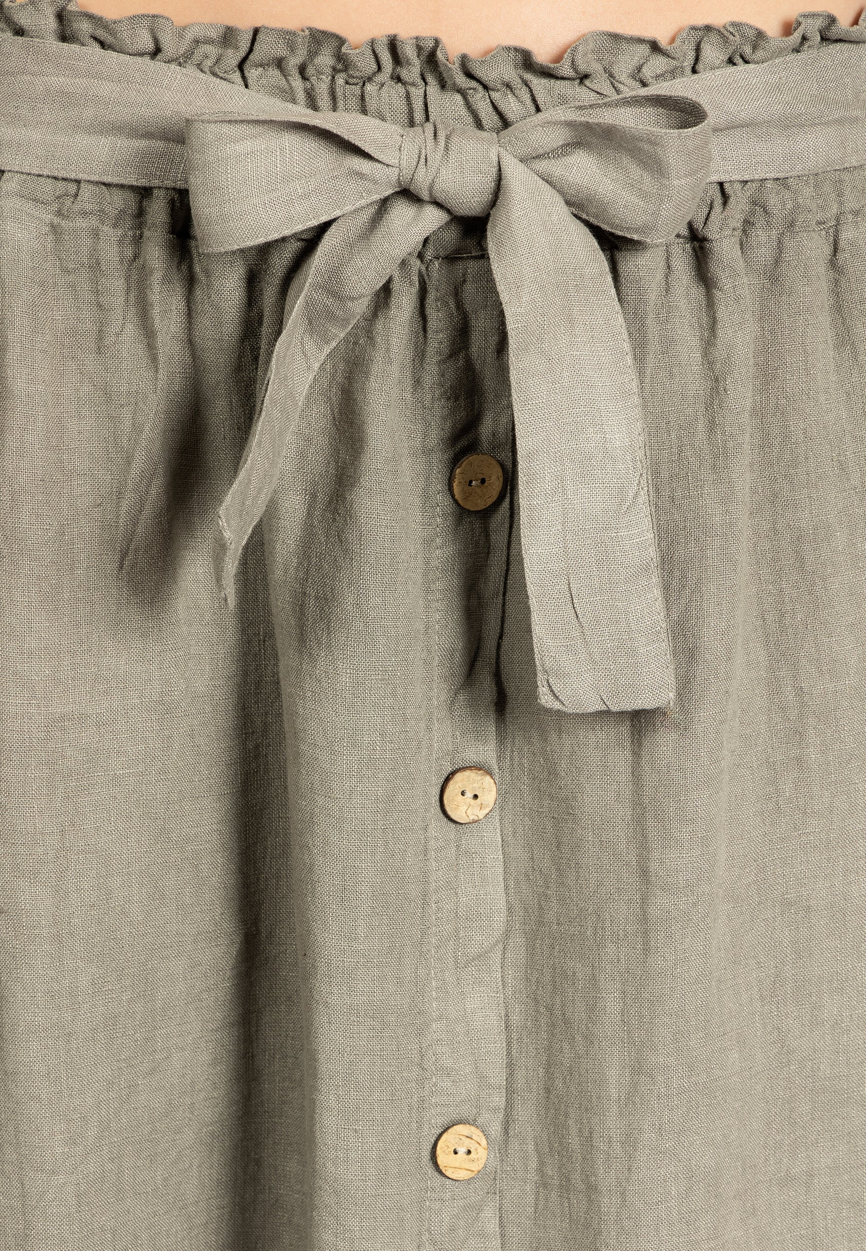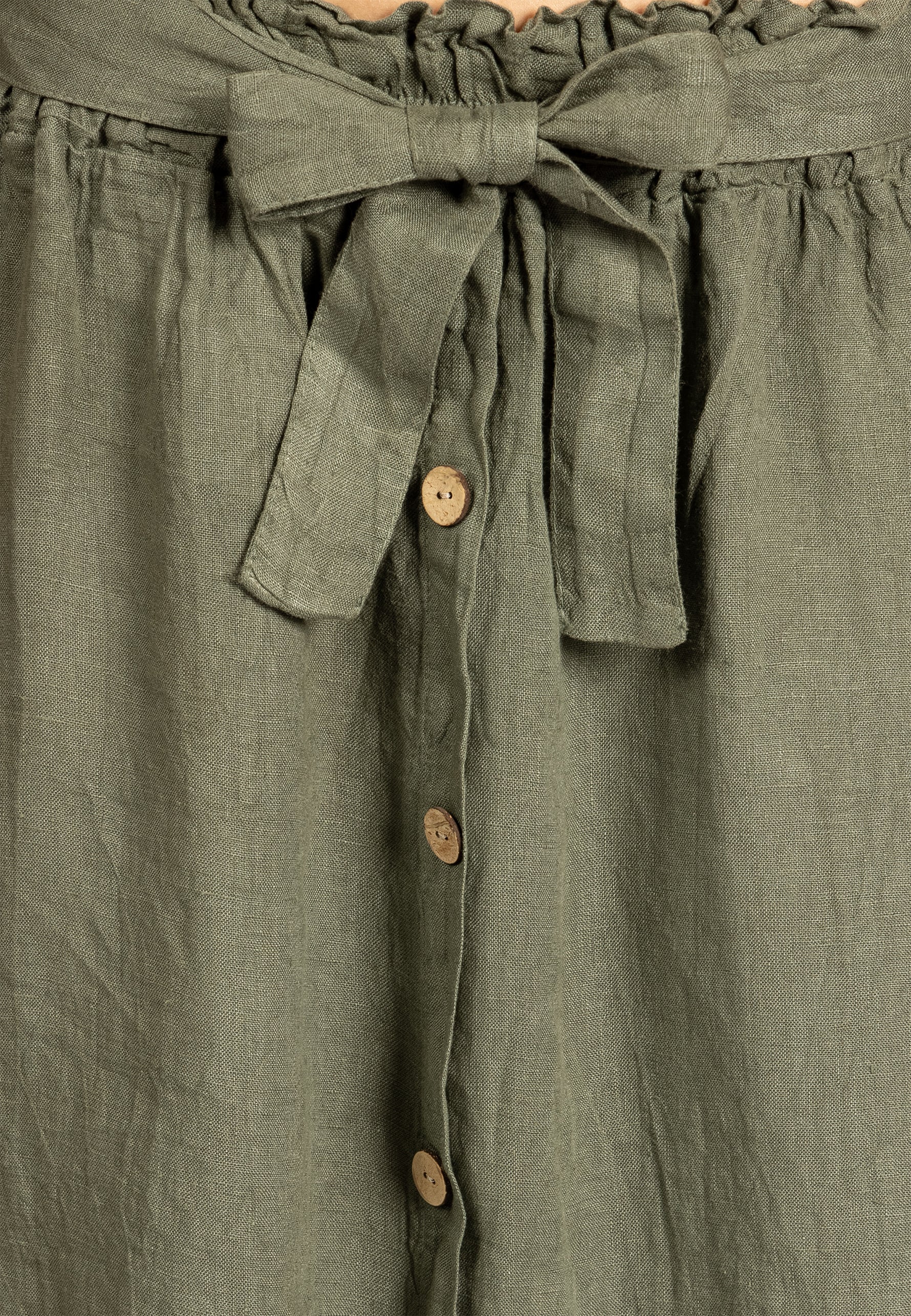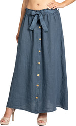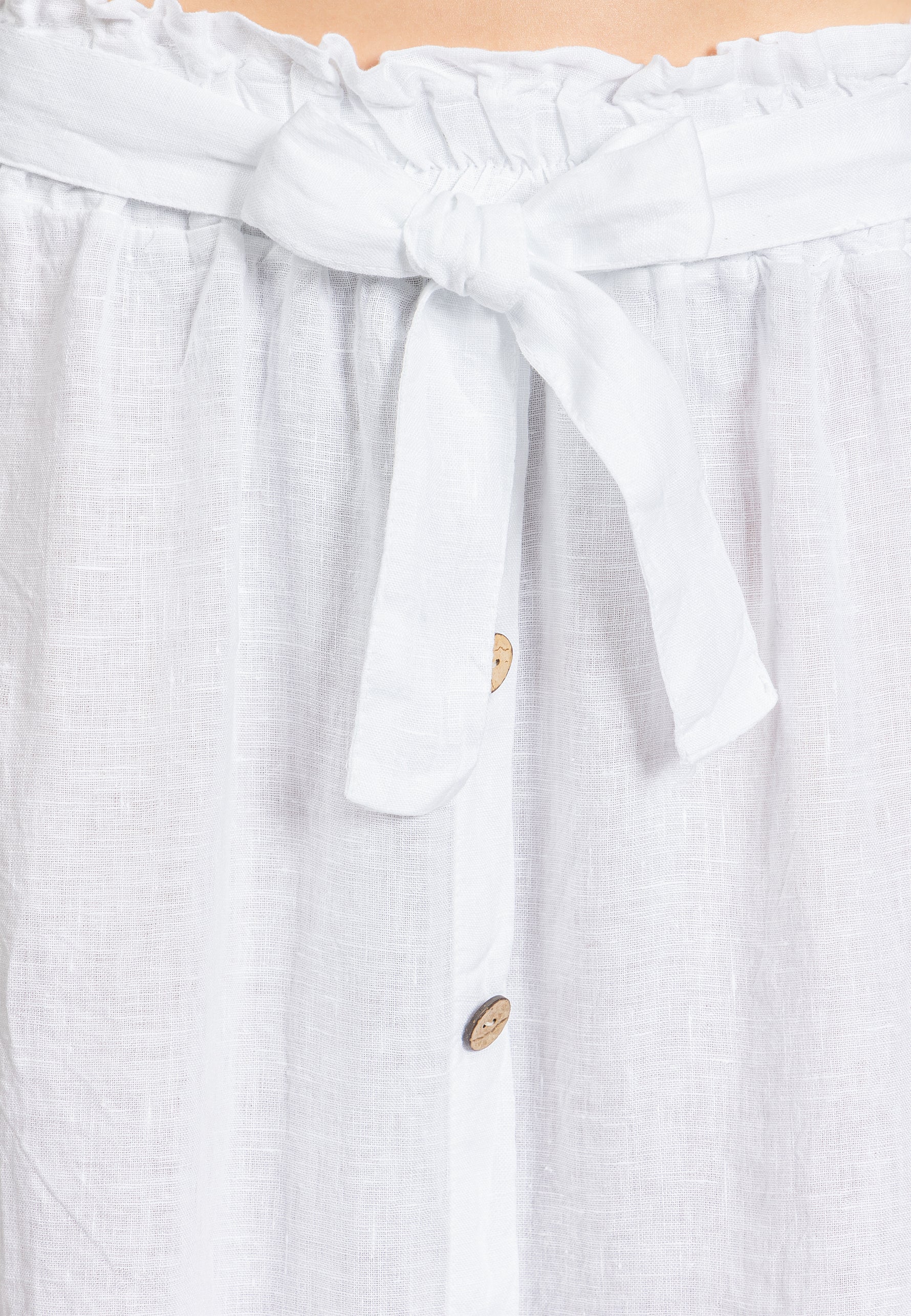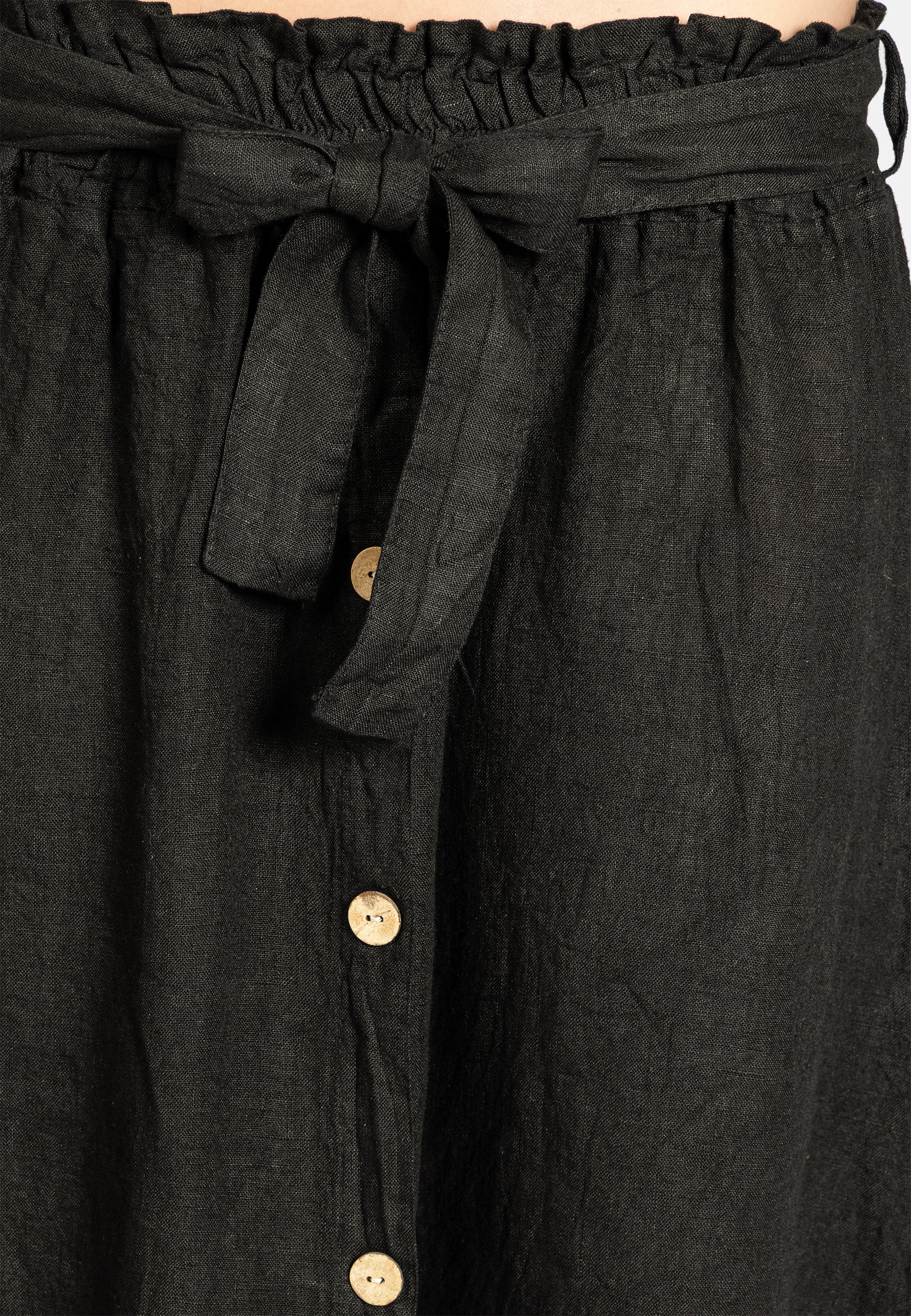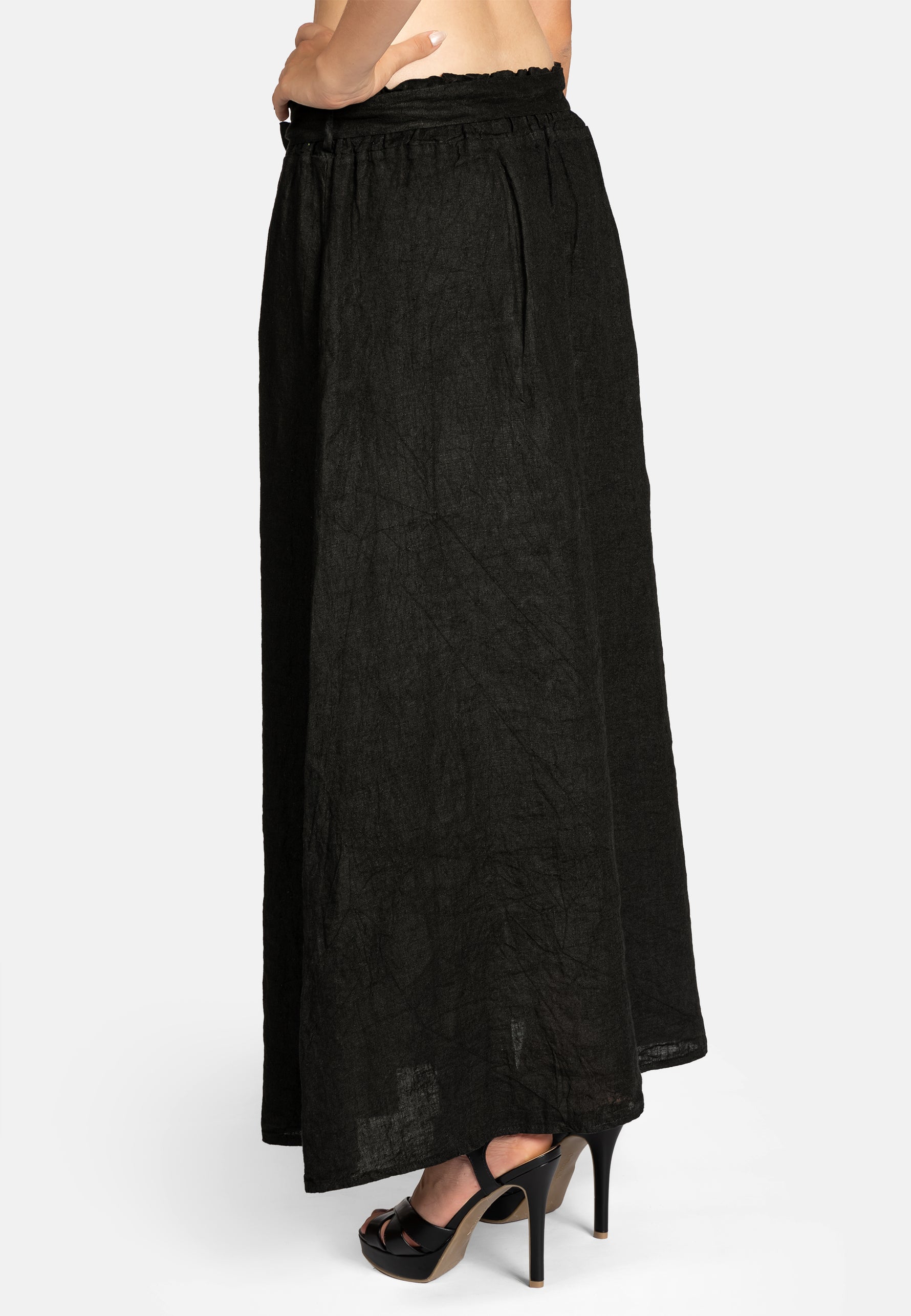 Super leichter, weicher und langer Damen Sommerrock aus italienischem Leinen mit stylischer Knopfleiste und gerafftem Bund. Der aus sommerlich luftigem und sehr angenehm zu tragenden Stoff hergestellte Maxirock ist der ideale Begleiter durch den Sommer. Das Besondere an diesem Rock ist seine schlichte und einfache Form in Kombination mit dem dezent gerafften Bund und dem sportlich eleganten Holzknöpfe Dekor auf der Vorderseite. Der Rock lässt sich daher perfekt kombinieren. Ein ca. 6 cm hoher, leicht geraffter Stretch Bund mit Gummizug passt sich ideal Ihrer Figur an und kaschiert geschickt kleine Problemzonen. Zusätzlich kann der Rock mit dem Bindeband fest gebunden werden. Die Knopfleiste ist nur Dekor und kann nicht geöffnet bzw. geschlossen werden. Material: 100% Leinen. Pflegehinweis: Maschinenwäsche bei 30 Grad - nicht Trocknergeeignet. Caspar - Made in Italy.