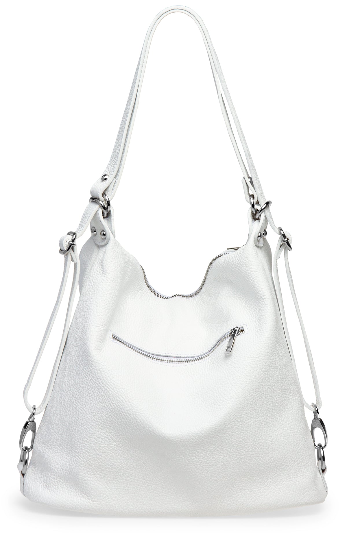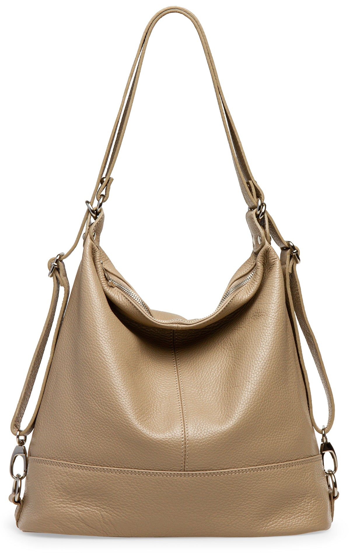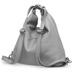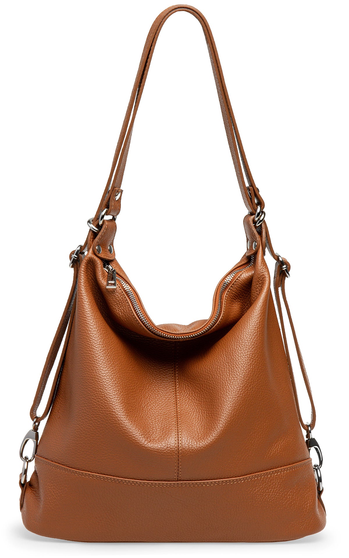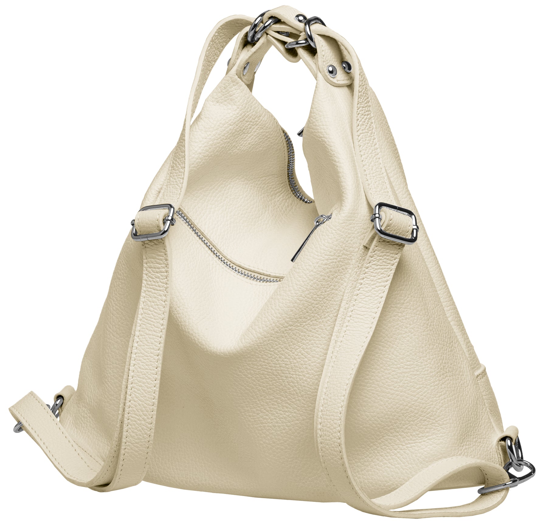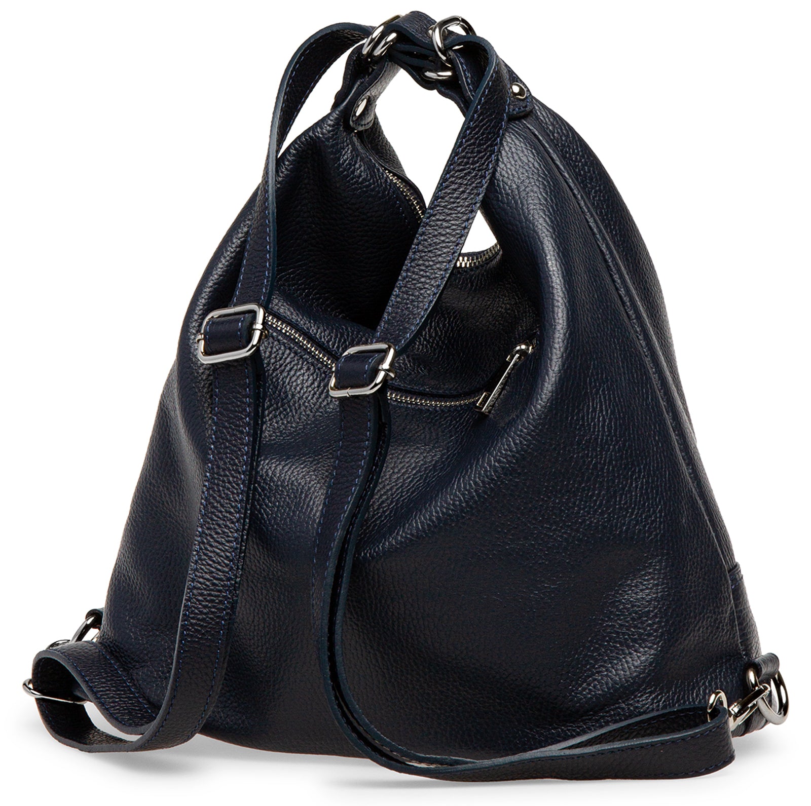 Mittelgroße Damen 2 in 1 Rucksack Schultertasche aus robustem italienischem Rindsleder. Elegante und praktische Ledertasche die sich einfach und schnell auch zu einem Rucksack umfunktionieren lässt. Diese Tasche ist dank ihrer Größe ideal geeignet als City Shopper, für die Reise oder einfach nur als flexible Begleiterin für jeden Tag. Die Multifunktionstasche wird in einer kleinen italienischen Ledermanufaktur von Hand gefertigt. Sie besteht aus robustem, genarbtem Rindsleder. Die Rucksack Tasche besitzt ein großes Hauptfach das mit einem oben angebrachten Reißverschluss sicher verschlossen werden kann, sowie im Innern ein kleines Sicherheitsfach sowie ein Seitenfach für das Smartphone. Außen auf der Rückseite ist zusätzlich ein verschließbares Sicherheitsfach angebracht. Maße: L x B x H ca. 34 x 15 x 31 cm (ohne Gurte). Material: Rindsleder. Caspar - Made in Italy.