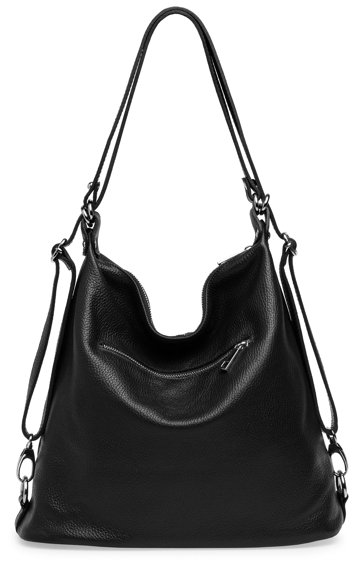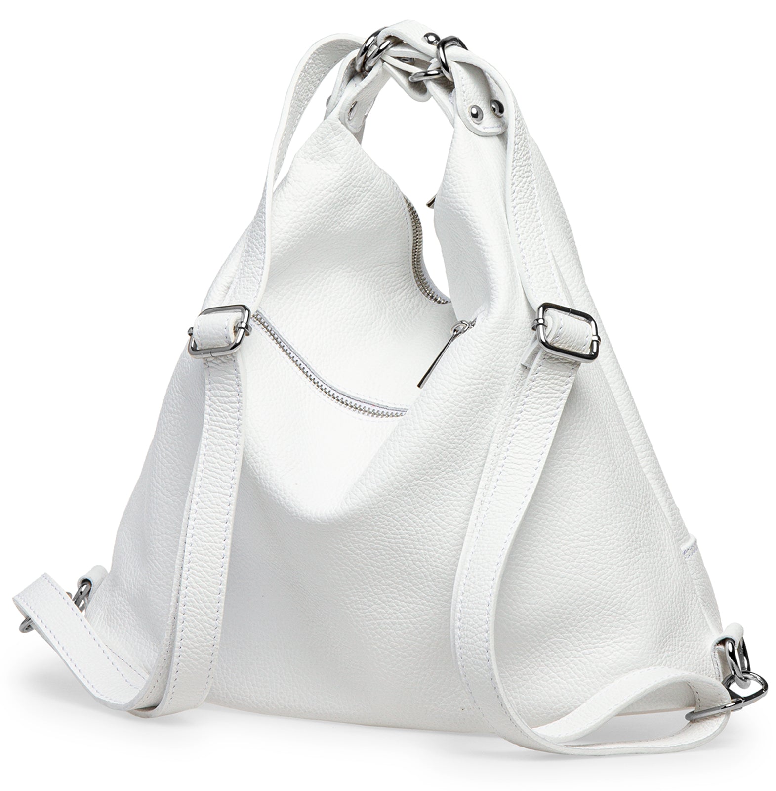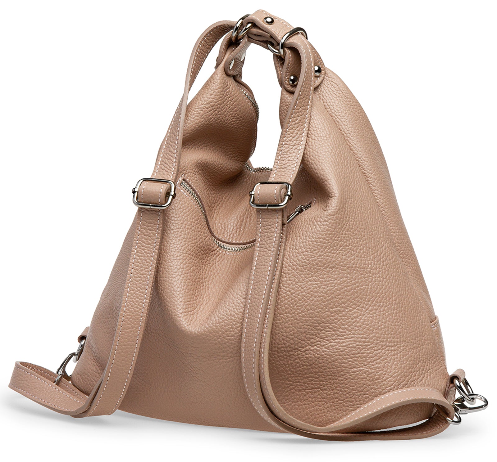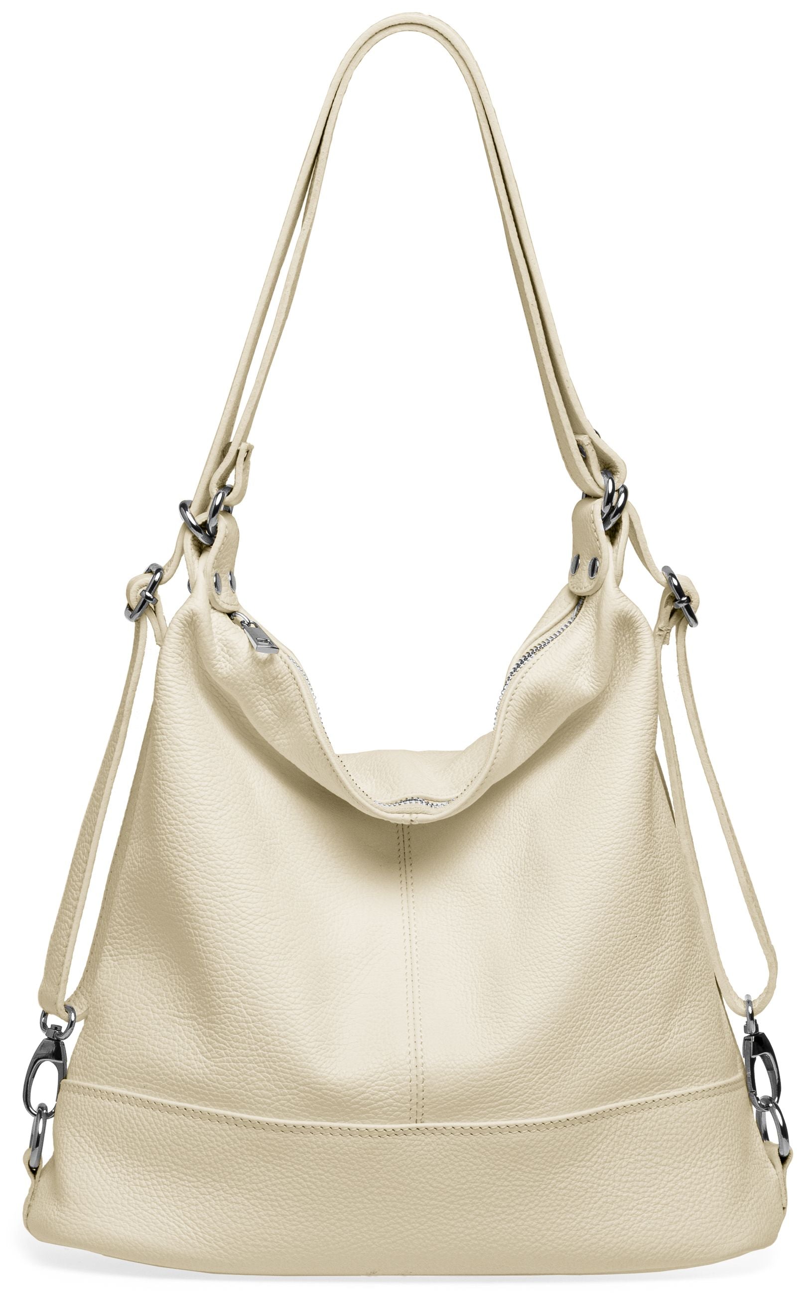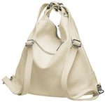 Mittelgroße Damen 2 in 1 Rucksack Schultertasche aus robustem italienischem Rindsleder. Elegante und praktische Ledertasche die sich einfach und schnell auch zu einem Rucksack umfunktionieren lässt. Diese Tasche ist dank ihrer Größe ideal geeignet als City Shopper, für die Reise oder einfach nur als flexible Begleiterin für jeden Tag. Die Multifunktionstasche wird in einer kleinen italienischen Ledermanufaktur von Hand gefertigt. Sie besteht aus robustem, genarbtem Rindsleder. Die Rucksack Tasche besitzt ein großes Hauptfach das mit einem oben angebrachten Reißverschluss sicher verschlossen werden kann, sowie im Innern ein kleines Sicherheitsfach sowie ein Seitenfach für das Smartphone. Außen auf der Rückseite ist zusätzlich ein verschließbares Sicherheitsfach angebracht. Maße: L x B x H ca. 34 x 15 x 31 cm (ohne Gurte). Material: Rindsleder. Caspar - Made in Italy.