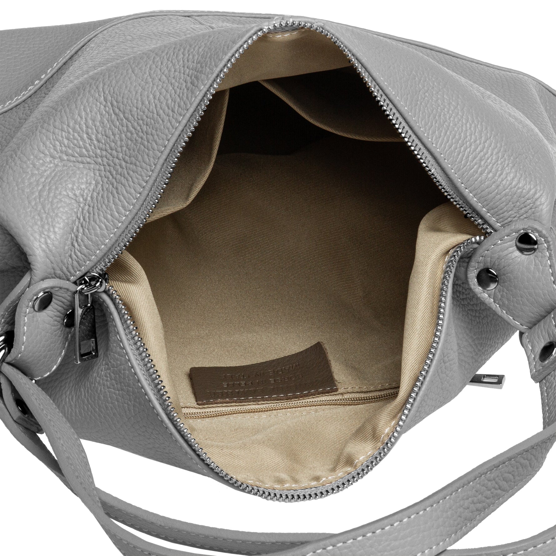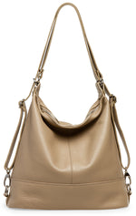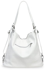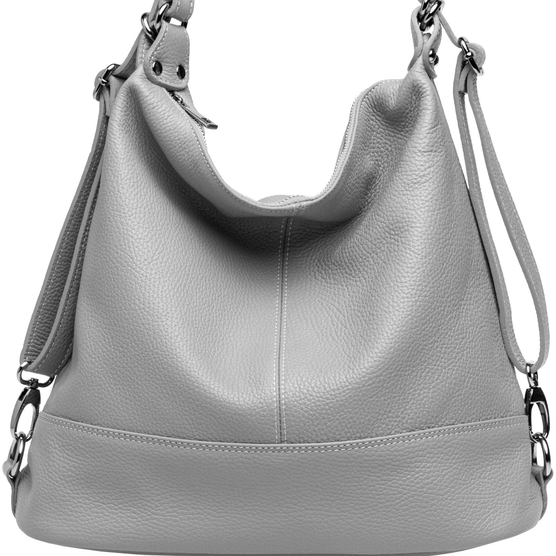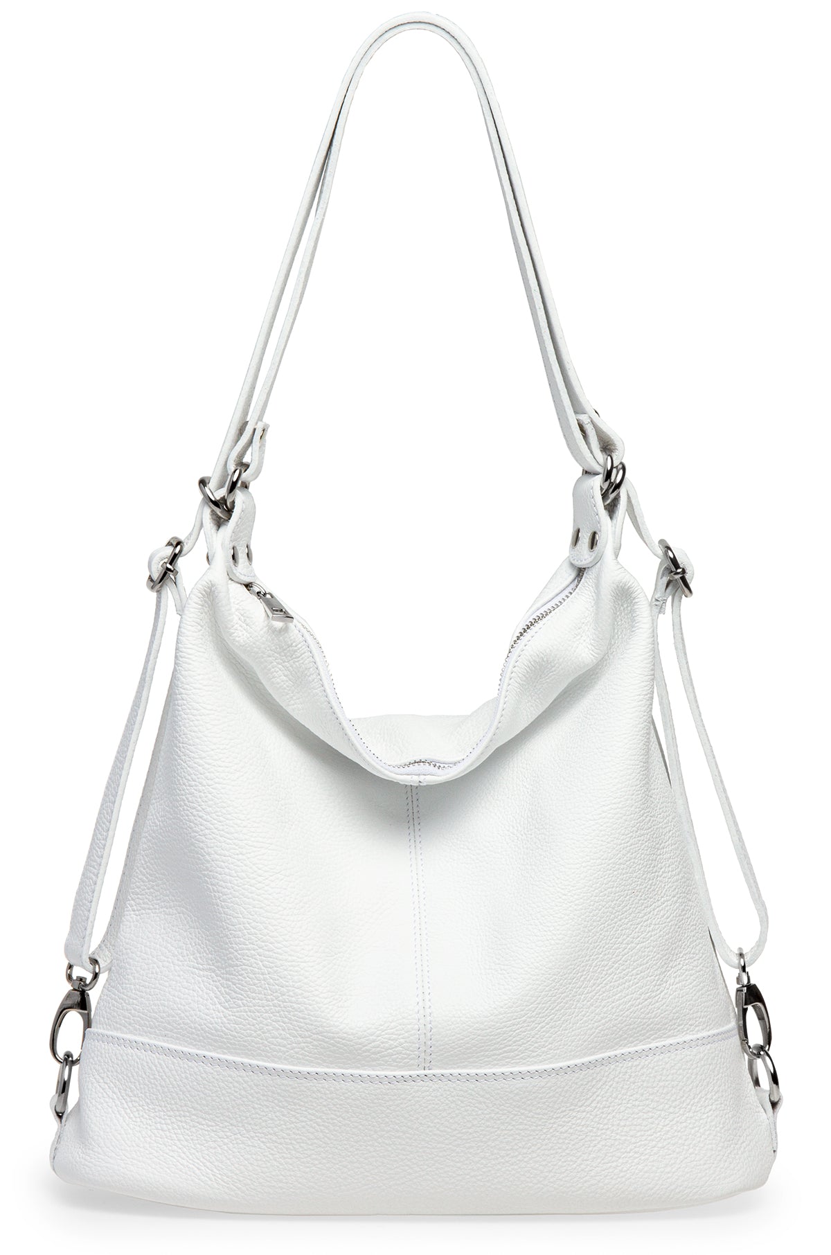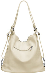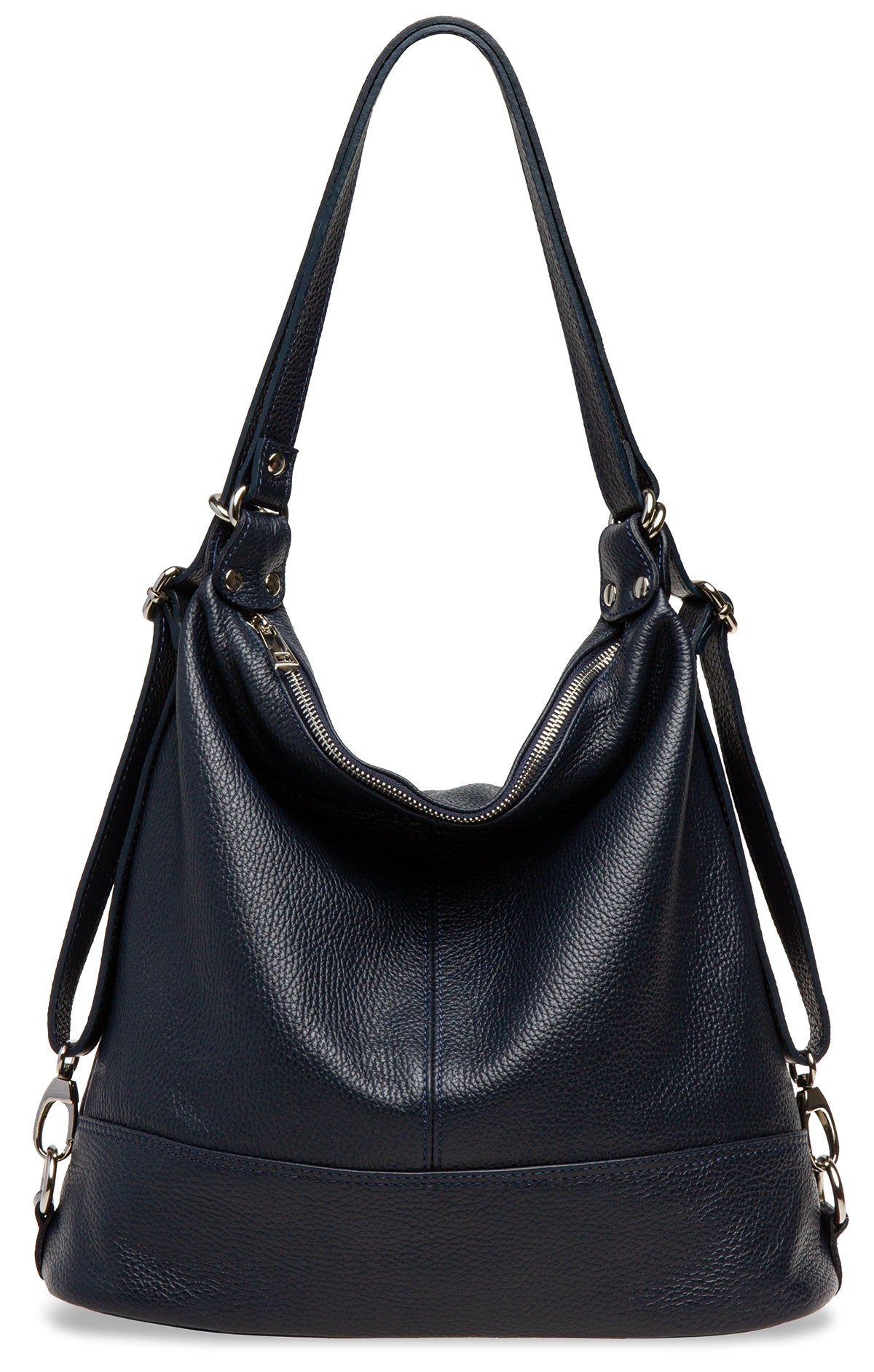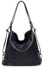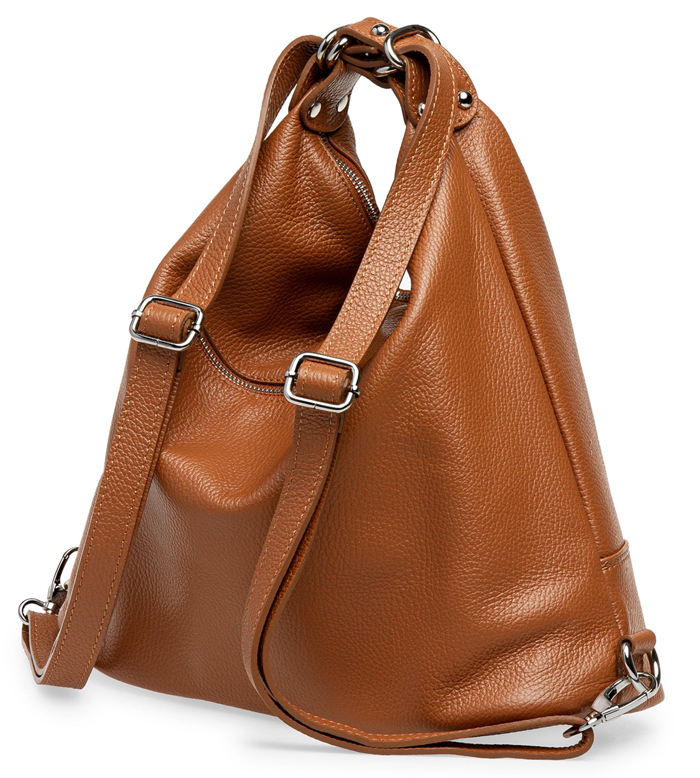 Mittelgroße Damen 2 in 1 Rucksack Schultertasche aus robustem italienischem Rindsleder. Elegante und praktische Ledertasche die sich einfach und schnell auch zu einem Rucksack umfunktionieren lässt. Diese Tasche ist dank ihrer Größe ideal geeignet als City Shopper, für die Reise oder einfach nur als flexible Begleiterin für jeden Tag. Die Multifunktionstasche wird in einer kleinen italienischen Ledermanufaktur von Hand gefertigt. Sie besteht aus robustem, genarbtem Rindsleder. Die Rucksack Tasche besitzt ein großes Hauptfach das mit einem oben angebrachten Reißverschluss sicher verschlossen werden kann, sowie im Innern ein kleines Sicherheitsfach sowie ein Seitenfach für das Smartphone. Außen auf der Rückseite ist zusätzlich ein verschließbares Sicherheitsfach angebracht. Maße: L x B x H ca. 34 x 15 x 31 cm (ohne Gurte). Material: Rindsleder. Caspar - Made in Italy.