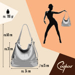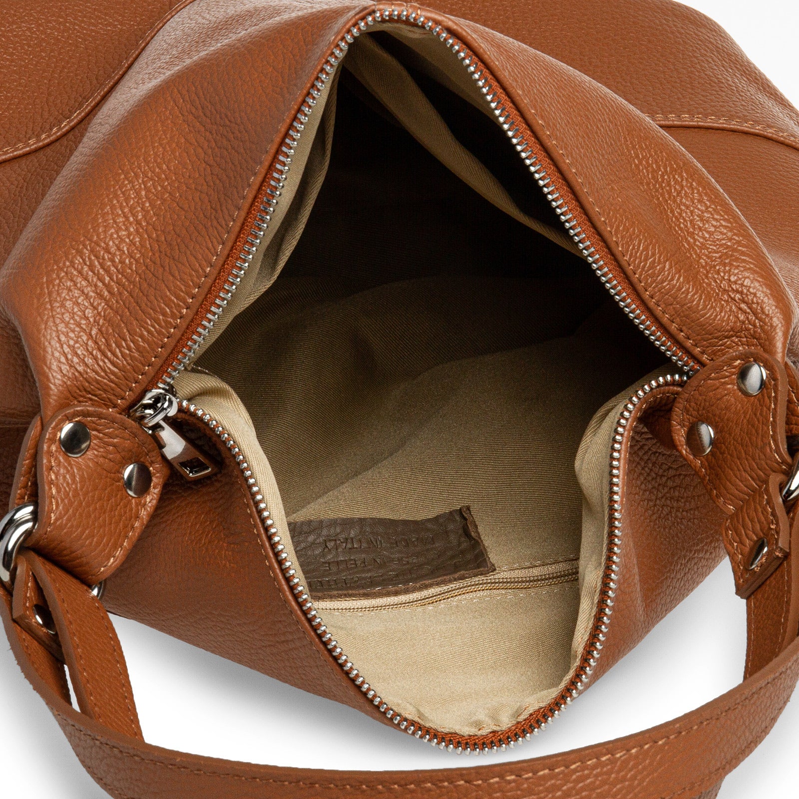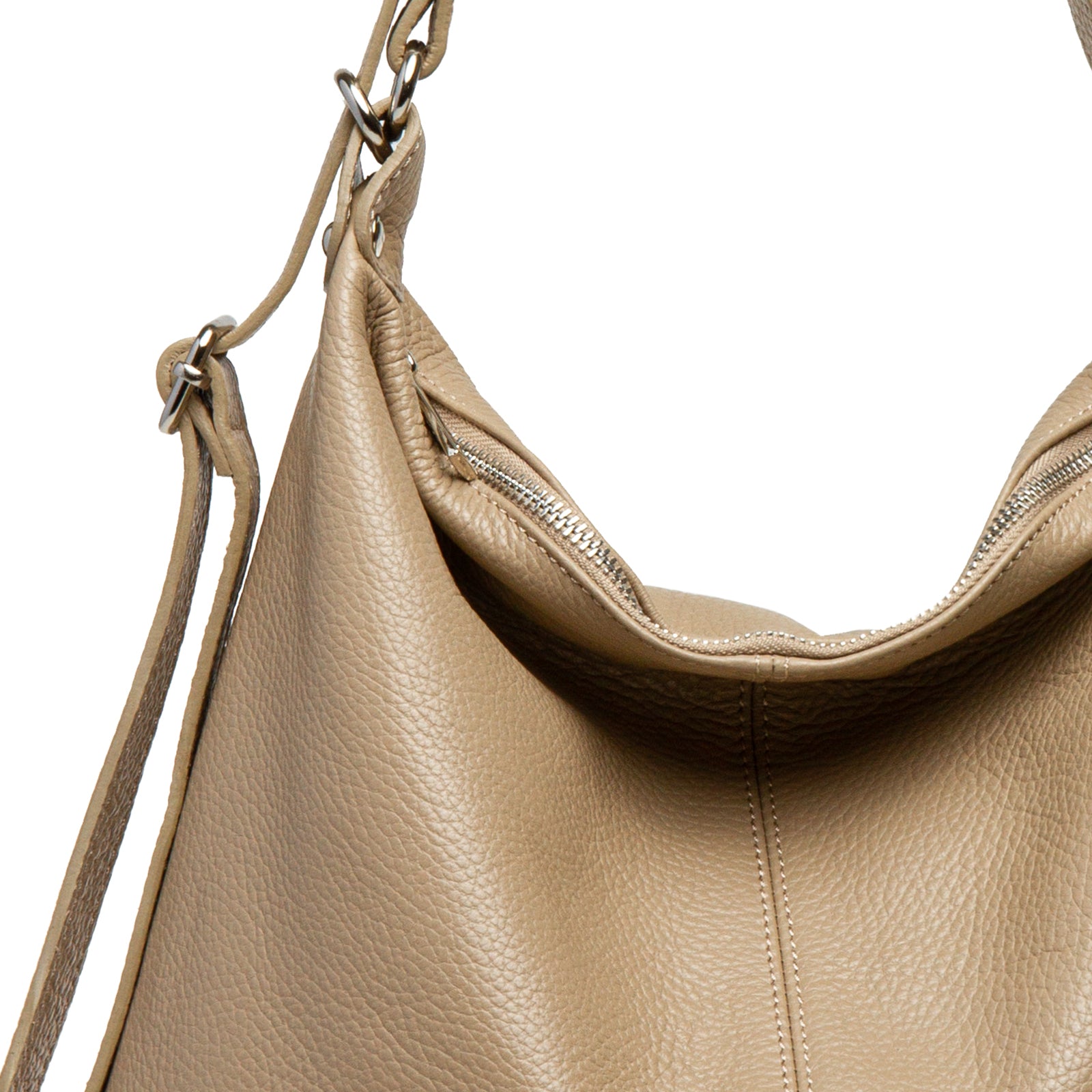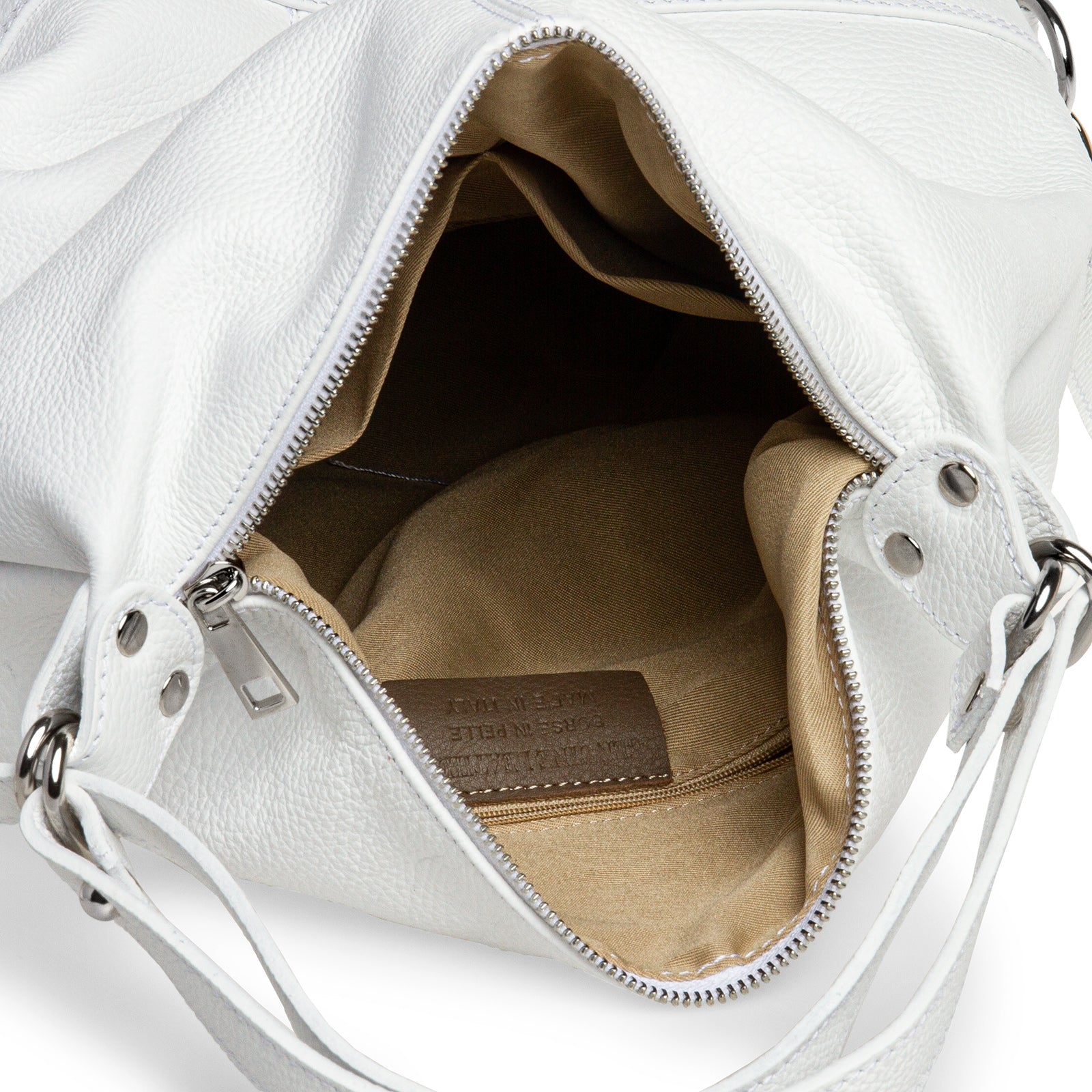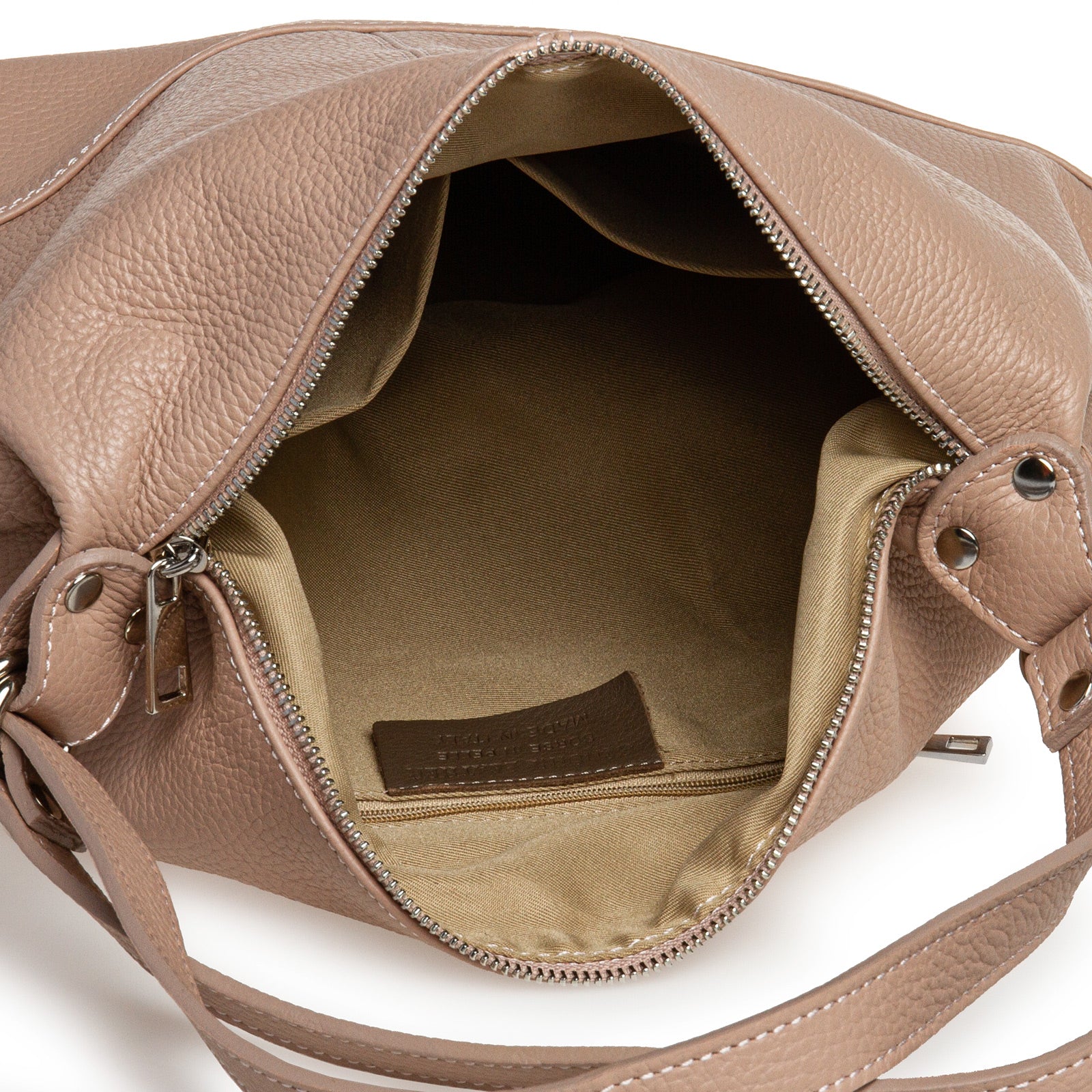 Mittelgroße Damen 2 in 1 Rucksack Schultertasche aus robustem italienischem Rindsleder. Elegante und praktische Ledertasche die sich einfach und schnell auch zu einem Rucksack umfunktionieren lässt. Diese Tasche ist dank ihrer Größe ideal geeignet als City Shopper, für die Reise oder einfach nur als flexible Begleiterin für jeden Tag. Die Multifunktionstasche wird in einer kleinen italienischen Ledermanufaktur von Hand gefertigt. Sie besteht aus robustem, genarbtem Rindsleder. Die Rucksack Tasche besitzt ein großes Hauptfach das mit einem oben angebrachten Reißverschluss sicher verschlossen werden kann, sowie im Innern ein kleines Sicherheitsfach sowie ein Seitenfach für das Smartphone. Außen auf der Rückseite ist zusätzlich ein verschließbares Sicherheitsfach angebracht. Maße: L x B x H ca. 34 x 15 x 31 cm (ohne Gurte). Material: Rindsleder. Caspar - Made in Italy.