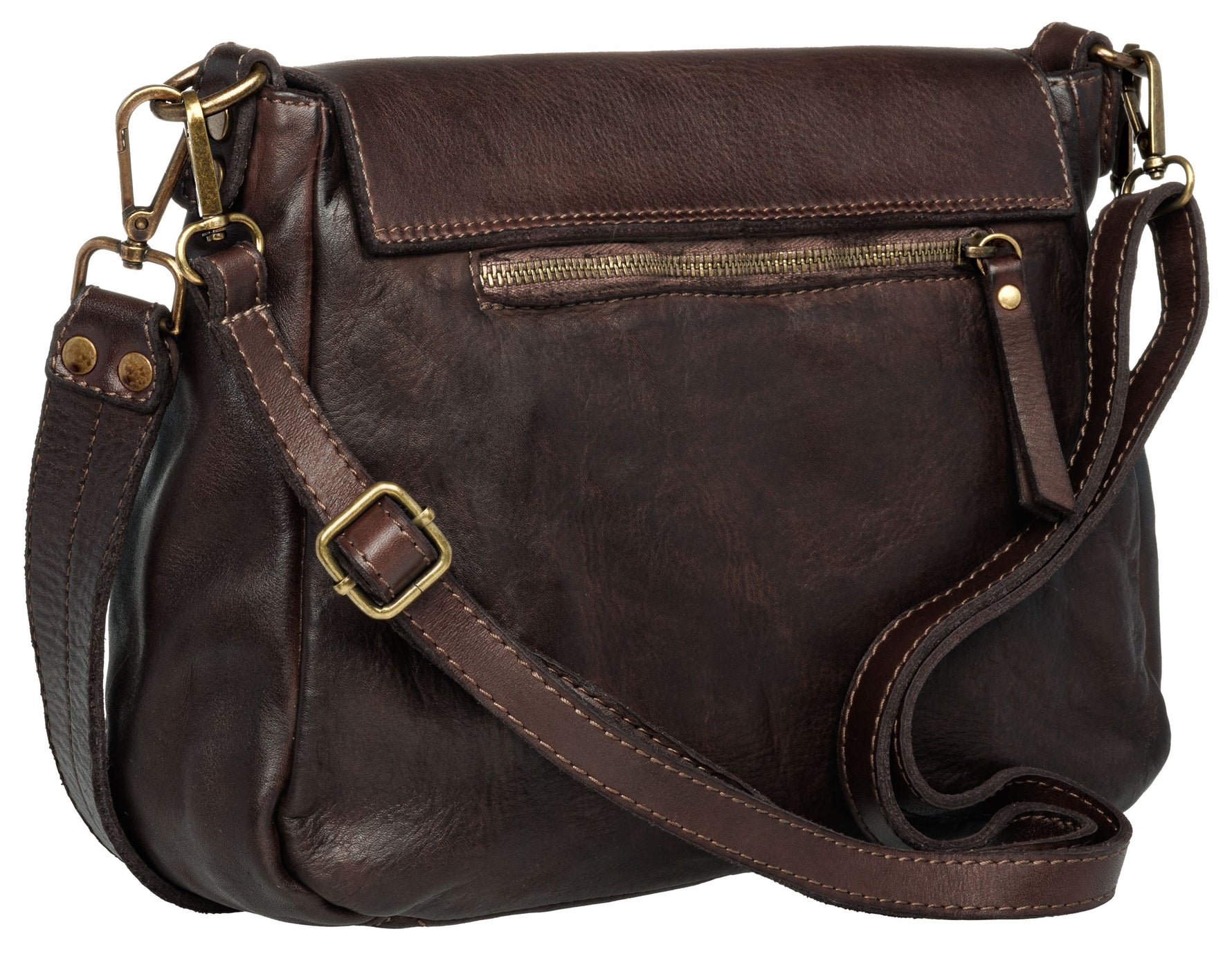 Unsere hochwertige Umhängetasche aus der exklsuiven Caspar SIGNATURE LINE vereint stilvolles Vintage-Design mit durchdachter Funktionalität und erstklassiger Materialqualität. Gefertigt aus gewaschenem, italienischem Rindsleder, überzeugt durch eine besonders weiche, anschmiegsame Haptik und ihren individuellen Charakter. Der durch Waschung erzeugte, spezielle Used-Look verleiht der Tasche eine einzigartige Ausstrahlung, während die robusten Metallteile in Vintage-Messing-Optik den Look harmonisch abrunden. Das geräumige Hauptfach bietet viel Platz für den Alltag und ist durch zwei seitliche Innenfächer - eines davon mit Reißverschluss - übersichtlich organisiert. Ein zusätzliches Außenfach sorgt für schnellen Zugriff auf wichtige Dinge. Zwei abnehmbare Trageriemen machen die Tasche flexibel tragbar - ob lässig über der Schulter oder als Crossbody-Bag. Die Tasche verfügt über eine Überschlagklappe mit Magnetverschluss, die ein schnelles und unkompliziertes Öffnen ermöglicht. Mit einem Gewicht von ca. 605 g und kompakten Maßen (ca. 32 × 11 × 24 cm) ist sie angenehm leicht und bietet dennoch ausreichend Stauraum. Die Tasche eignet sich perfekt für Alltag, Beruf oder Freizeit und überzeugt mit Charakter, Komfort und Qualität.