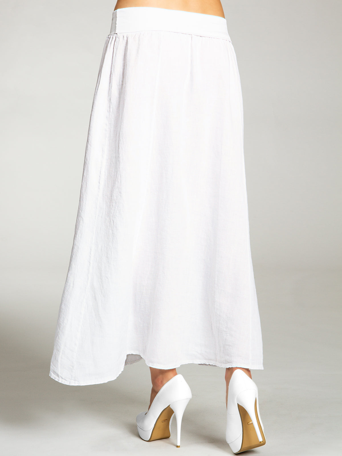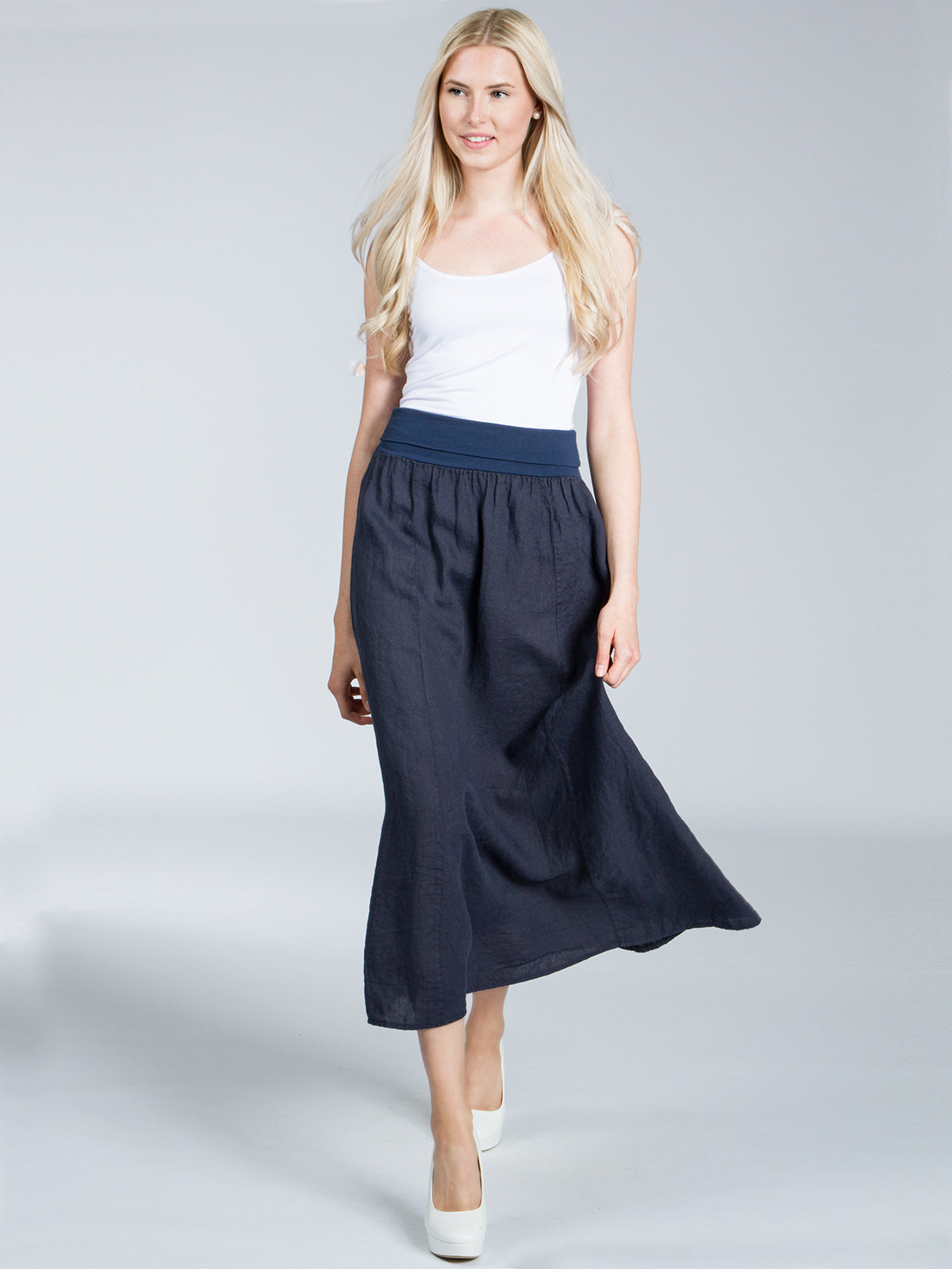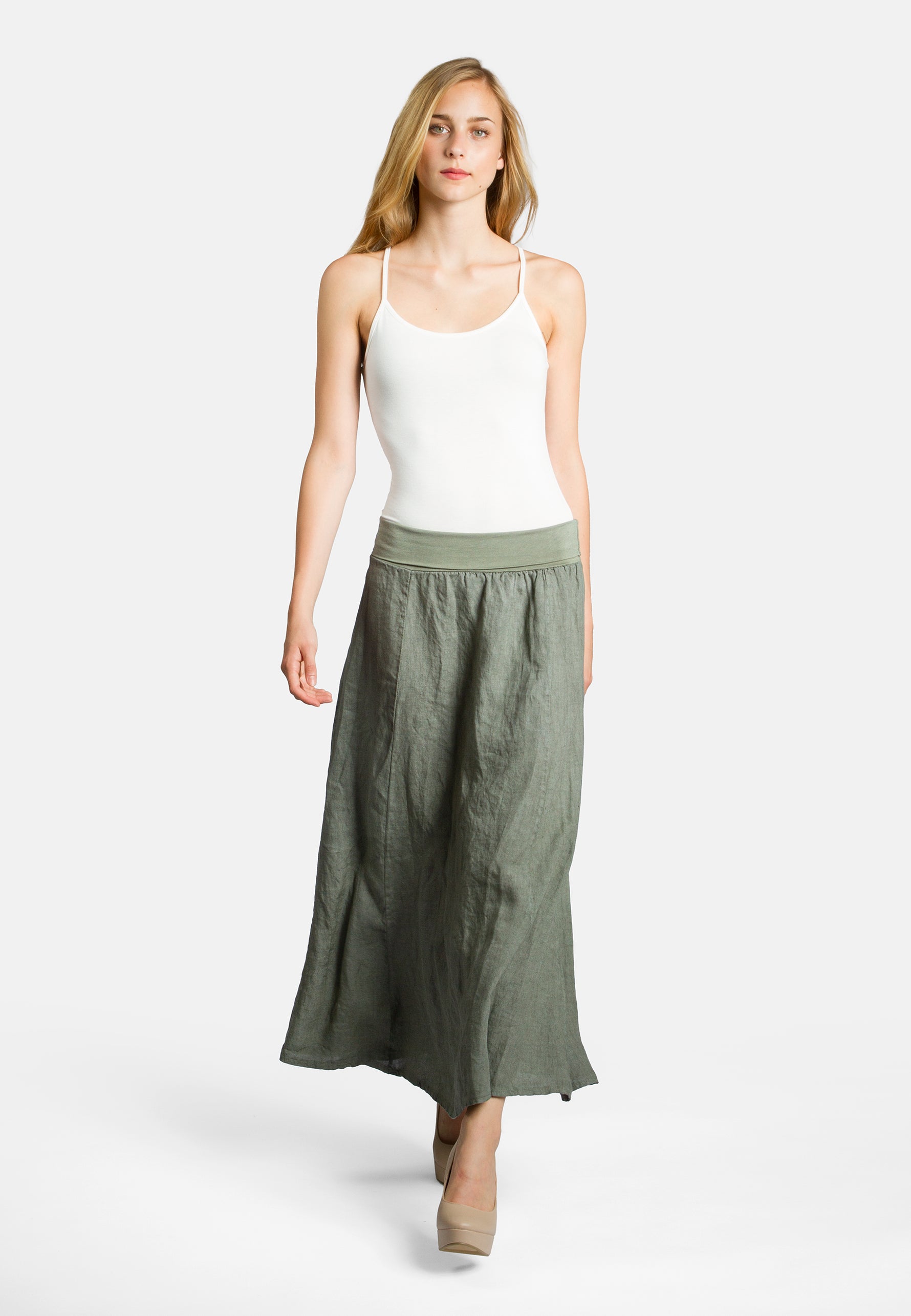 Super leichter, weicher und langer Damen Sommerrock aus italienischem Leinen. Der aus sommerlich luftigem und sehr angenehm zu tragenden Stoff hergestellte Maxirock ist der ideale Begleiter durch den Sommer. Das Besondere an diesem Rock ist seine schlichte und einfache Form mit einem klassisch und dennoch eleganten Style. Der Rock lässt sich perfekt kombinieren. Ein ca. 7 cm hoher Stretch Bund mit Gummizug passt sich ideal Ihrer Figur an und kaschiert geschickt kleine Problemzonen. Der Bund ist dehnbar und daher ist der Rock trotz Einheitsgröße geeignet für Größen von S bis XL. Material: 100% Leinen. Pflegehinweis: Maschinenwäsche bei 30 Grad - nicht Trocknergeeignet. Caspar Fashion - Made in Italy.