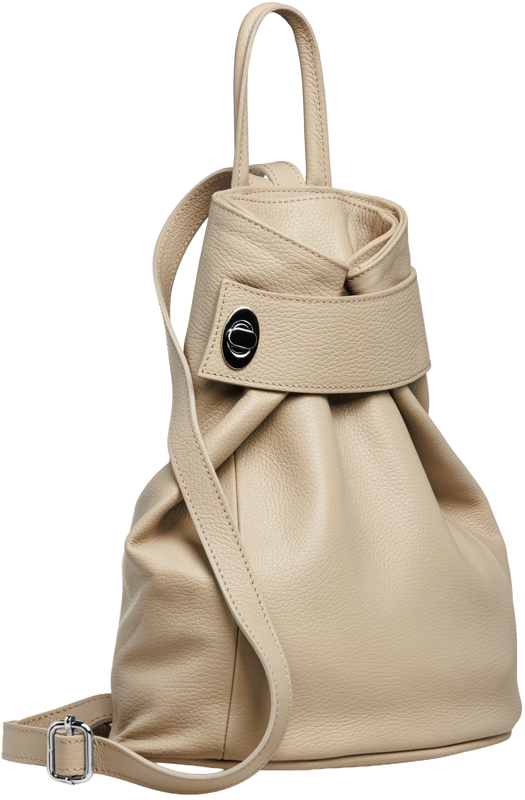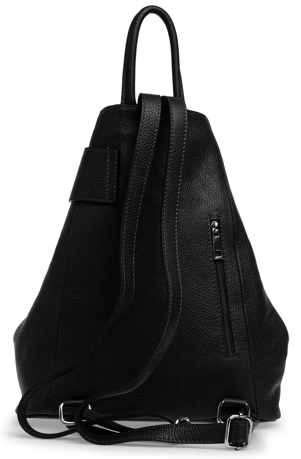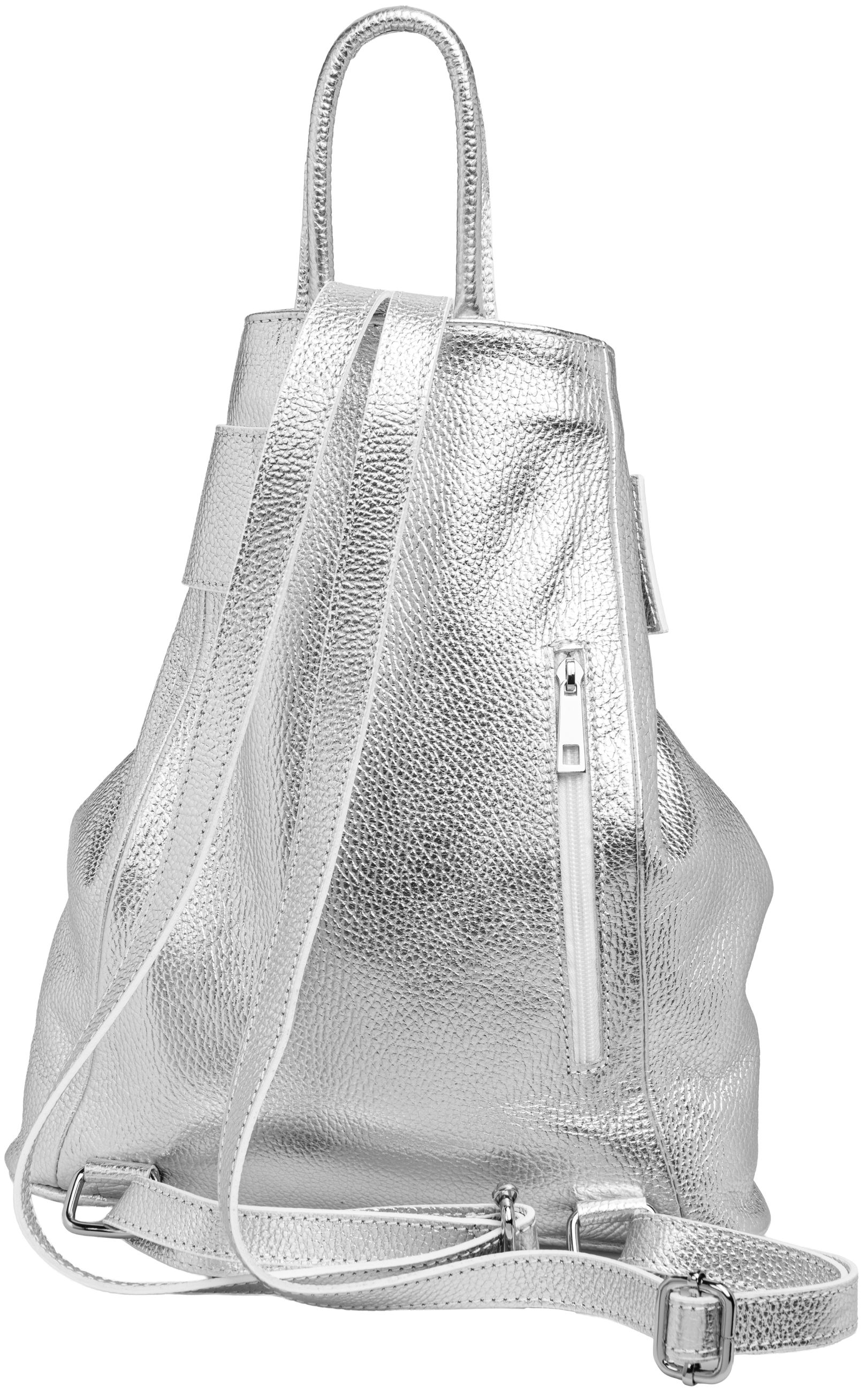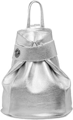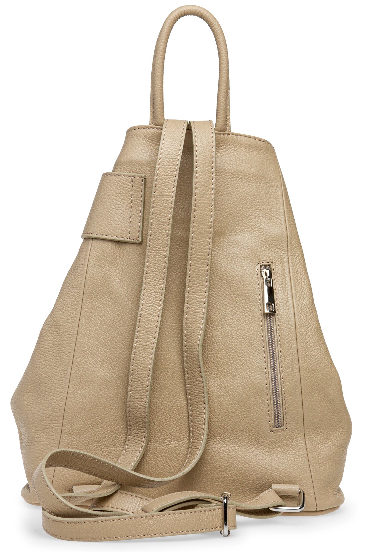 Formschöner, sportlich eleganter Damen Rucksack aus robustem italienischem Rindsleder. Form und Funktion bilden bei diesem hochwertigen Lederrucksack eine ideale Symbiose. Das besondere Design mit der breiten Lederschnalle macht den Daypack zu etwas ganz Besonderem. Der zusätzliche Reißverschluss des geräumigen Hauptfaches sorgt für die nötige Sicherheit. Außen befindet sich ein praktisches Reißverschlussfach für Dinge die man schnell und öfter braucht. Das Hauptfach besitzt im Innern 3 Seitenfächer, eines davon ebenfalls mit Reißverschluss schließbar. Die Schultergurte sind längenverstellbar und lassen sich somit optimal an Ihre Bedürfnisse anpassen. Insgesamt eine sehr gut durchdachte, außergewöhnliche Tasche an der kein Teil zu viel und kein Teil zu wenig dran ist. Das Obermaterial besteht aus regen- und kratzunempfindlichem, leicht genarbtem Rindsleder. Maße der Großen Größe: BxHxT ca. 29x35x13 cm. Material: Rindsleder. Caspar Fashion - Made in Italy.
