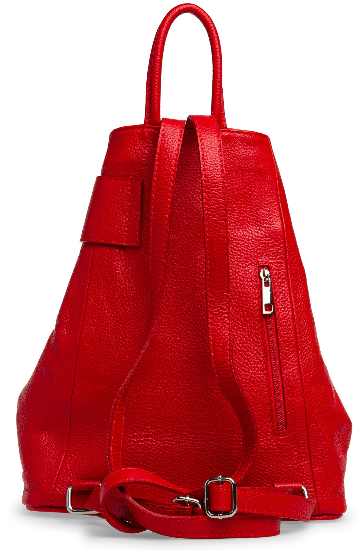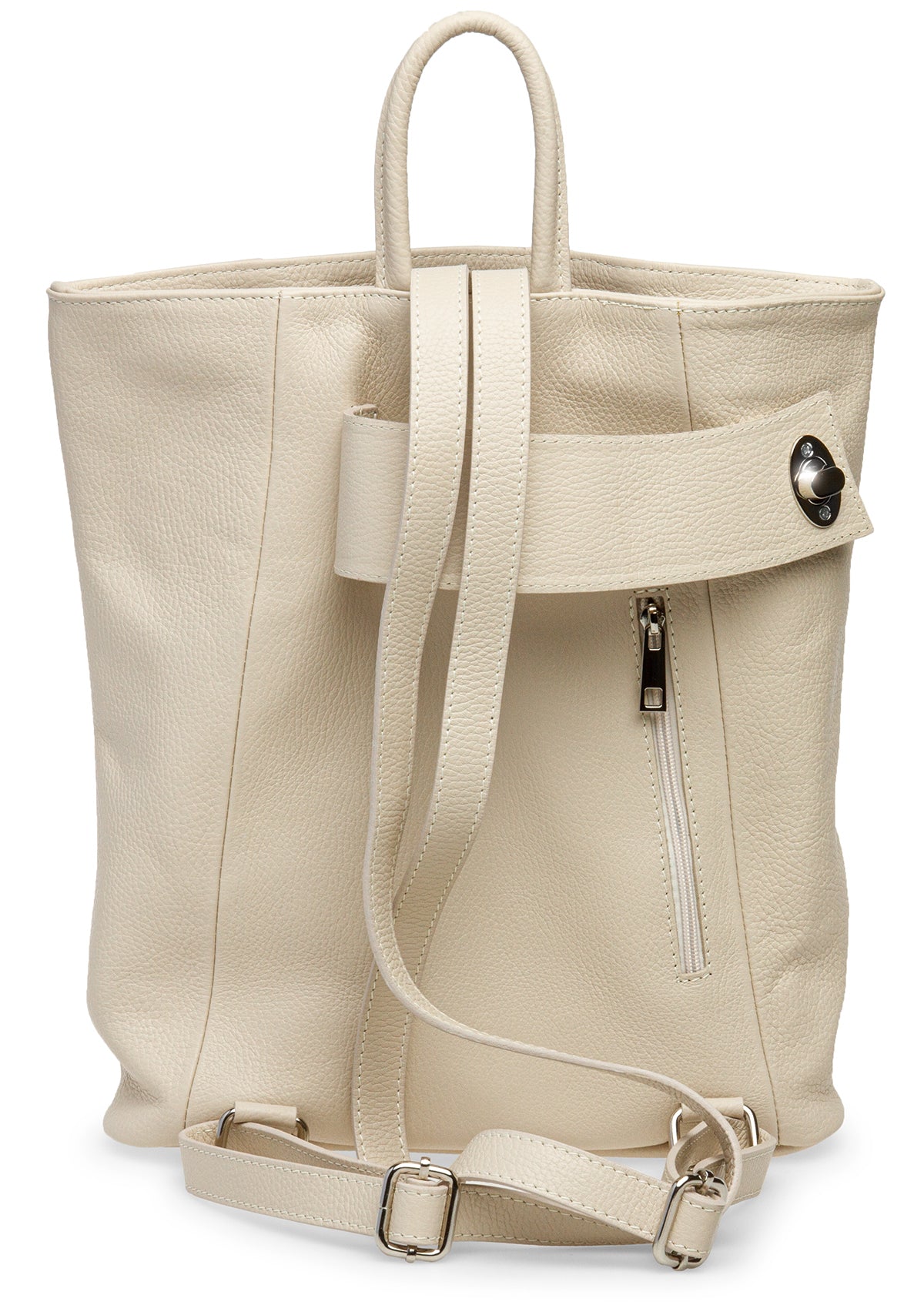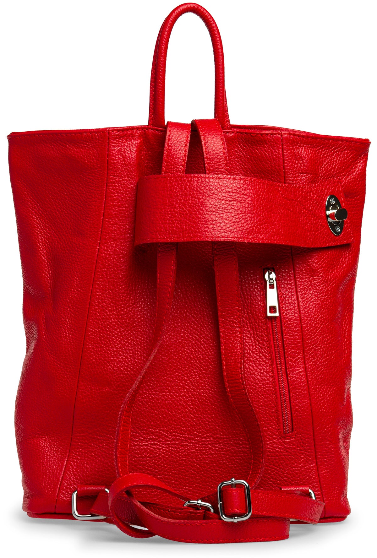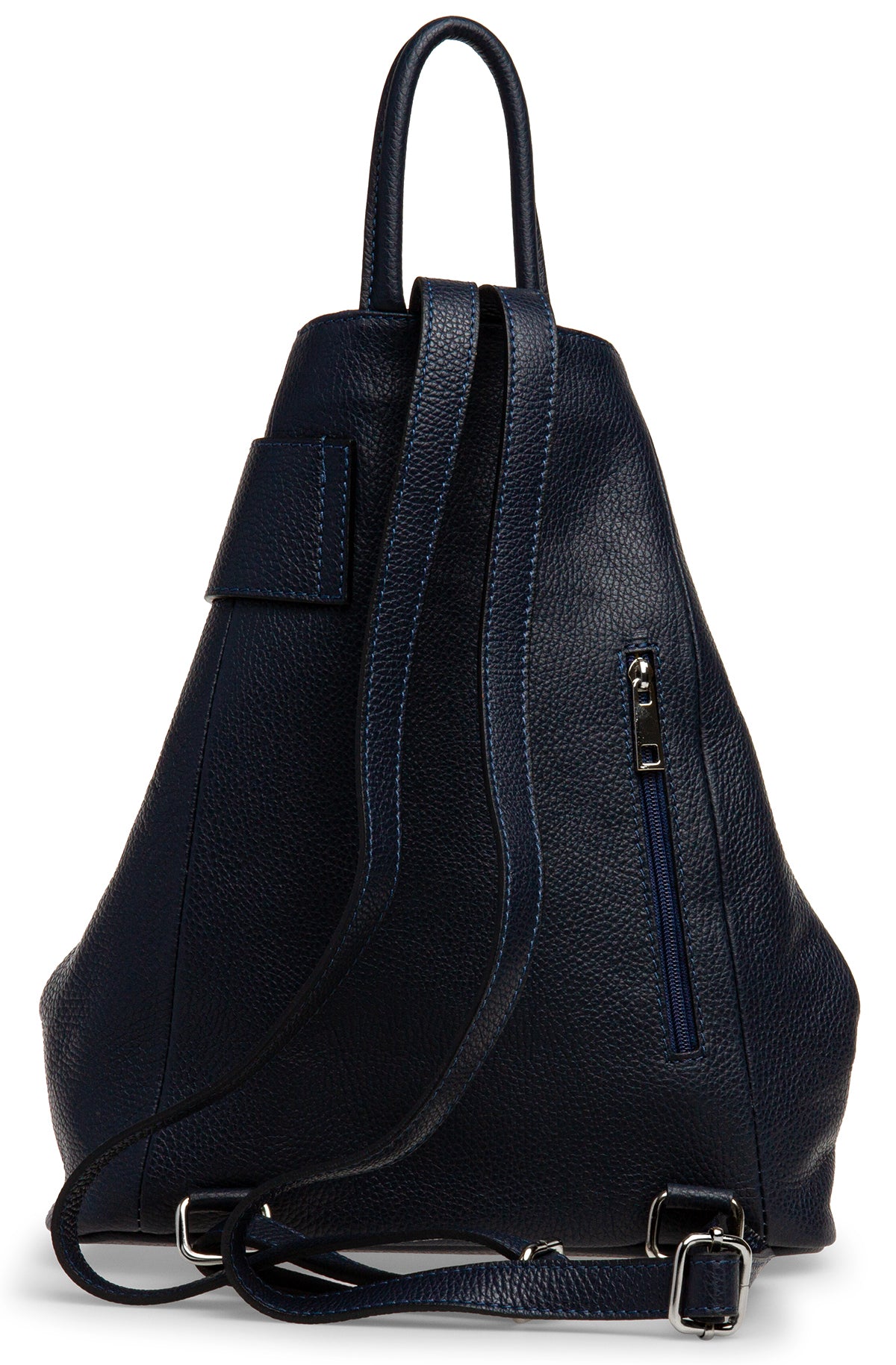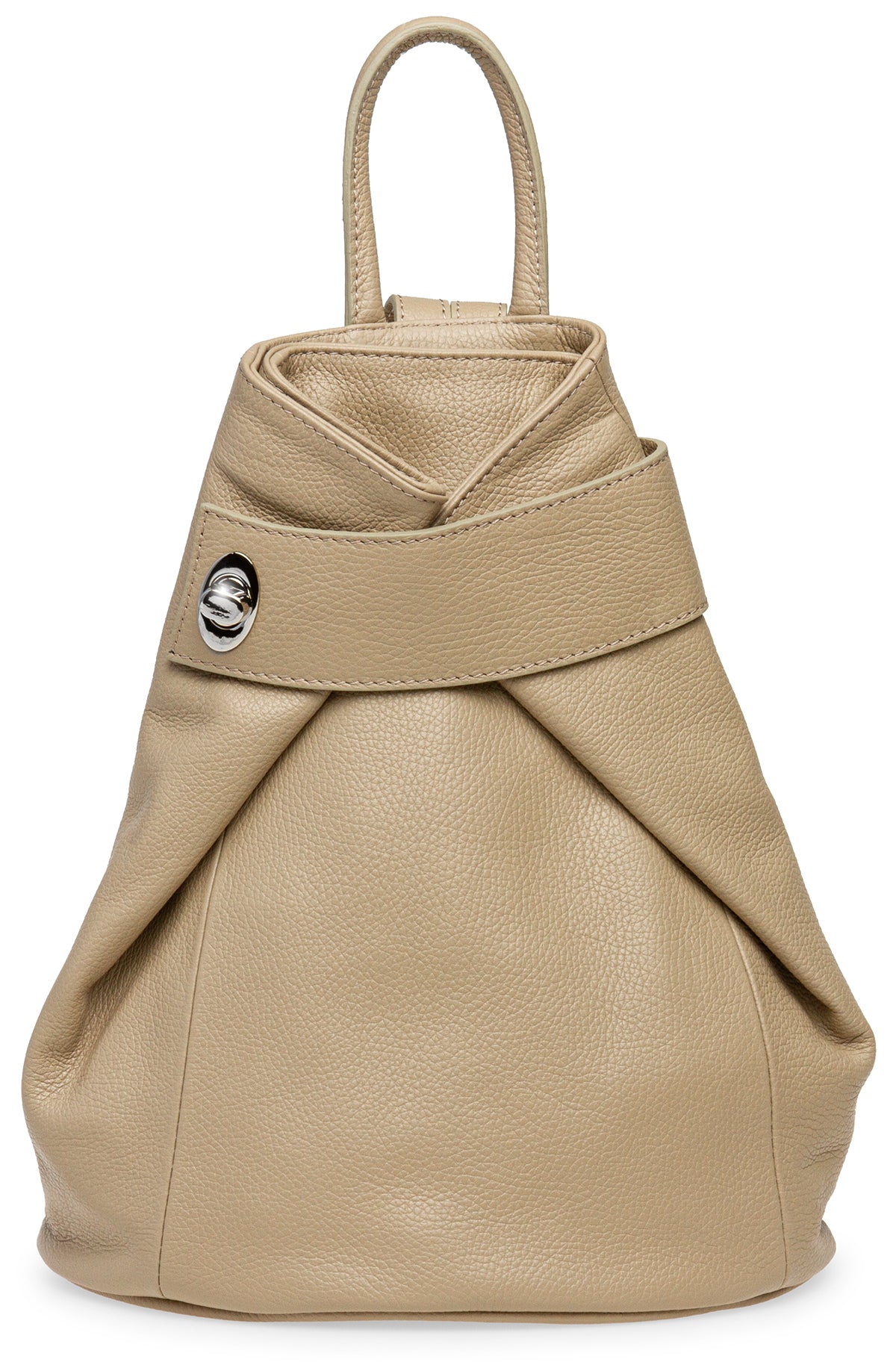 Formschöner, sportlich eleganter Damen Rucksack aus robustem italienischem Rindsleder. Form und Funktion bilden bei diesem hochwertigen Lederrucksack eine ideale Symbiose. Das besondere Design mit der breiten Lederschnalle macht den Daypack zu etwas ganz Besonderem. Der zusätzliche Reißverschluss des geräumigen Hauptfaches sorgt für die nötige Sicherheit. Außen befindet sich ein praktisches Reißverschlussfach für Dinge die man schnell und öfter braucht. Das Hauptfach besitzt im Innern 3 Seitenfächer, eines davon ebenfalls mit Reißverschluss schließbar. Die Schultergurte sind längenverstellbar und lassen sich somit optimal an Ihre Bedürfnisse anpassen. Insgesamt eine sehr gut durchdachte, außergewöhnliche Tasche an der kein Teil zu viel und kein Teil zu wenig dran ist. Das Obermaterial besteht aus regen- und kratzunempfindlichem, leicht genarbtem Rindsleder. Maße der Großen Größe: BxHxT ca. 29x35x13 cm. Material: Rindsleder. Caspar Fashion - Made in Italy.