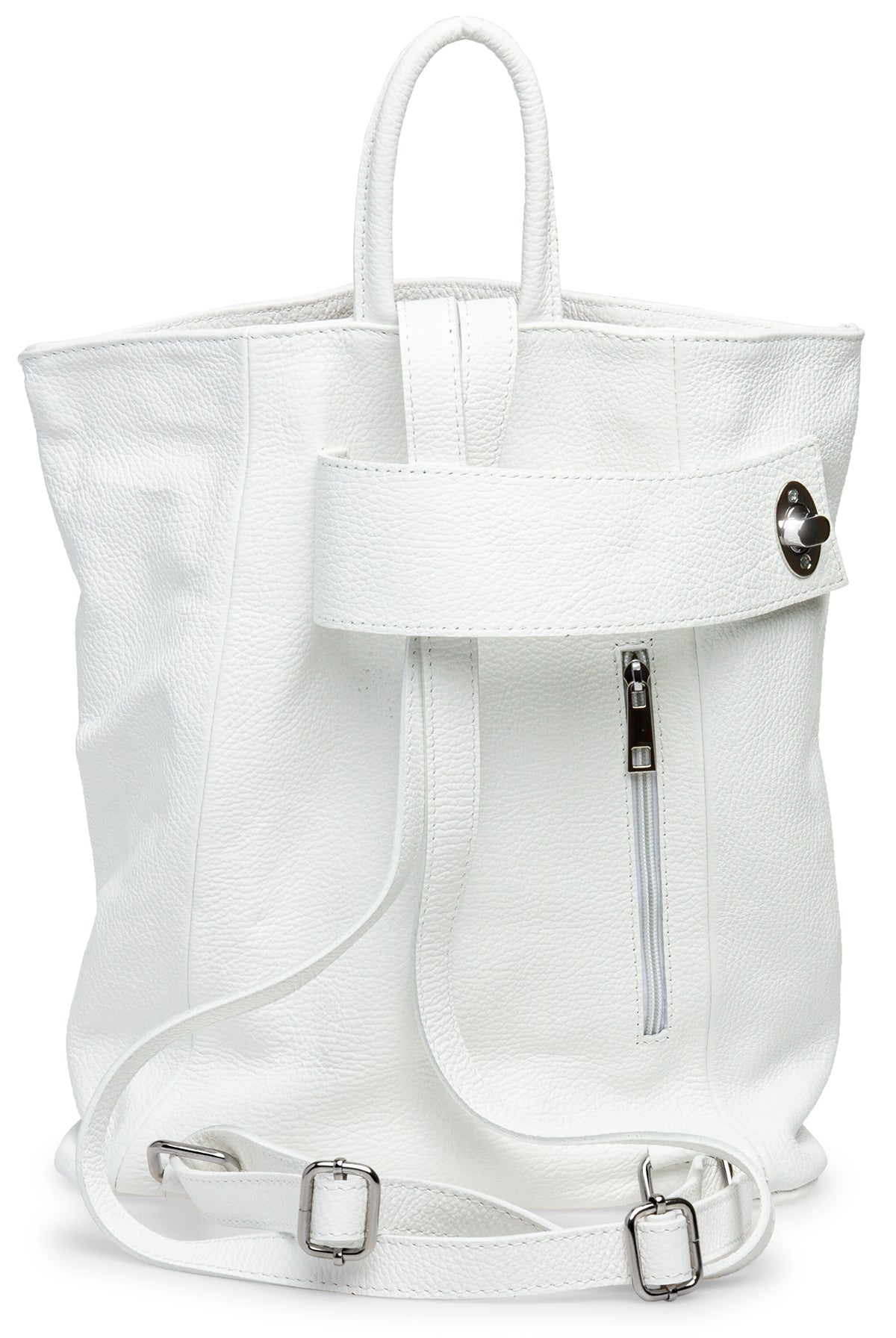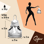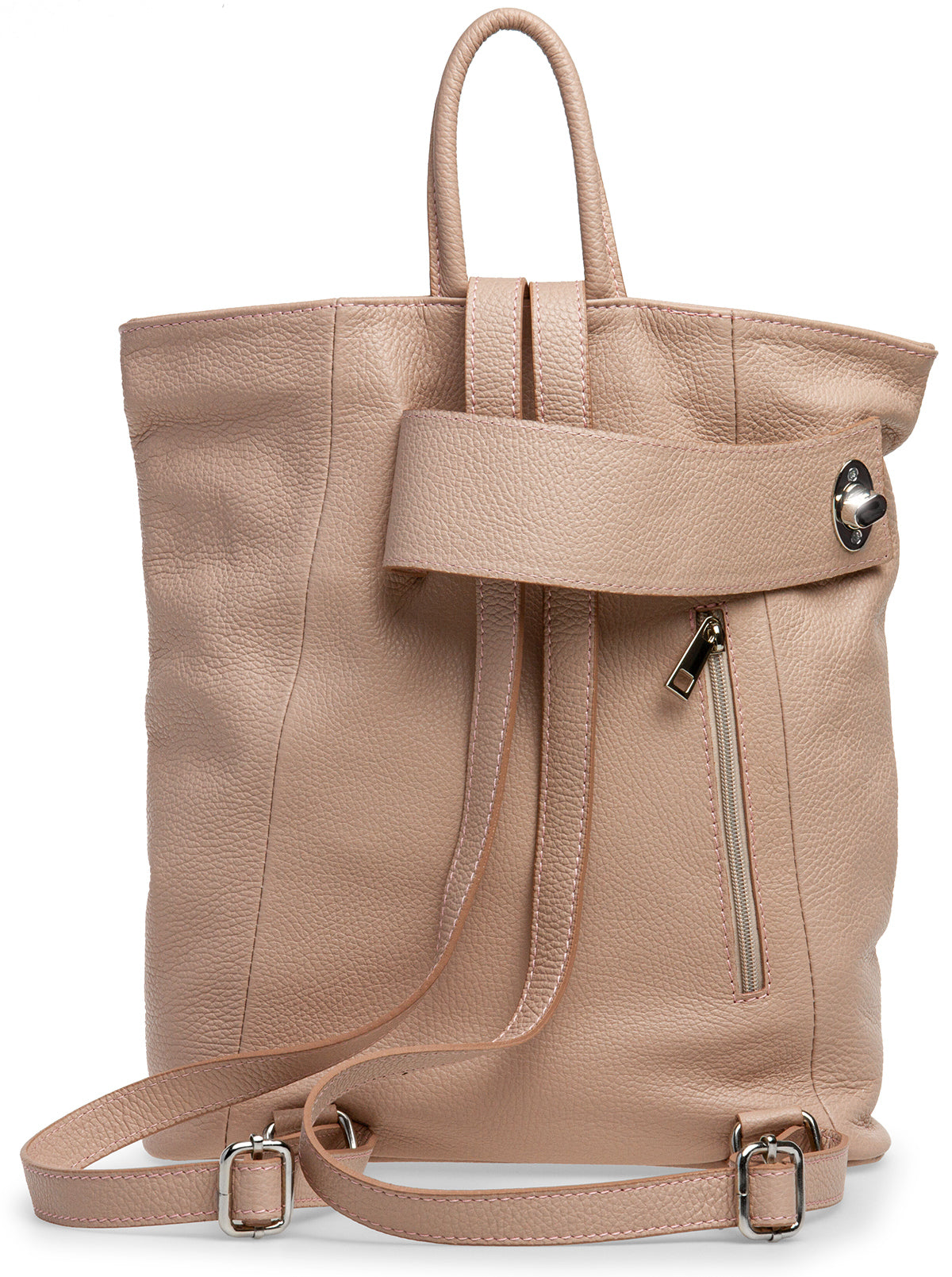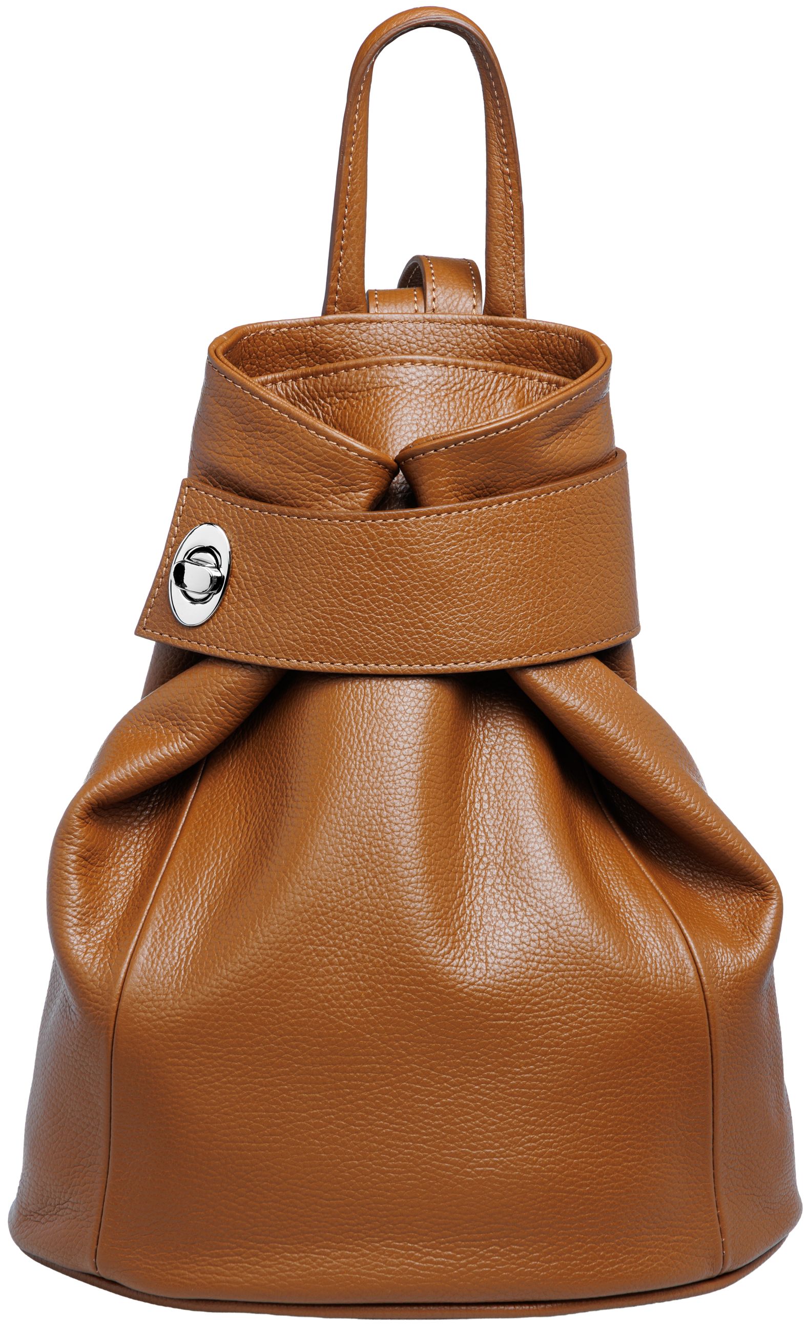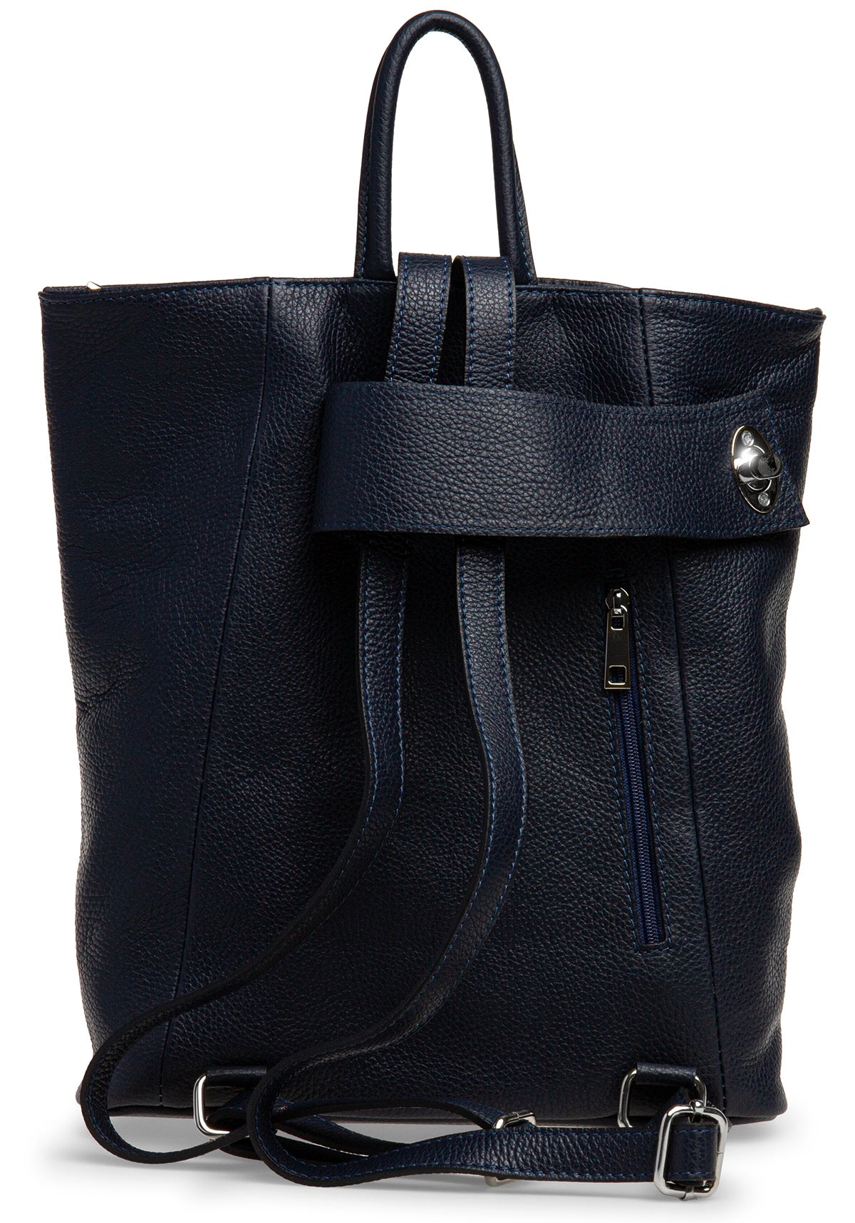 Formschöner, sportlich eleganter Damen Rucksack aus robustem italienischem Rindsleder. Form und Funktion bilden bei diesem hochwertigen Lederrucksack eine ideale Symbiose. Das besondere Design mit der breiten Lederschnalle macht den Daypack zu etwas ganz Besonderem. Der zusätzliche Reißverschluss des geräumigen Hauptfaches sorgt für die nötige Sicherheit. Außen befindet sich ein praktisches Reißverschlussfach für Dinge die man schnell und öfter braucht. Das Hauptfach besitzt im Innern 3 Seitenfächer, eines davon ebenfalls mit Reißverschluss schließbar. Die Schultergurte sind längenverstellbar und lassen sich somit optimal an Ihre Bedürfnisse anpassen. Insgesamt eine sehr gut durchdachte, außergewöhnliche Tasche an der kein Teil zu viel und kein Teil zu wenig dran ist. Das Obermaterial besteht aus regen- und kratzunempfindlichem, leicht genarbtem Rindsleder. Maße der Großen Größe: BxHxT ca. 29x35x13 cm. Material: Rindsleder. Caspar Fashion - Made in Italy.