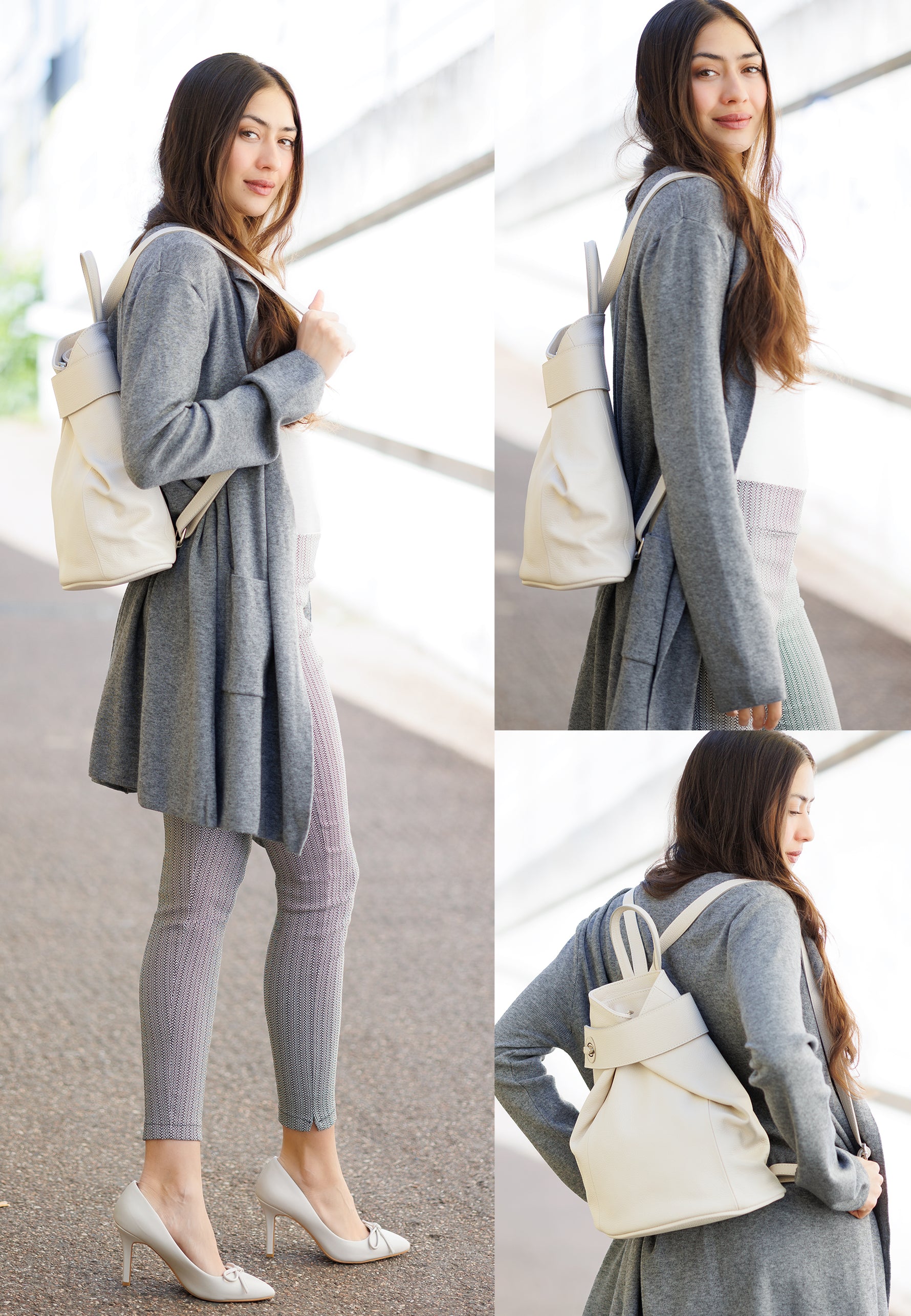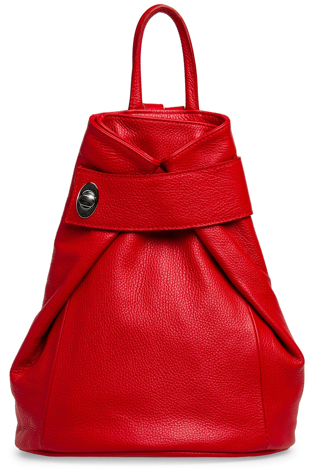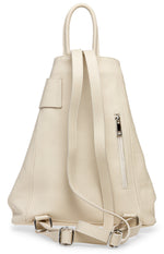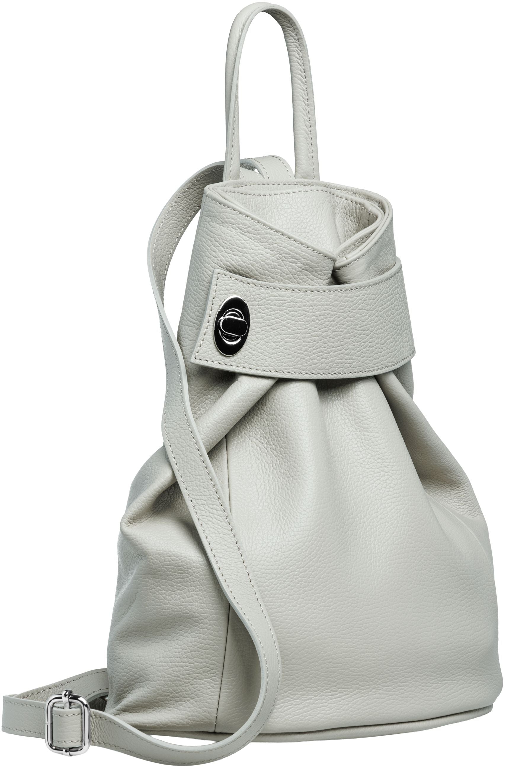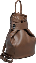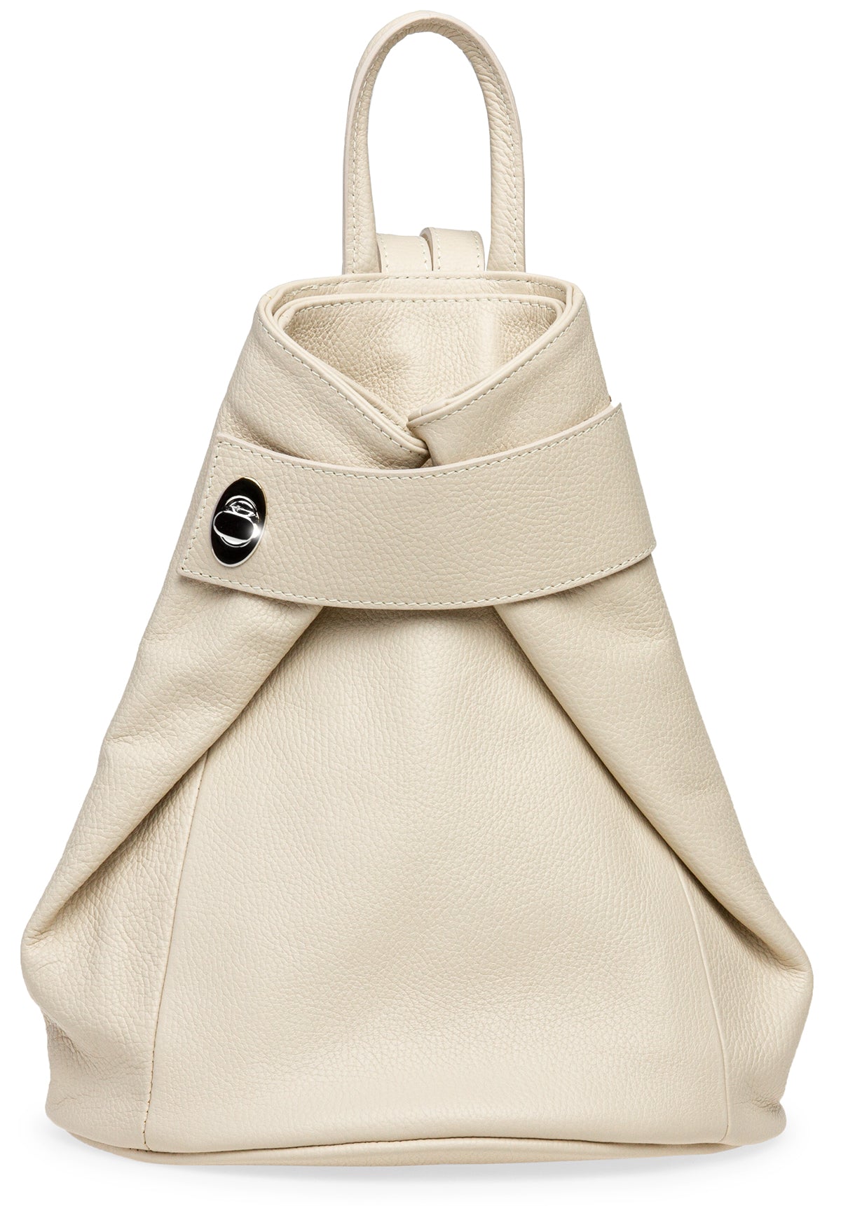 Formschöner, sportlich eleganter Damen Rucksack aus robustem italienischem Rindsleder. Form und Funktion bilden bei diesem hochwertigen Lederrucksack eine ideale Symbiose. Das besondere Design mit der breiten Lederschnalle macht den Daypack zu etwas ganz Besonderem. Der zusätzliche Reißverschluss des geräumigen Hauptfaches sorgt für die nötige Sicherheit. Außen befindet sich ein praktisches Reißverschlussfach für Dinge die man schnell und öfter braucht. Das Hauptfach besitzt im Innern 3 Seitenfächer, eines davon ebenfalls mit Reißverschluss schließbar. Die Schultergurte sind längenverstellbar und lassen sich somit optimal an Ihre Bedürfnisse anpassen. Insgesamt eine sehr gut durchdachte, außergewöhnliche Tasche an der kein Teil zu viel und kein Teil zu wenig dran ist. Das Obermaterial besteht aus regen- und kratzunempfindlichem, leicht genarbtem Rindsleder. Maße der Großen Größe: BxHxT ca. 29x35x13 cm. Material: Rindsleder. Caspar Fashion - Made in Italy.