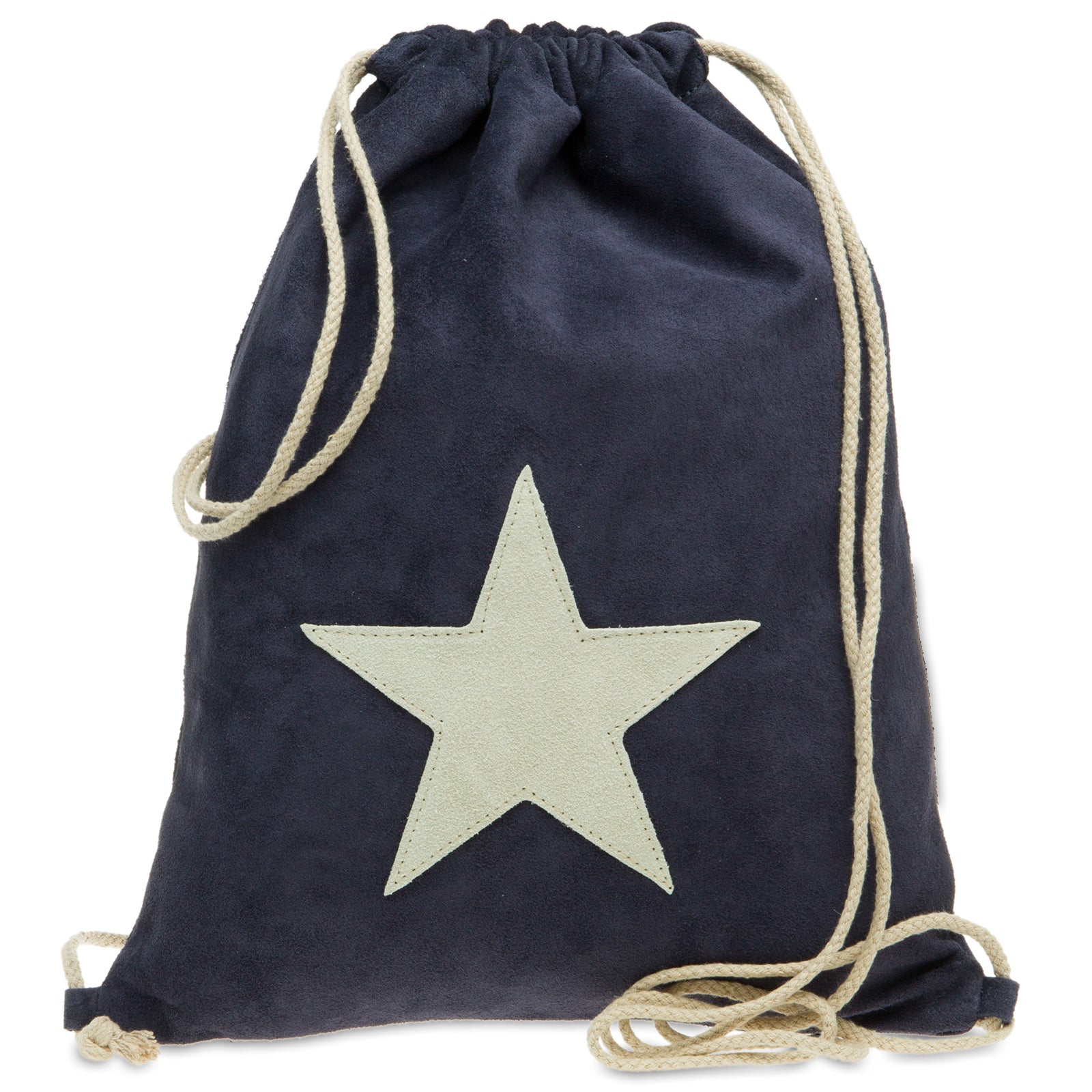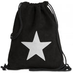 Klassischer Turnbeutel mit Stern in hochwertiger Wildleder Ausführung. Für alle die das Besondere lieben....ein hochwertiger Turnbeutel, perfekt als Rucksack nutzbar, mit praktischem Kordelzug Mechanismus. Der Beutel ist leicht und platzsparend zusammenzurollen und bietet neben einem hochwertigen Innenfutter mit kleinem Sicherheitsfach einen optimalen Tragekomfort. Das angesagte Design mit dem aufgenähten Leder-Stern und die Verwendung von natürlichen Materialien (Leder, Textil) sind weitere Pluspunkte dieses stylischen MUST-HAVE's, das in dieser Saison nicht in Ihrer Garderobe fehlen darf! Die Passform kann durch einfaches Kürzen der Kordel perfekt an Ihren Körper angepasst werden und ist daher auch für Kinder ab ca. 8 Jahren geeignet! Maße: Breite ca. 33 cm, Höhe ca. 41 cm. Außenmaterial: italienisches Wildleder. Innenmaterial: Textil. CASPAR Fashion Collection. MADE IN ITALY.