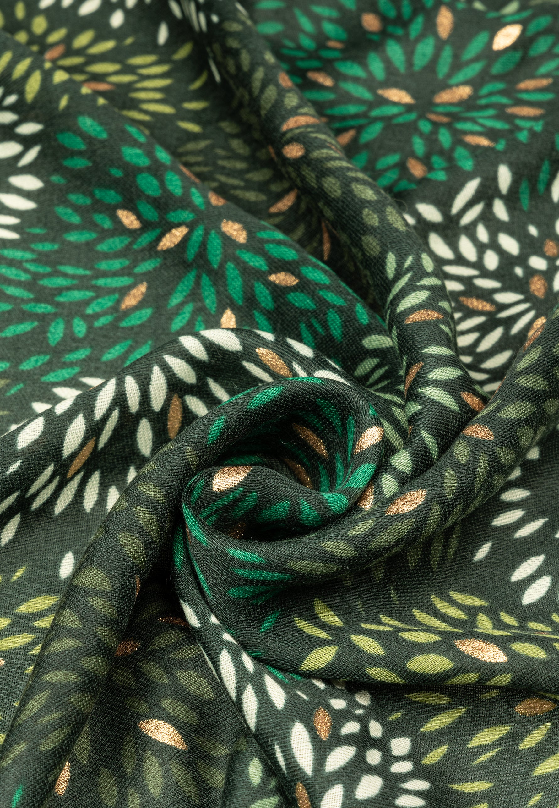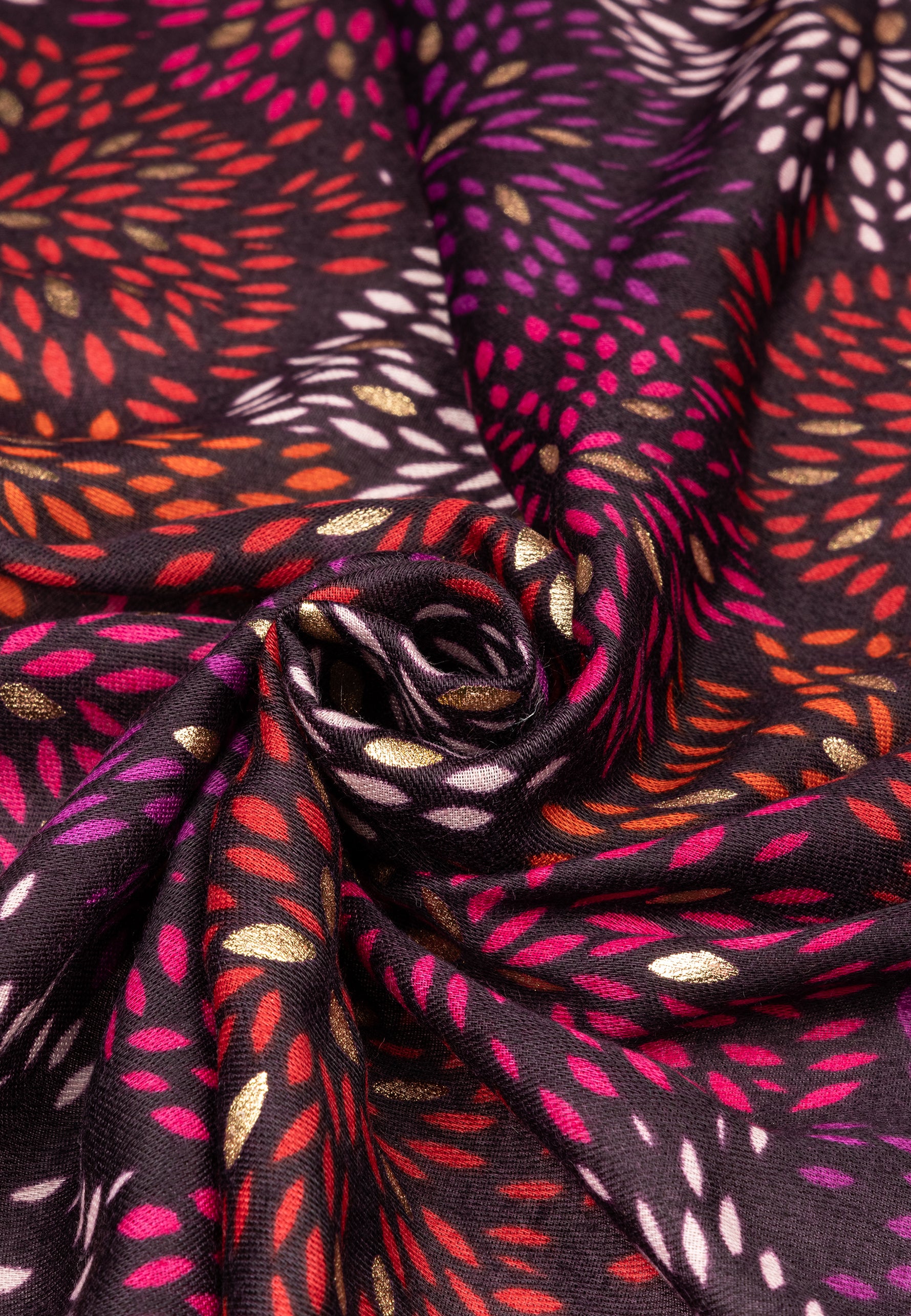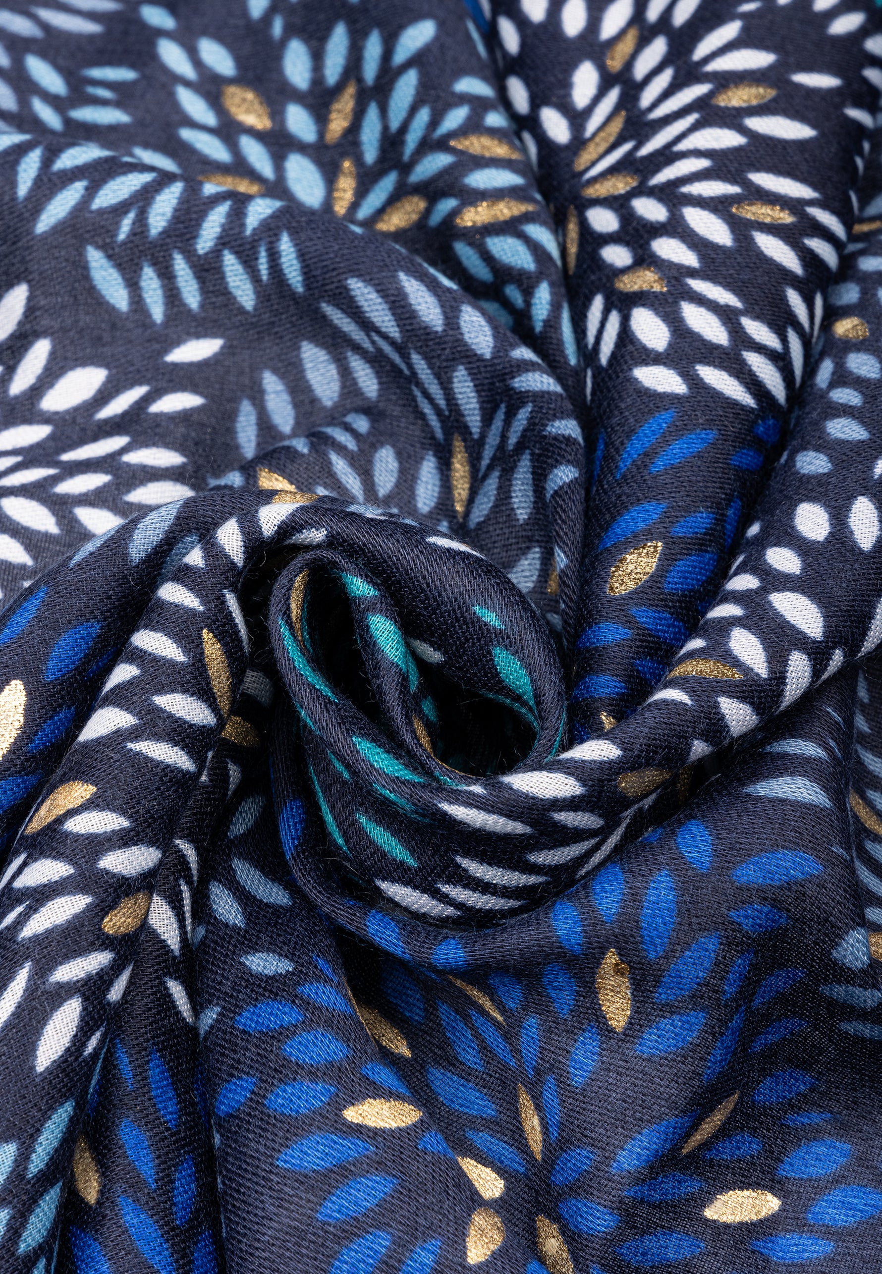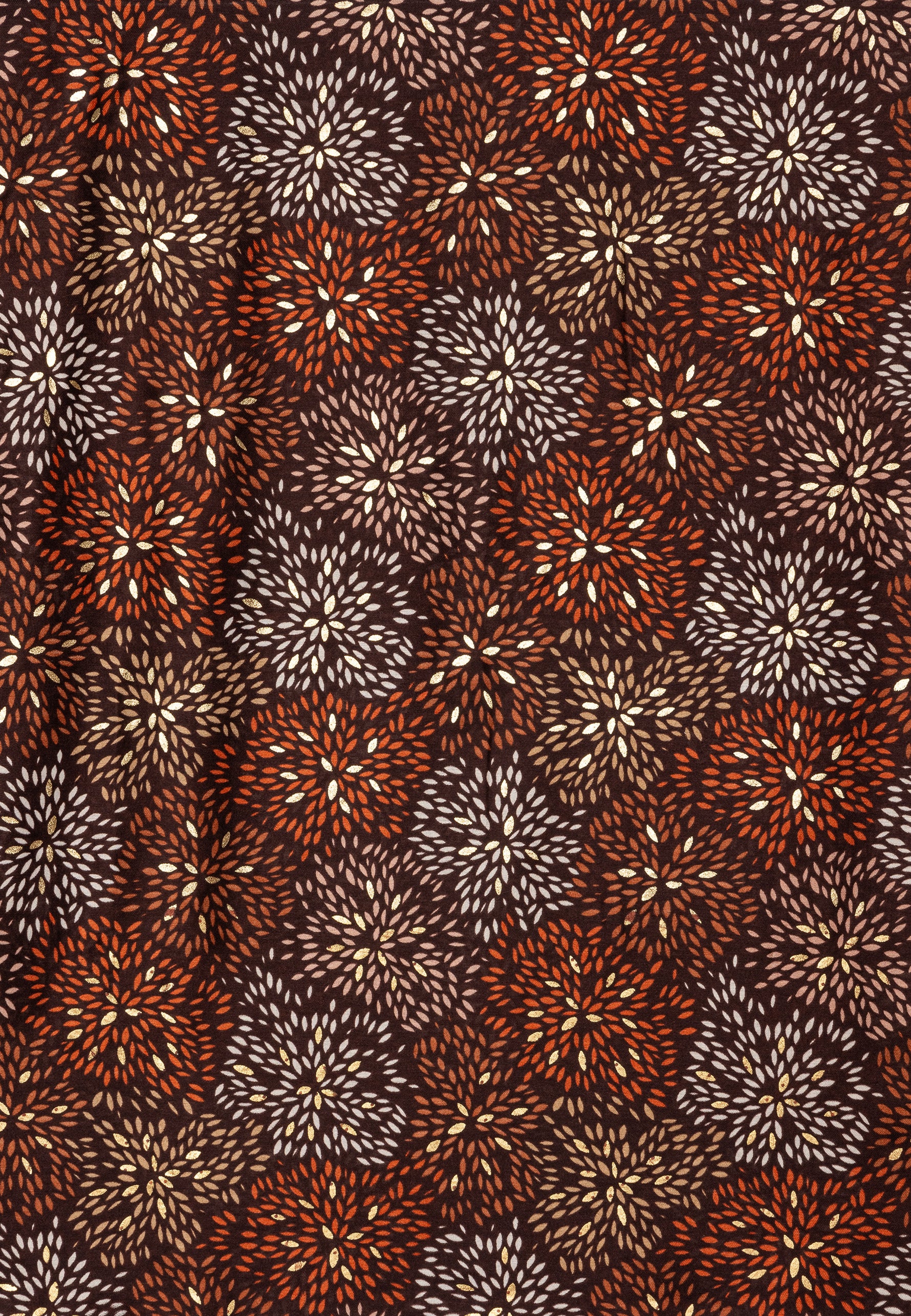 Stylischer Damen Schal mit ausgefallenem Blumenmuster Print und gold glänzenden Akzenten. Durch das softe und gut wärmende Material ist dieser Schal sehr angenehm zu tragen. Er kann aufgrund seiner Größe auch kann als Cape, Poncho, Umhang oder Stola getragen werden. Der einseitige Print mit den goldglänzenden Akzentadern macht diesen Schal zu etwas ganz besonderem. Maße: Länge ca. 180 cm, Breite ca. 85 cm. Caspar Fashion.