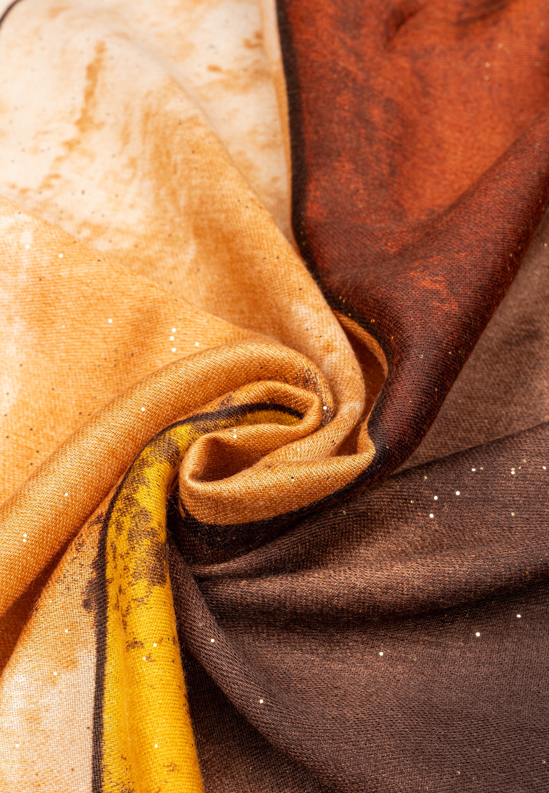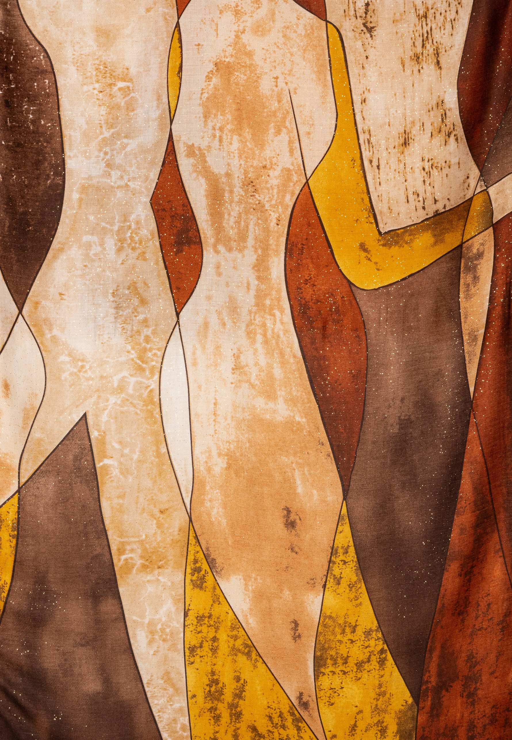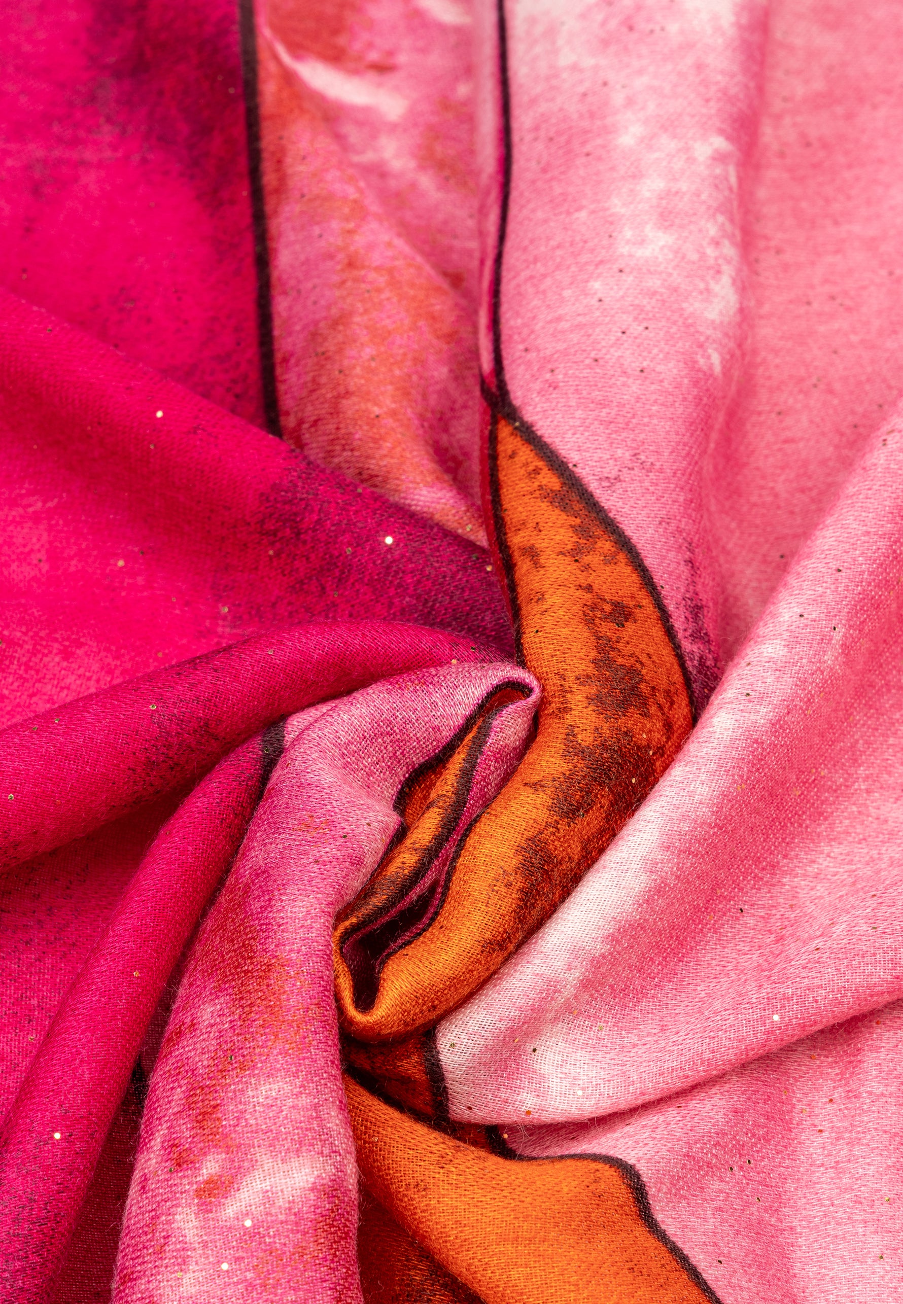 Stylischer Damen Schal mit ausgefallenem Aquarell Print und gold glänzenden Akzenten. Durch das softe und gut wärmende Material ist dieser Schal sehr angenehm zu tragen. Er kann aufgrund seiner Größe auch kann als Cape, Poncho, Umhang oder Stola getragen werden. Der einseitige Print mit den goldglänzenden Akzentadern macht diesen Schal zu etwas ganz besonderem. Maße: Länge ca. 180 cm, Breite ca. 85 cm. Caspar Fashion.