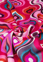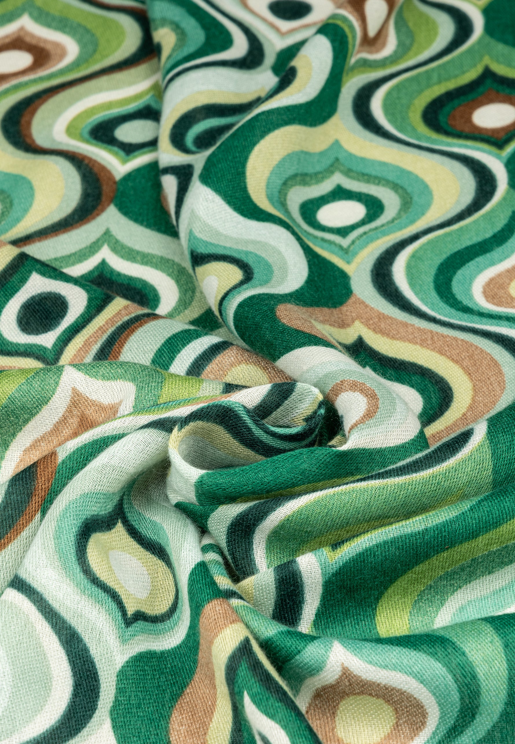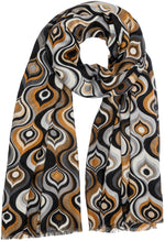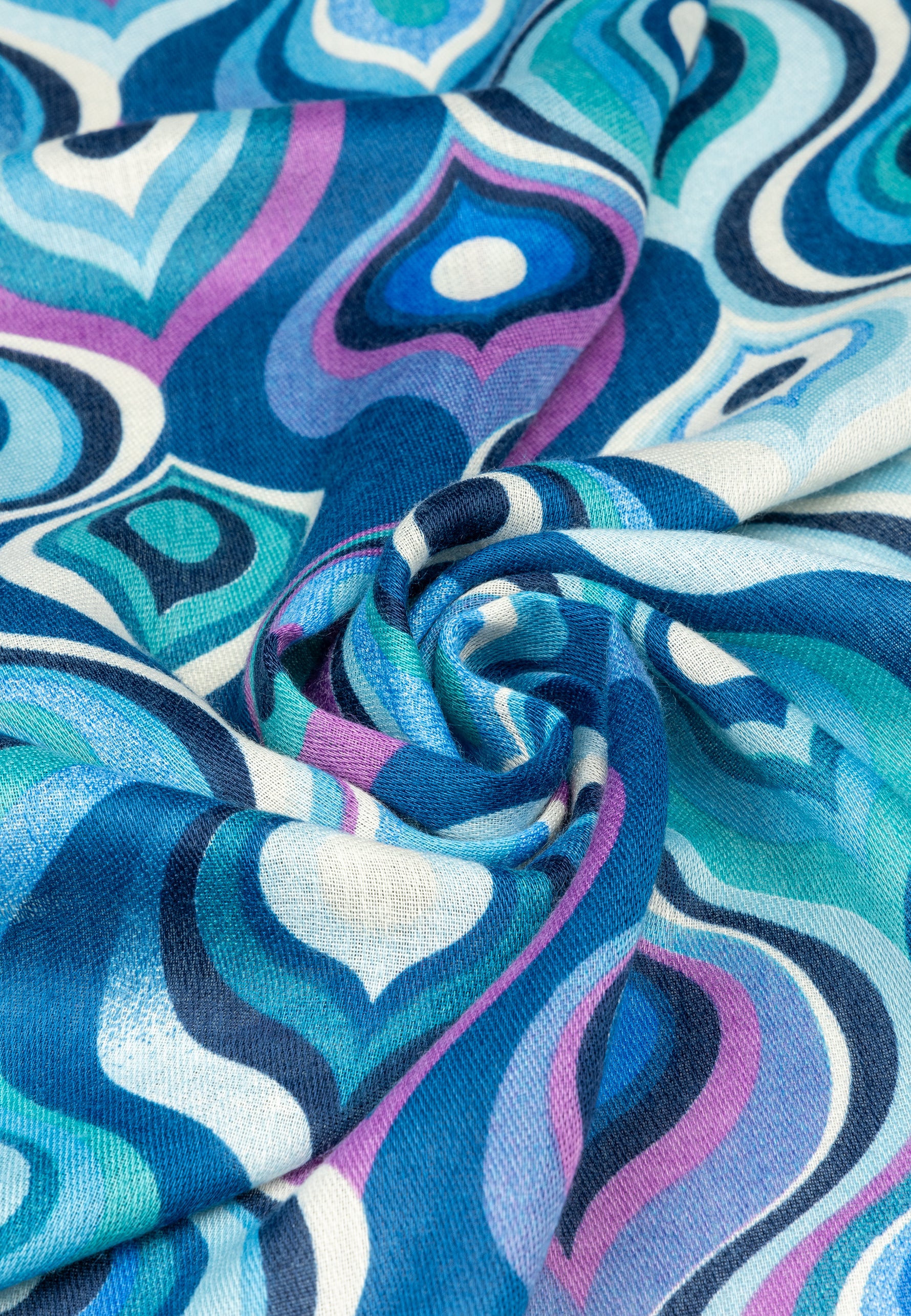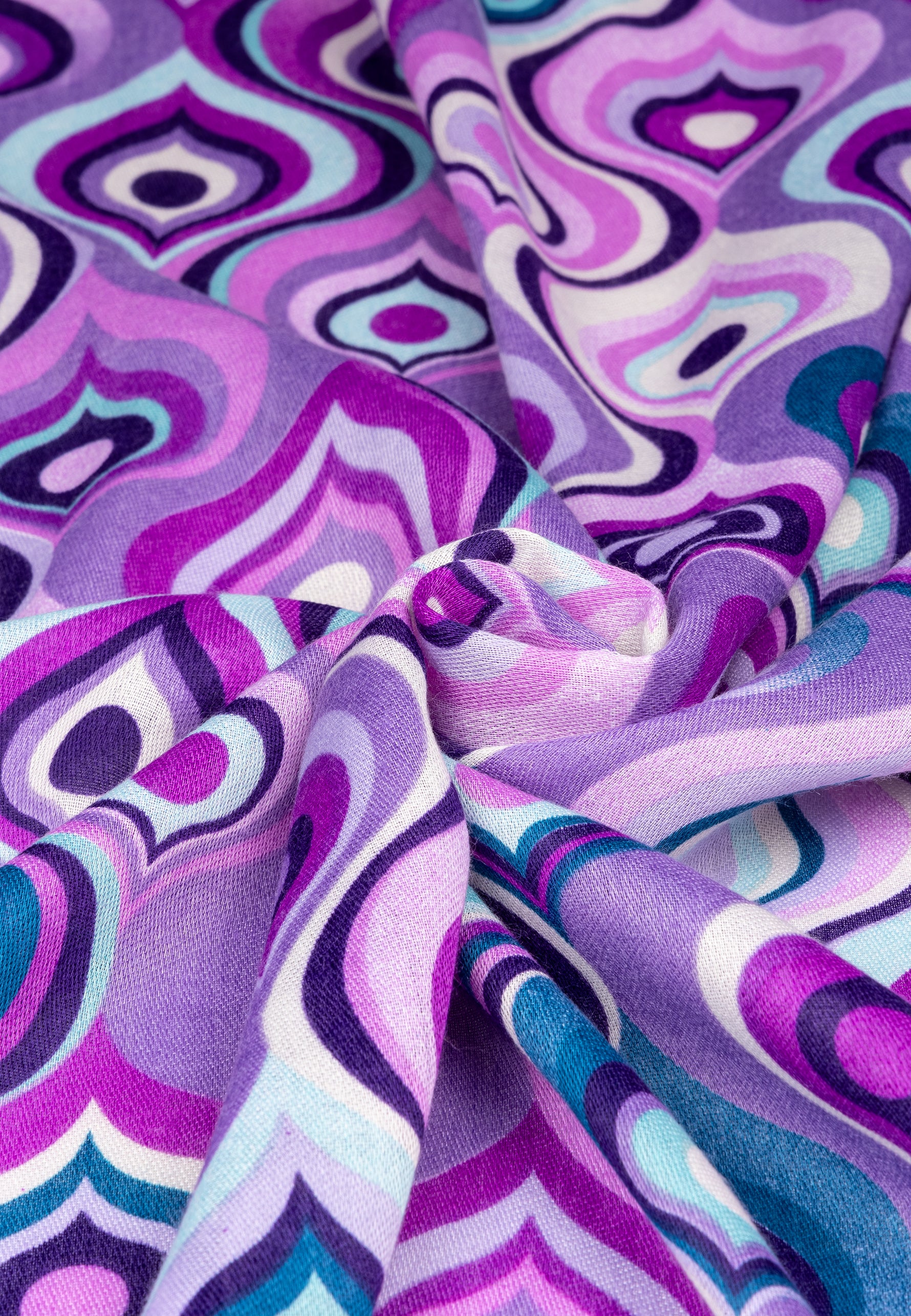 Stylischer Damen Schal mit ausgefallenem 60er Jahre Retro Print. Durch das softe und gut wärmende Material ist dieser Schal sehr angenehm zu tragen. Er kann aufgrund seiner Größe auch kann als Cape, Poncho, Umhang oder Stola getragen werden. Das einseitige Retro Muster macht diesen Schal zu etwas ganz Besonderem. Maße: Länge ca. 176 cm, Breite ca. 88 cm. Caspar Fashion.