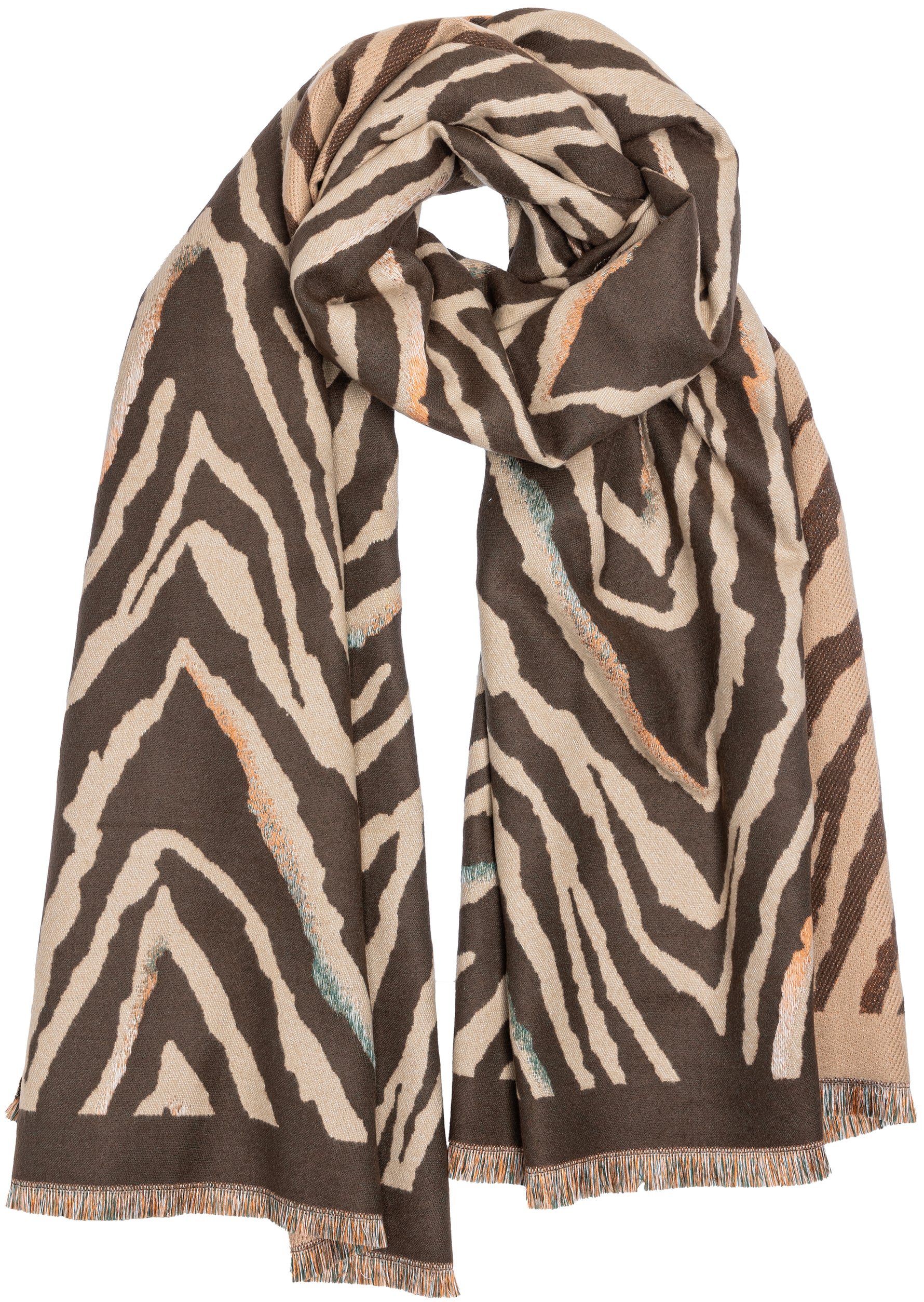 Super angenehmer, mitteldicker XXL Schal aus kuschelweichem, gut wärmendem Material in klassischen Farbkombinationen. Das Tuch ist ca. 200 cm lang und ca. 65 cm breit, ist bedruckt mit einem modischen Tiger Muster und passt somit perfekt zu den aktuellen Herbst-/ Winter Styles. Material: hochwertiges Kunstfaser-Mischgewebe, 100% Polyacryl. Pflegehinweis: Maschinenwäsche bei 30 Grad. Caspar Fashion.