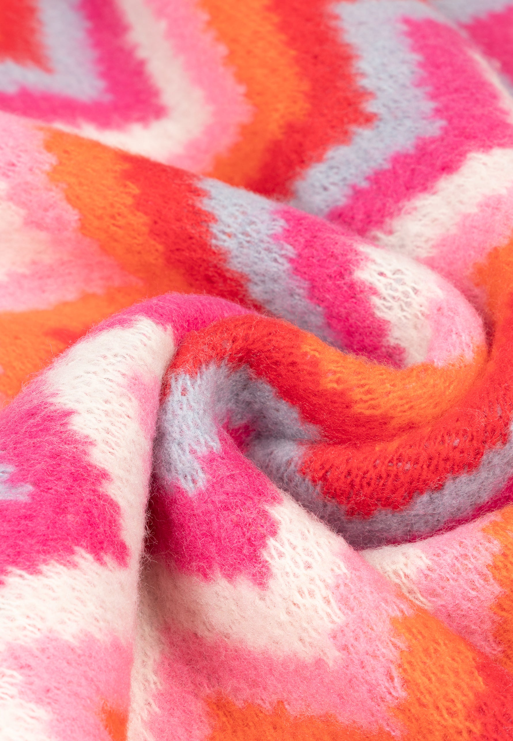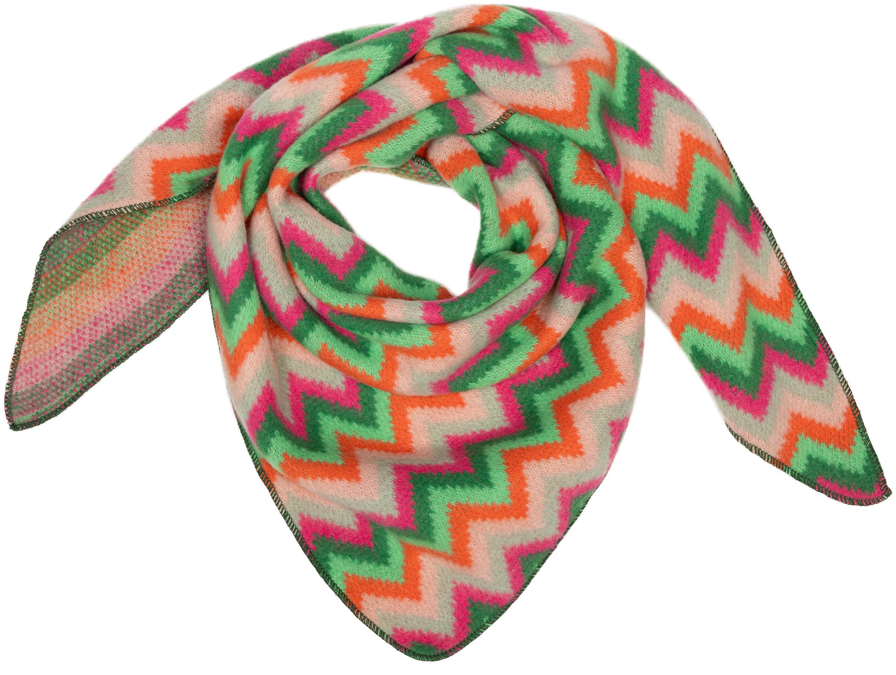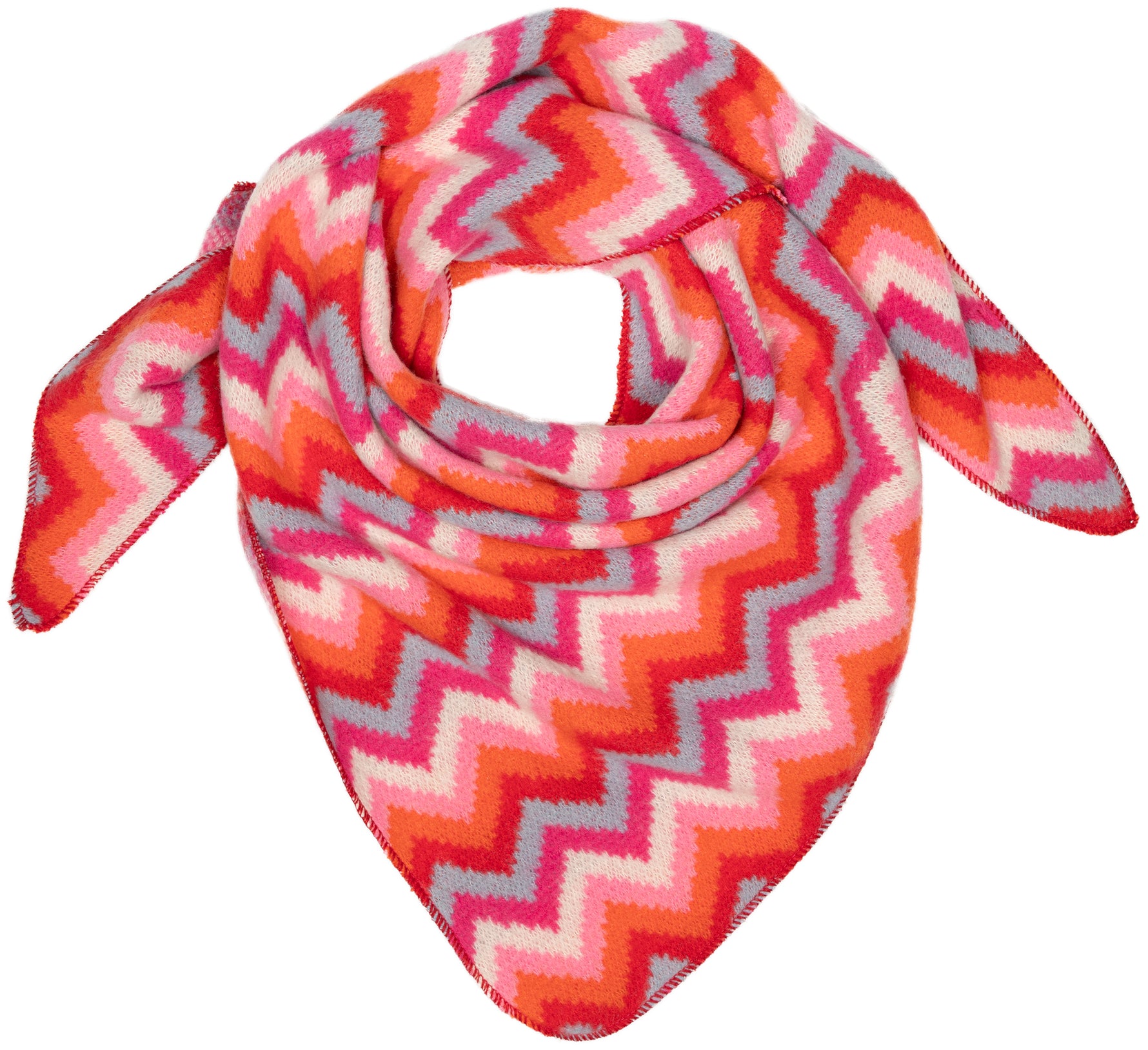 Das weiche Material fühlt sich angenehm auf der Haut an und sorgt für ein rundum komfortables Tragegefühl. Die lebendigen Farben und Muster machen den Schal zu einem echten Hingucker, der jedes Outfit bereichert. Ob als schickes Accessoire für deinen Alltagslook oder als zusätzlicher Wärmespender an kühleren Tagen – dieser Dreieckschal ist der ideale Begleiter für die Übergangszeit und die Wintertage.