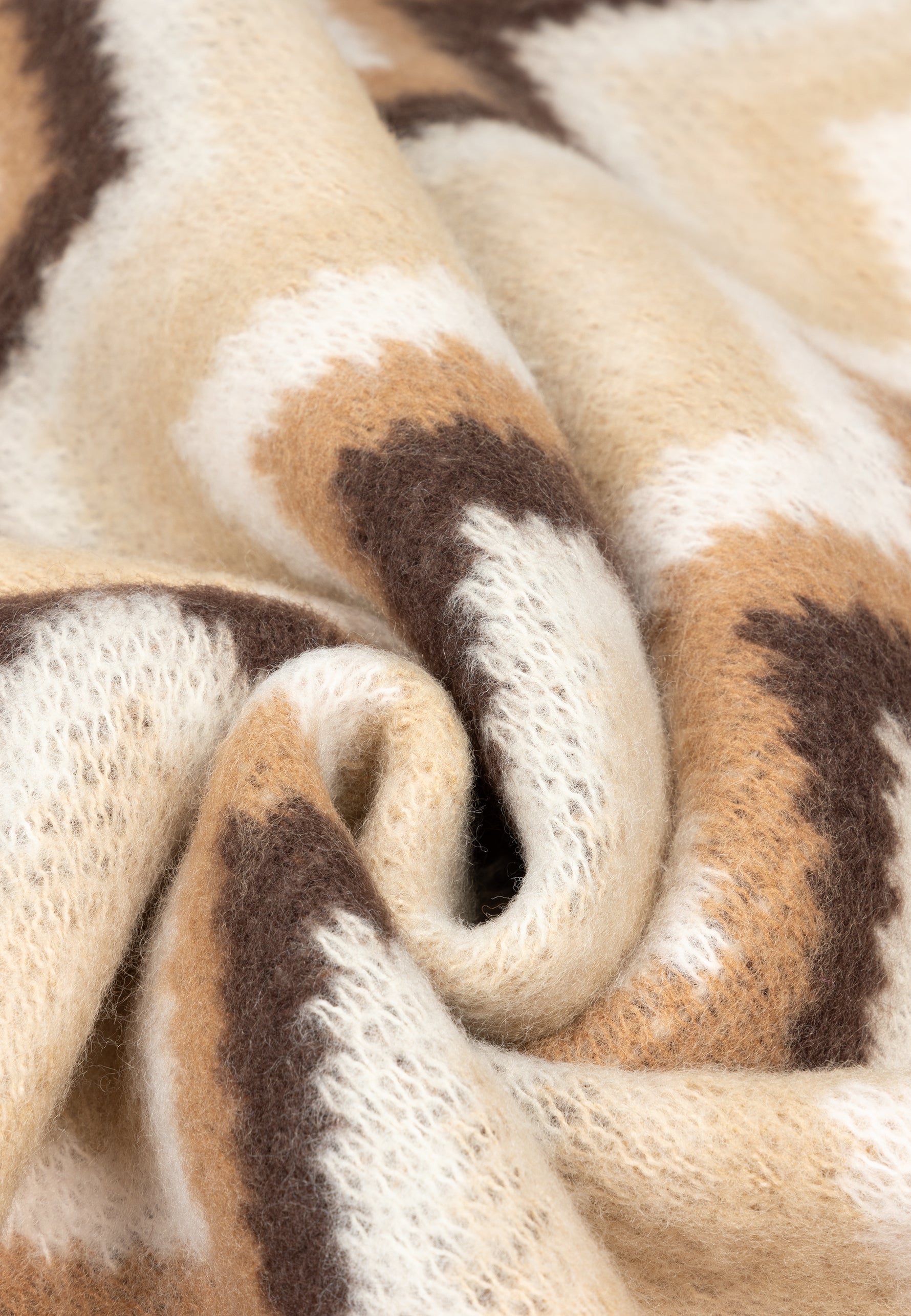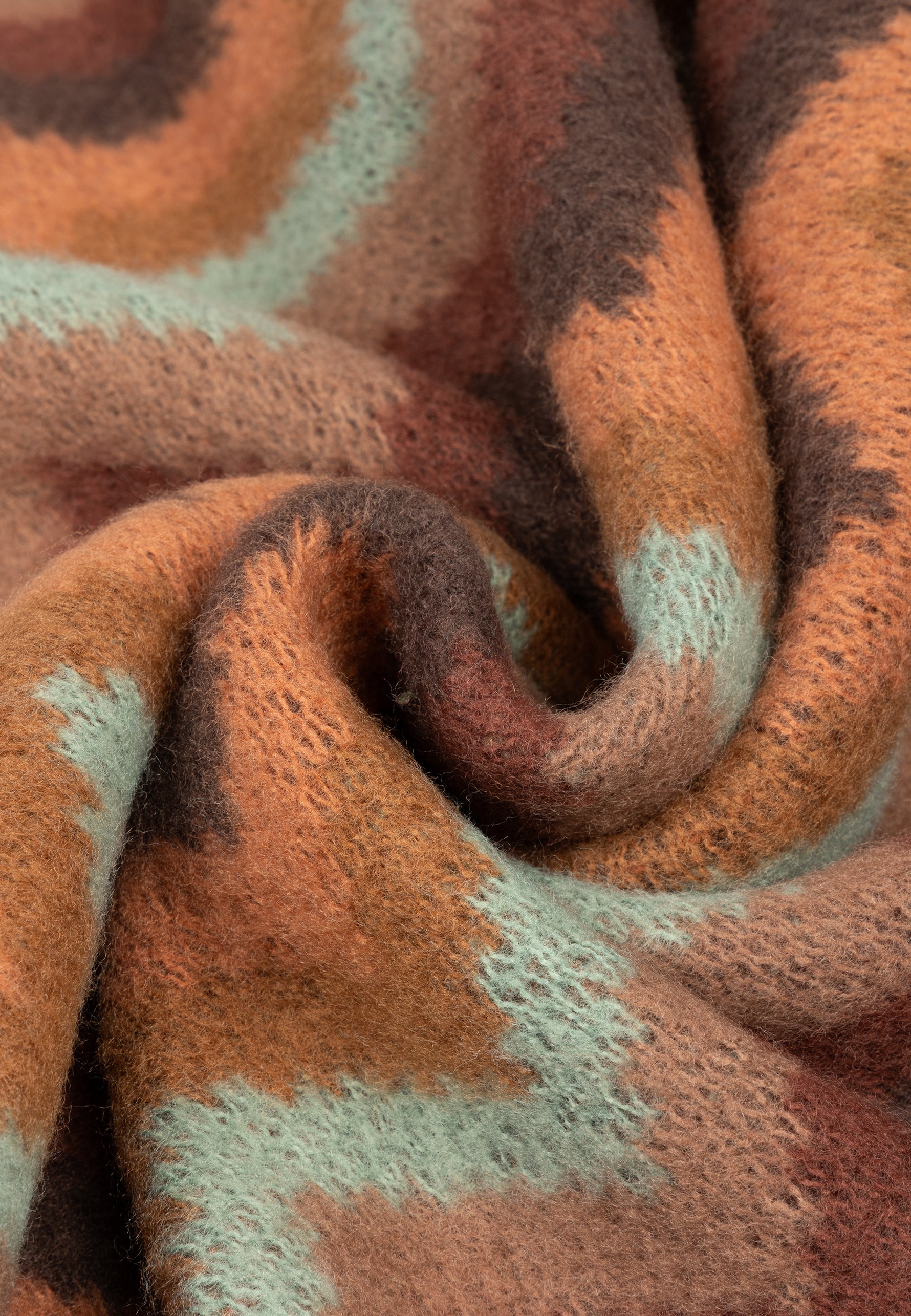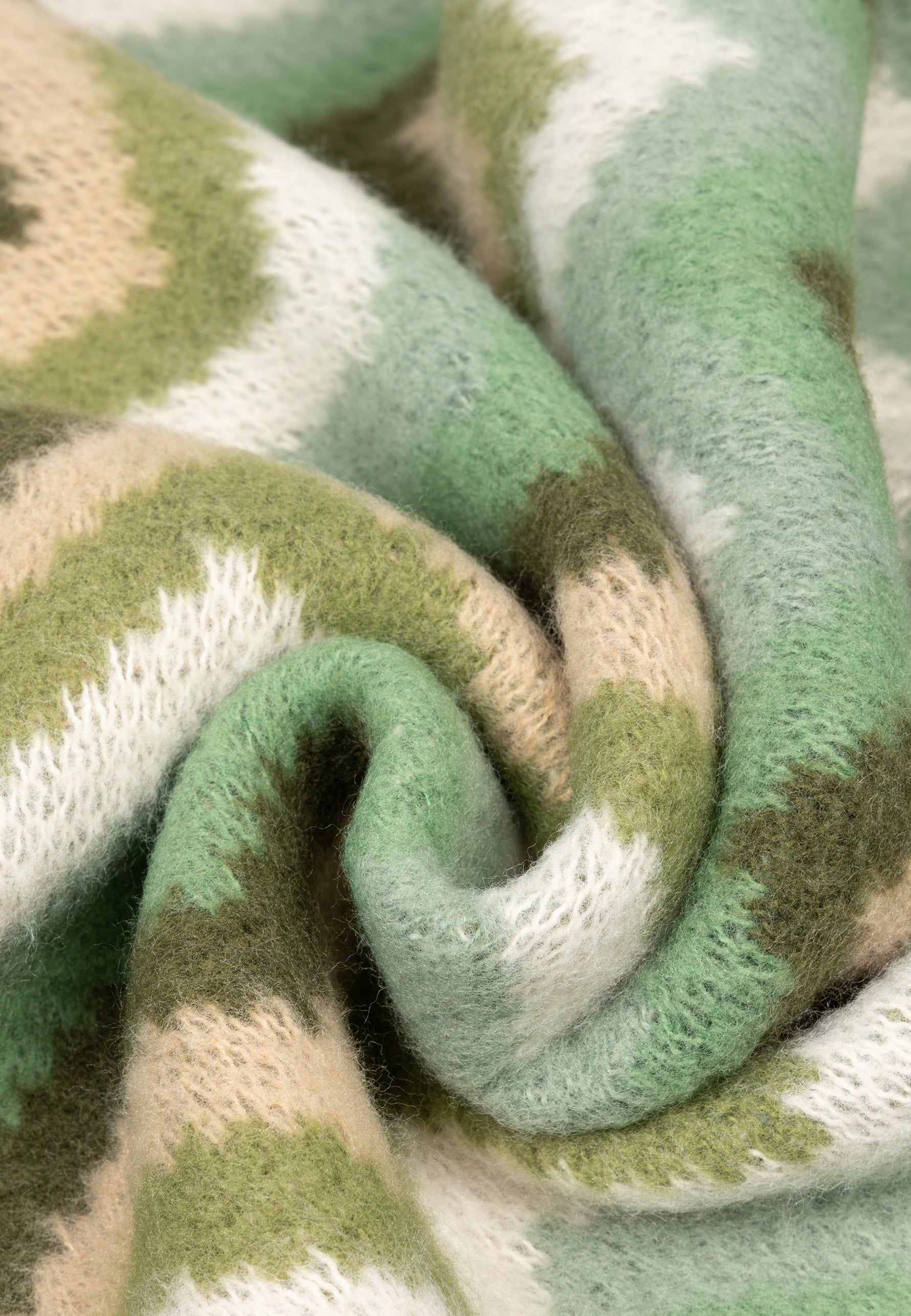 Das weiche Material fühlt sich angenehm auf der Haut an und sorgt für ein rundum komfortables Tragegefühl. Die lebendigen Farben und Muster machen den Schal zu einem echten Hingucker, der jedes Outfit bereichert. Ob als schickes Accessoire für deinen Alltagslook oder als zusätzlicher Wärmespender an kühleren Tagen – dieser Dreieckschal ist der ideale Begleiter für die Übergangszeit und die Wintertage.