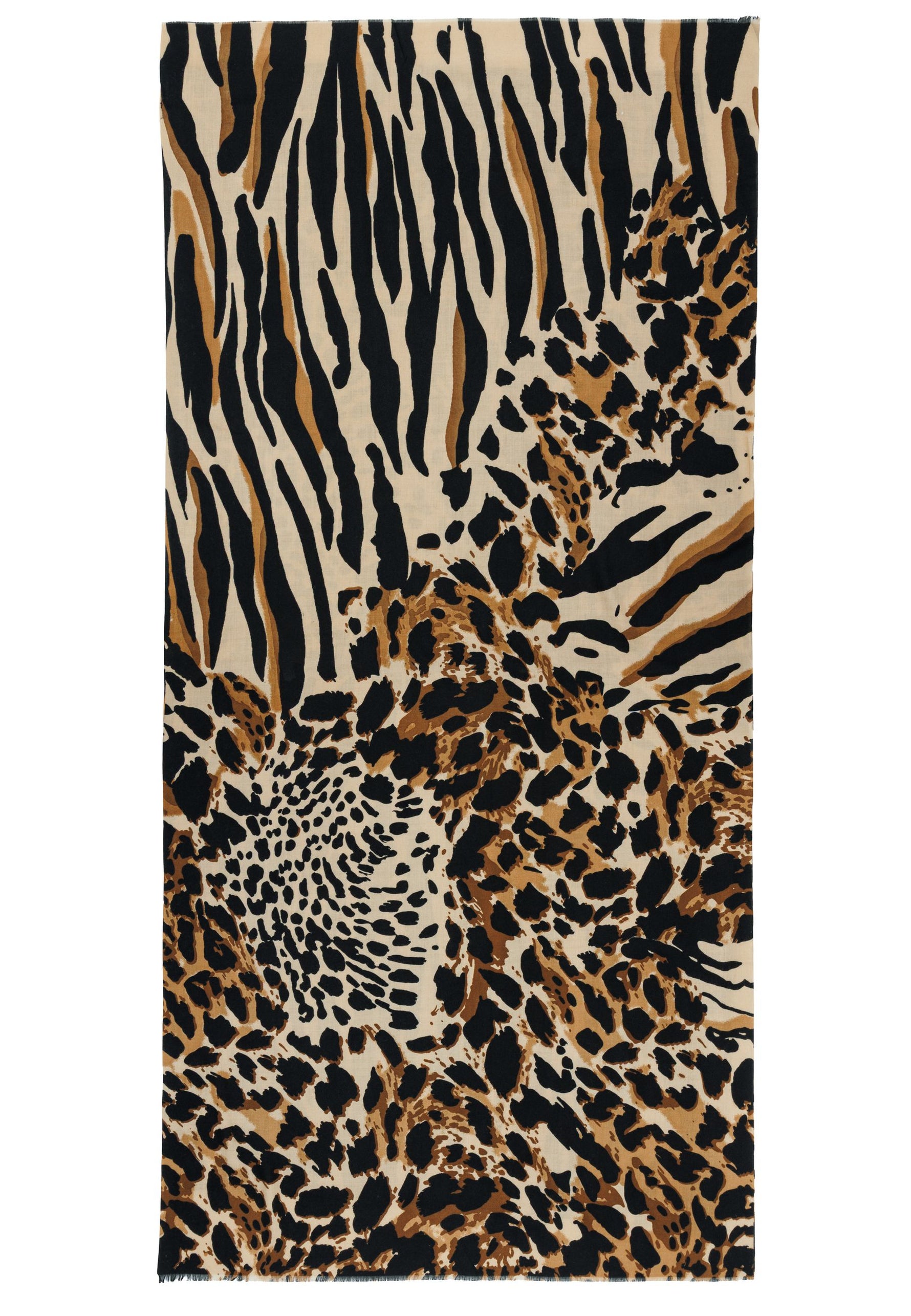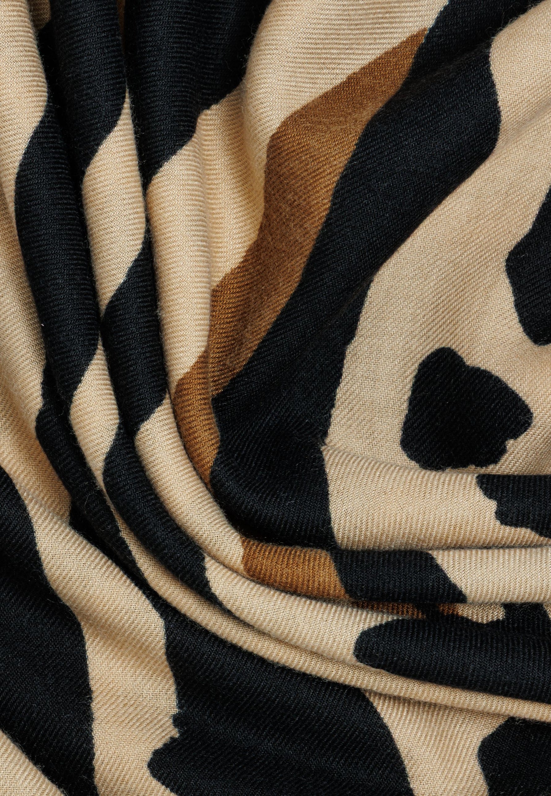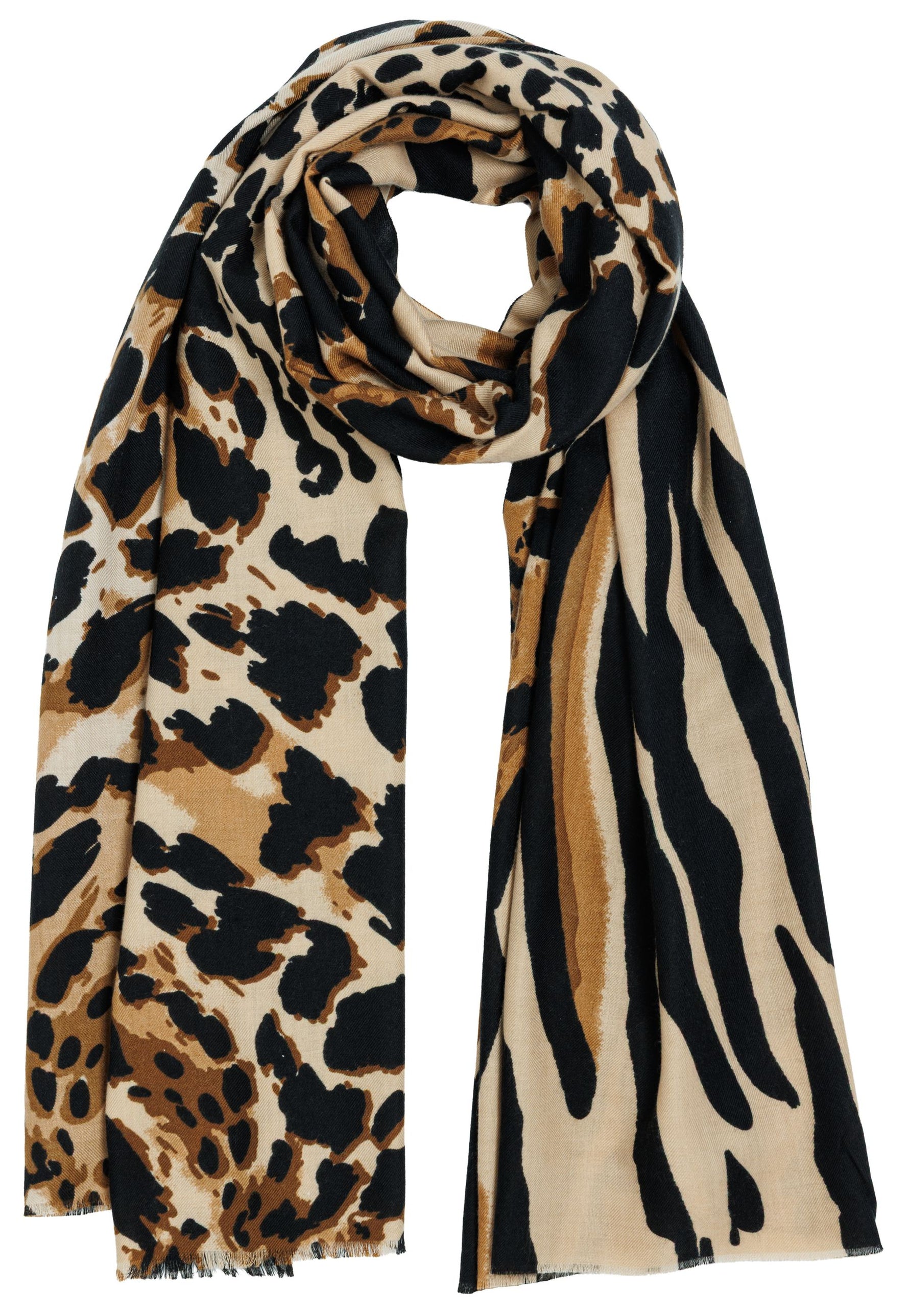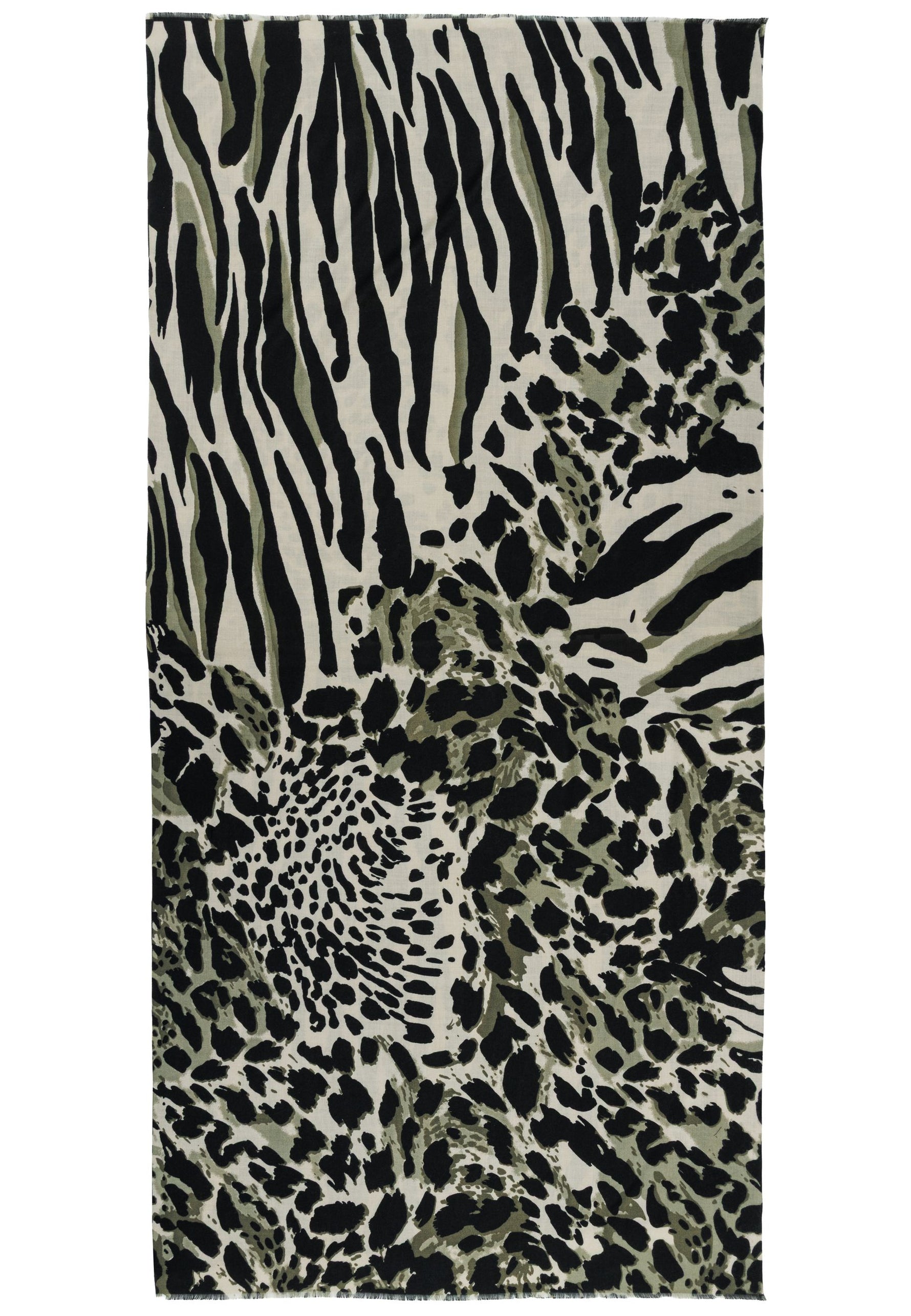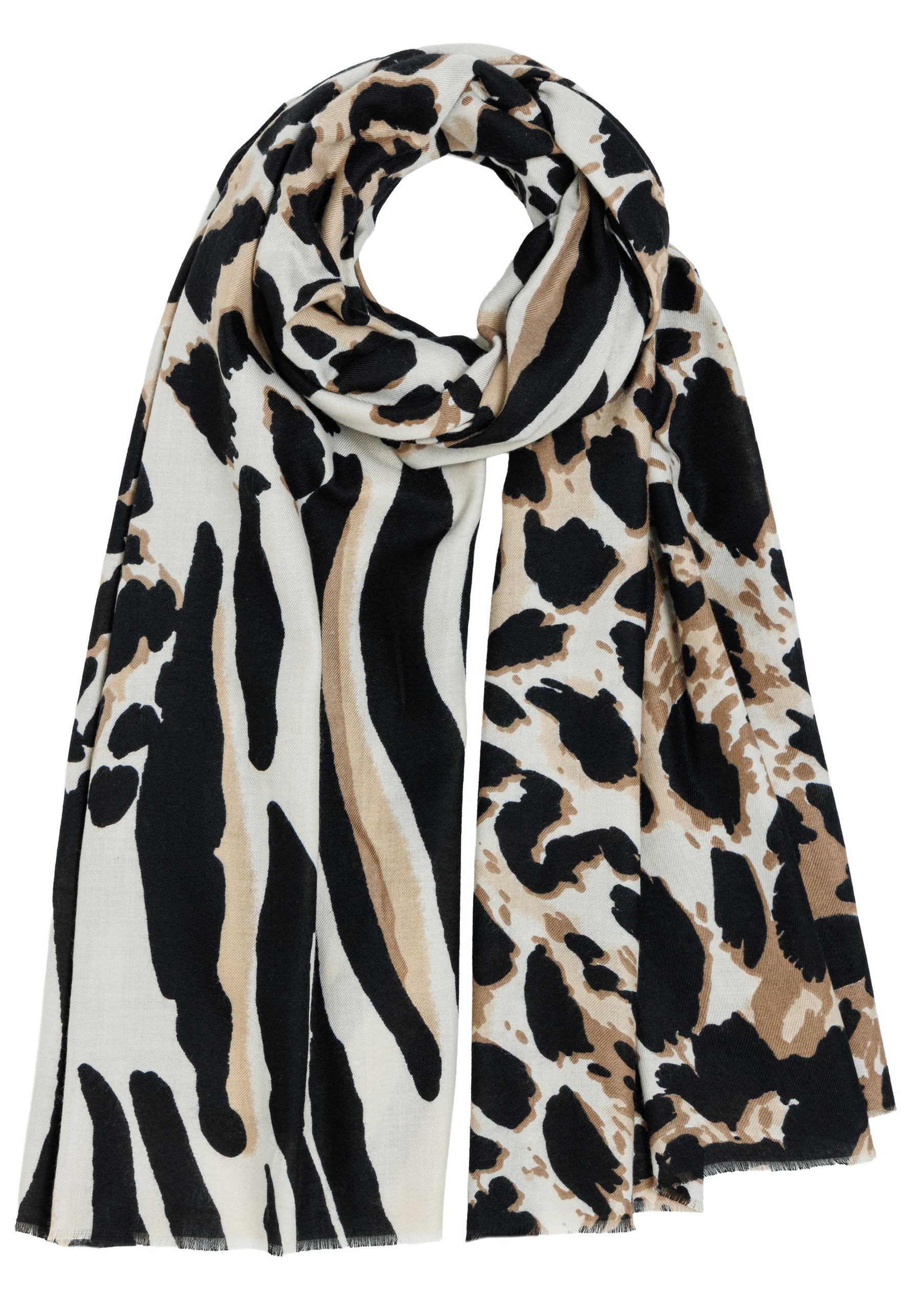 Das Material zeichnet sich durch eine weiche, leicht strukturierte Oberfläche aus, die ein besonders angenehmes Hautgefühl vermittelt. Der Schal ist beidseitig mit einem markanten Animal-Print versehen, der klassische und moderne Elemente stilvoll kombiniert. Dank seiner Größe lässt er sich variabel tragen - ob locker über die Schultern gelegt, mehrfach um den Hals geschlungen oder als wärmende Stola.