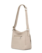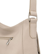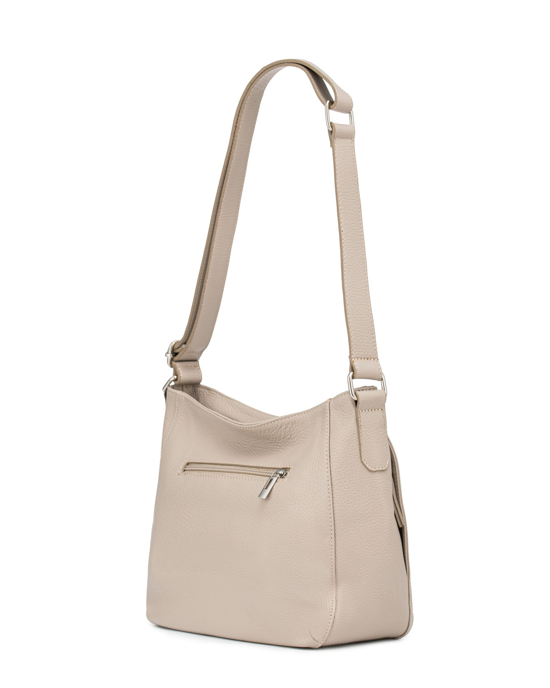 Die durchdachte Fächeraufteilung erleichtert eine klare Organisation: Das Hauptfach ist durch ein mittiges Reißverschlussfach unterteilt. Zusätzlich stehen ein Sicherheitsfach mit Reißverschluss sowie ein Steckfach für Schlüssel oder Kleinteile zur Verfügung. Außen bietet die Tasche zwei seitliche Reißverschlussfächer sowie ein klassisches Rückfach mit Zipper für schnellen Zugriff auf häufig benötigte Gegenstände.