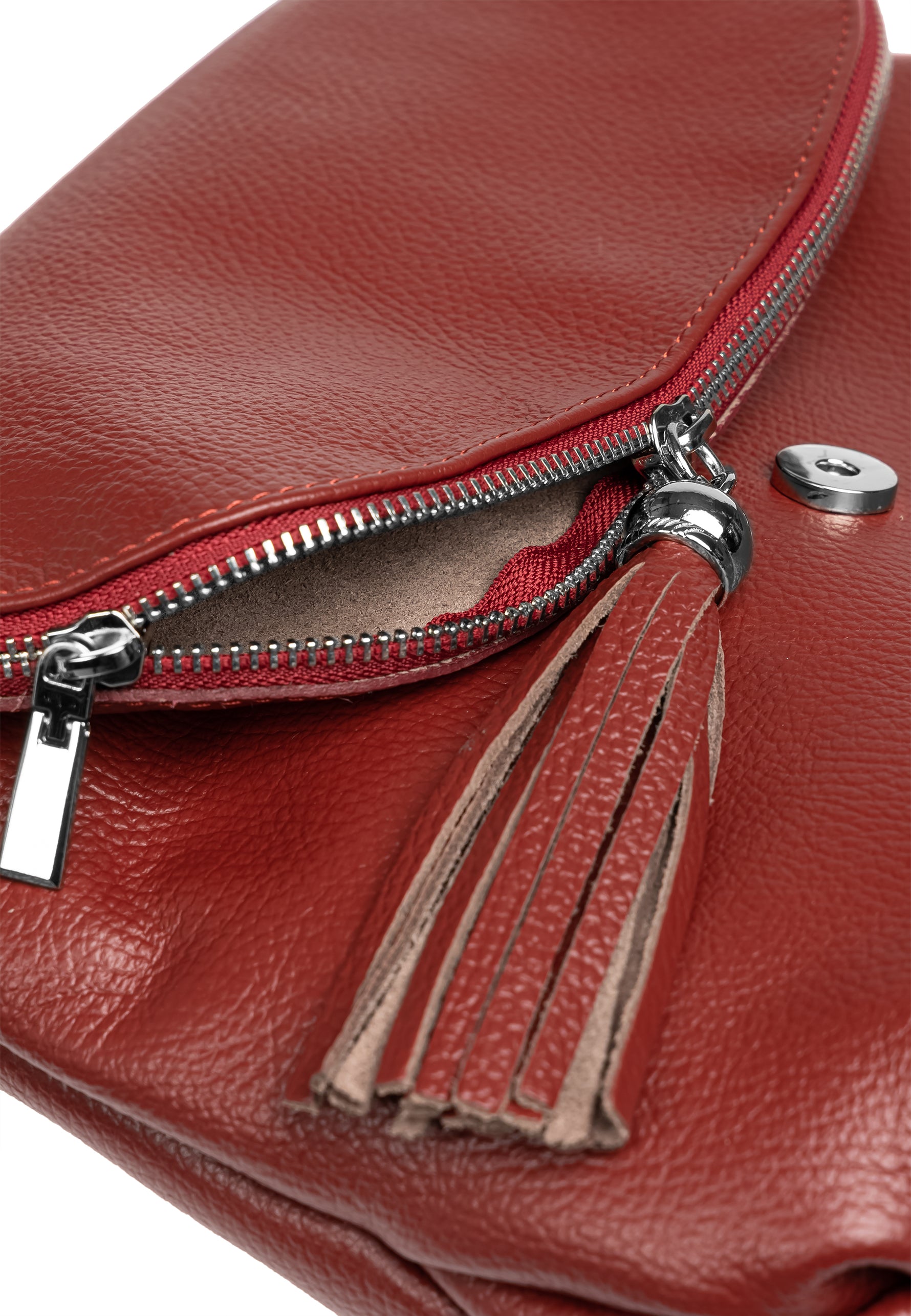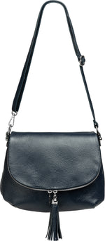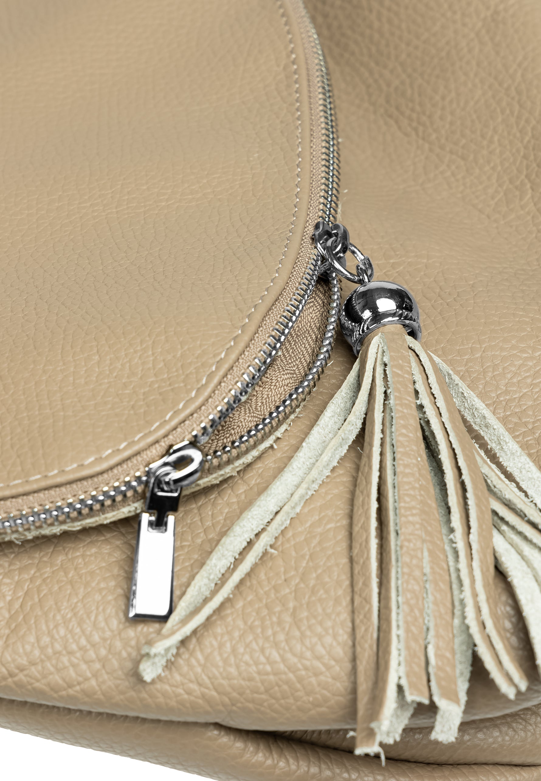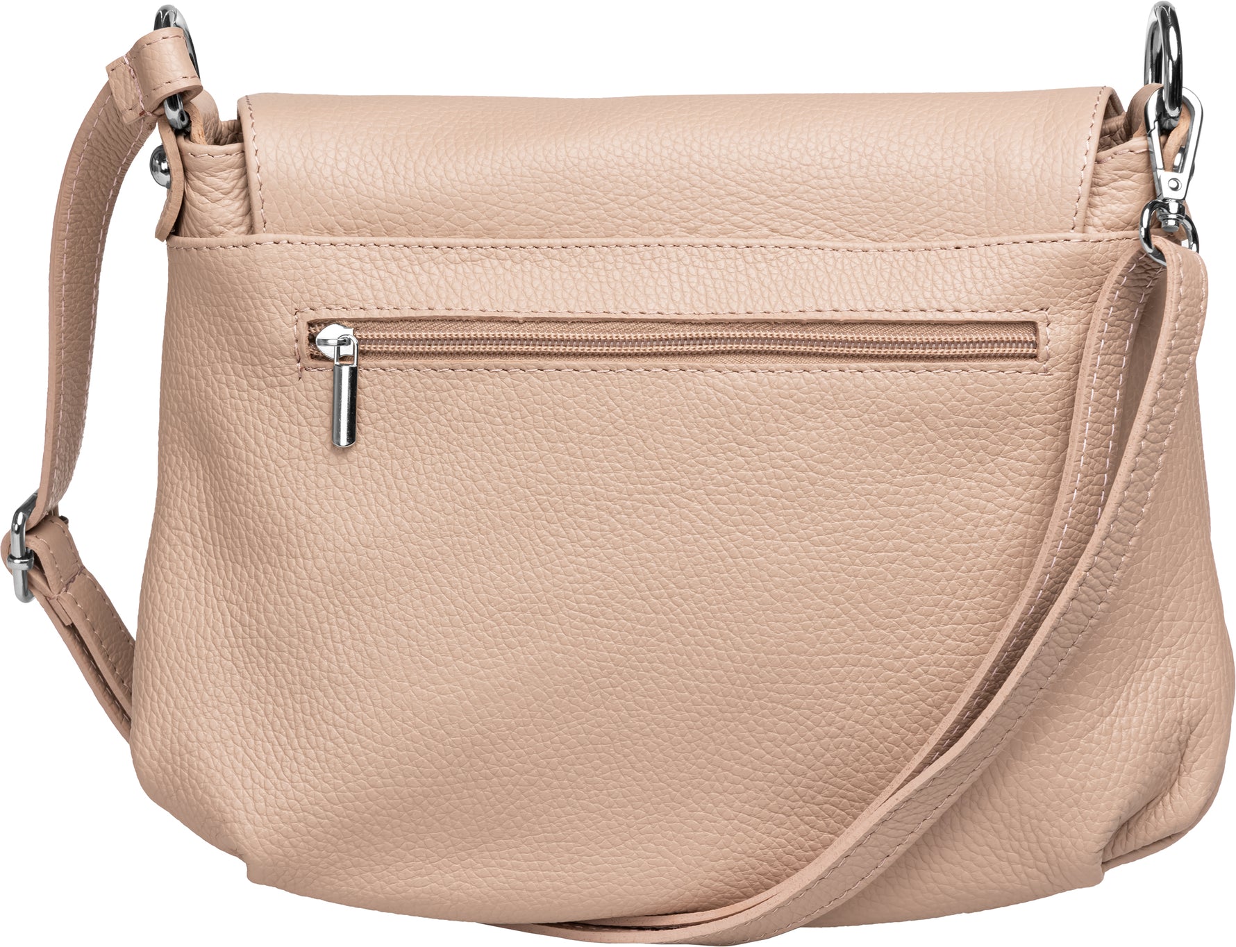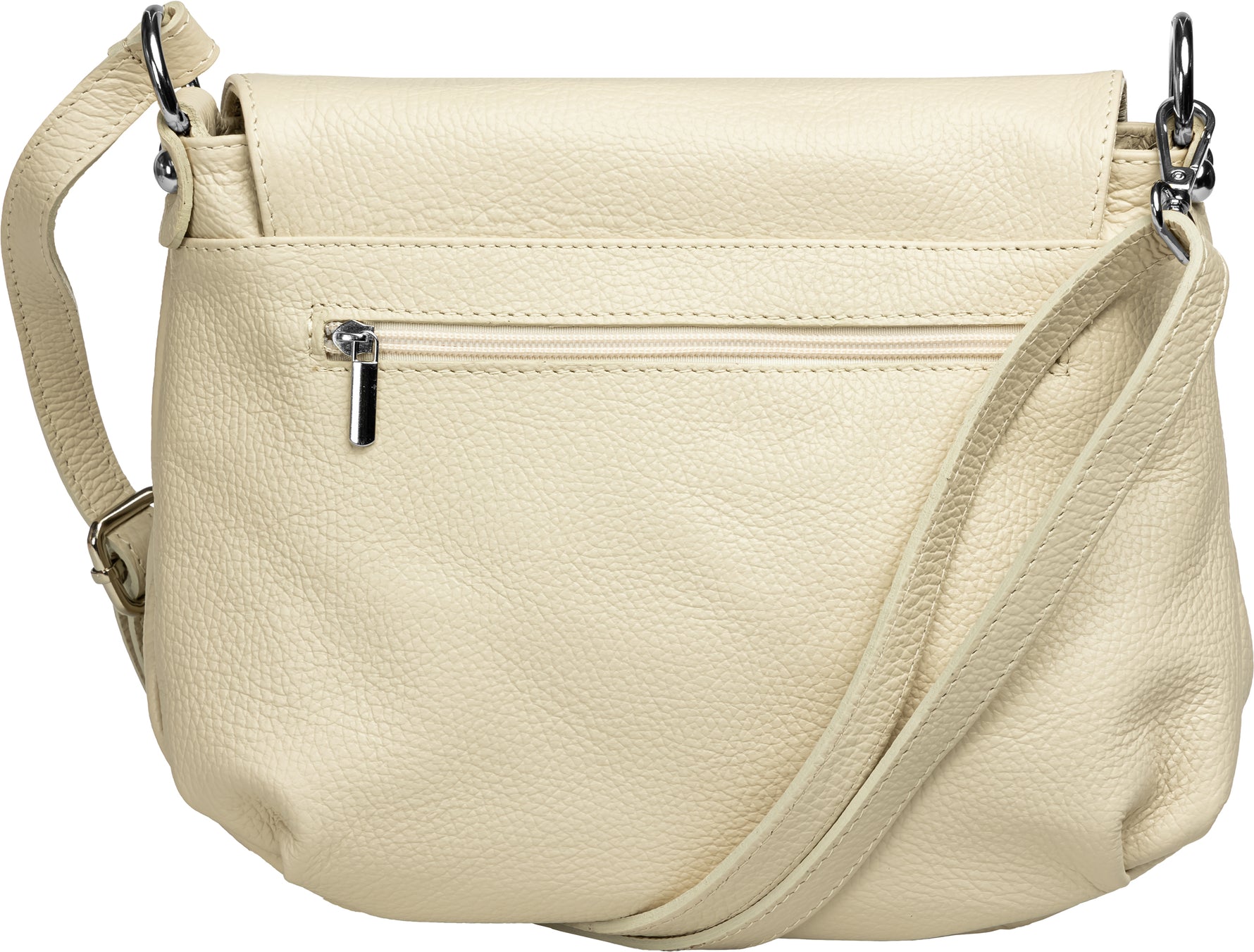 Unsere klassisch elegante Damen Umhängetasche überzeugt durch ihr zeitloses Design und die hochwertige Verarbeitung aus echtem italienischem Rindsleder. Die sorgfältig gestaltete Messenger Bag bietet nicht nur eine stilvolle Optik, sondern auch durchdachte Funktionalität für den Alltag. Im Inneren befindet sich ein großzügiges Hauptfach, das durch zwei kleine Seitenfächer ergänzt wird und mit einem sicheren Reißverschluss verschlossen werden kann. Zusätzlich ist der elegante Überschlag mit einem silberfarbenen Metallreißverschluss ausgestattet und kann ebenfalls als separates Fach genutzt werden. Auf der Rückseite der Tasche befindet sich ein weiteres Reißverschlussfach, das sich ideal für Wertsachen eignet. Die Größe der Tasche ist perfekt abgestimmt - kompakt, aber dennoch geräumig genug, um alle wichtigen Dinge des täglichen Lebens unterzubringen. Der verstellbare Schultergurt aus Leder sorgt für angenehmen Tragekomfort und ermöglicht sowohl das Tragen über der Schulter als auch als praktische Crossbody-Variante. Diese Tasche vereint italienische Handwerkskunst mit zeitloser Eleganz und ist ein stilvoller Begleiter für viele Gelegenheiten.
