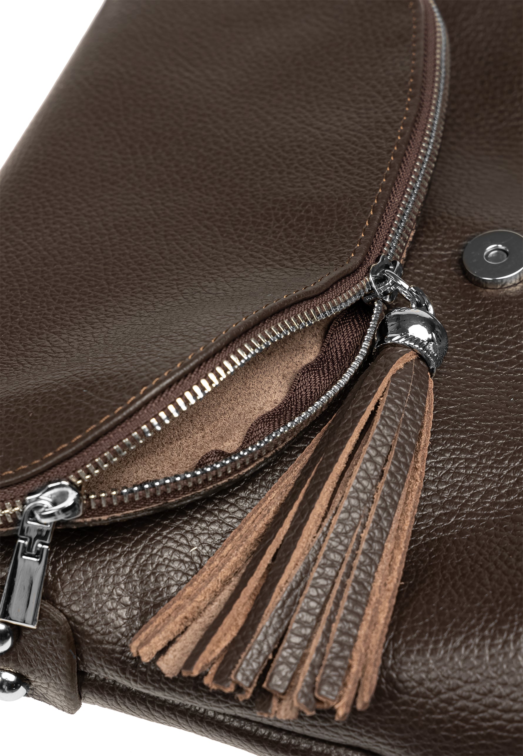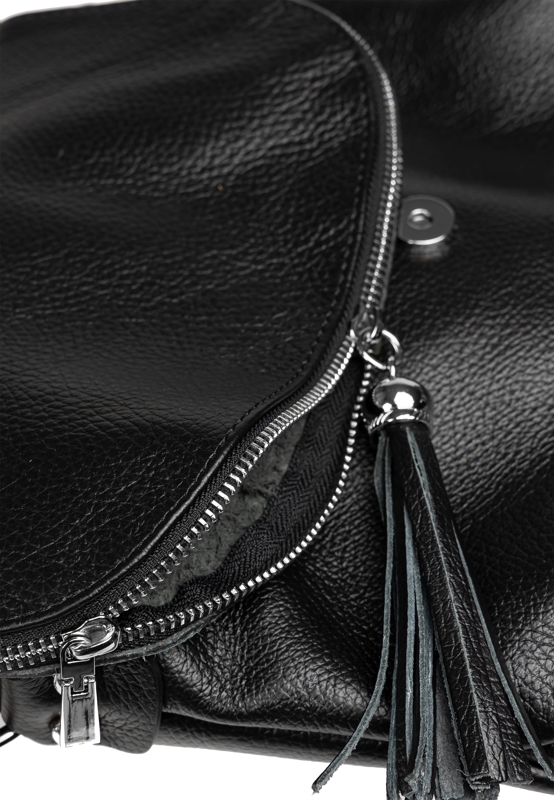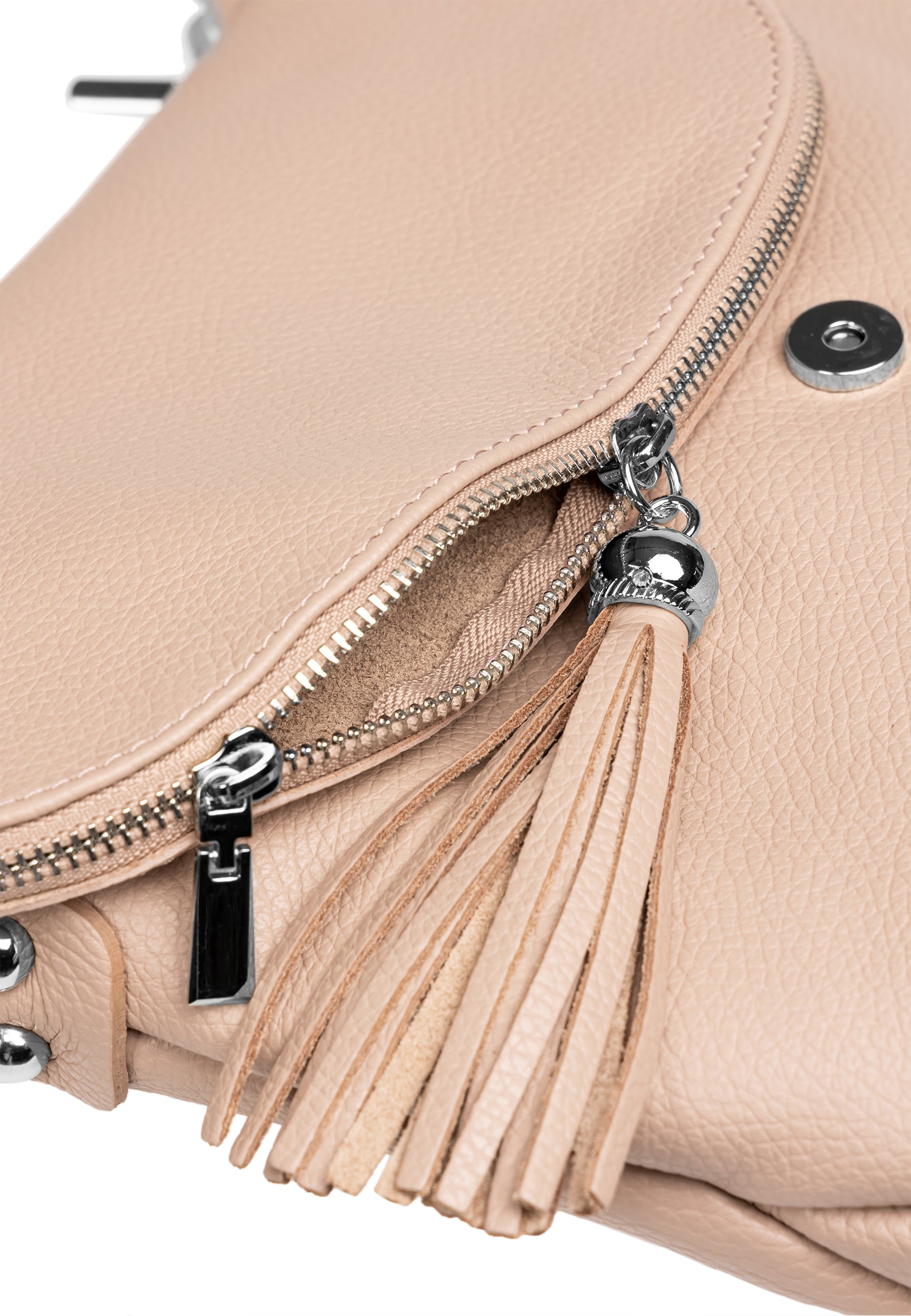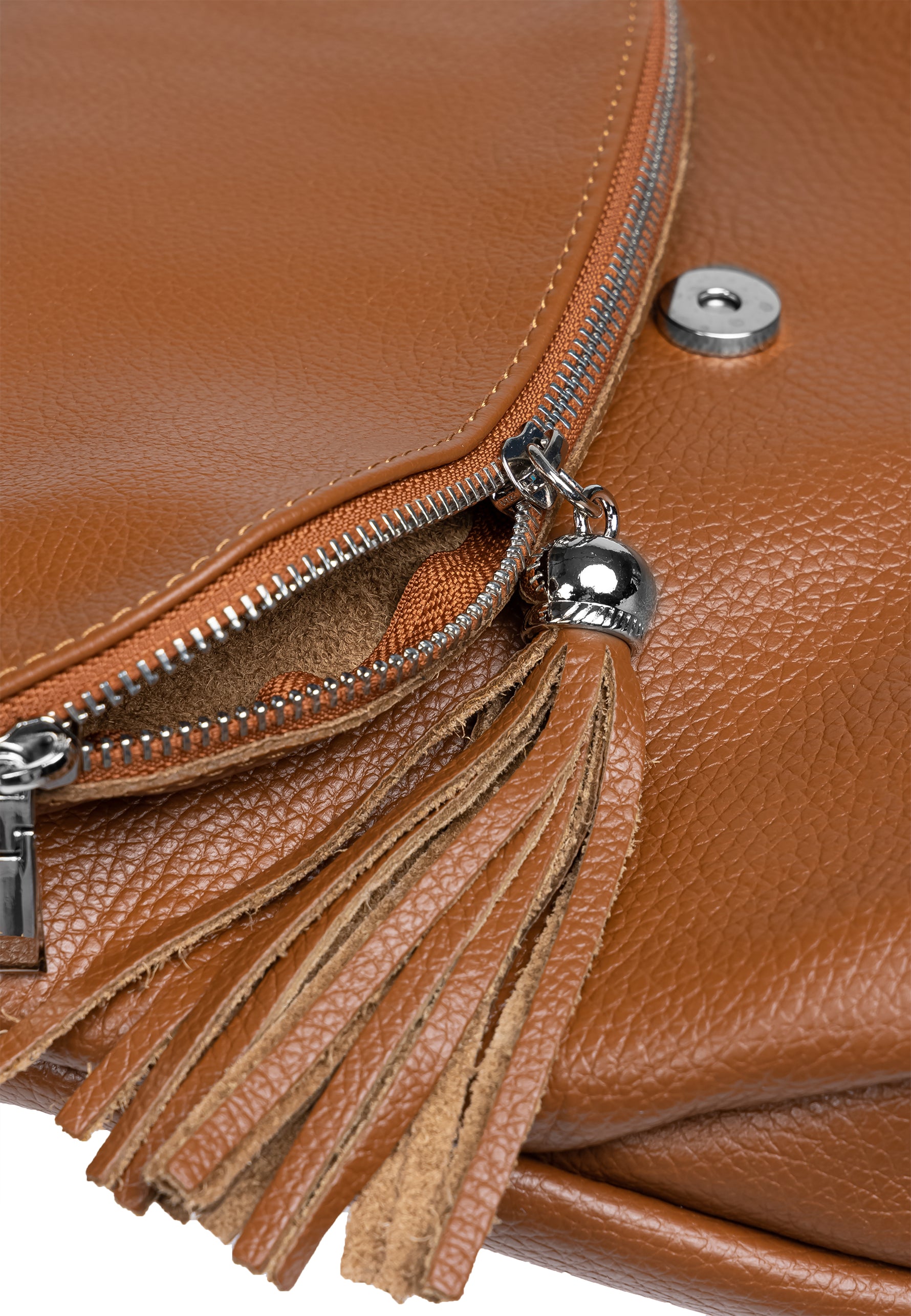 Unsere klassisch elegante Damen Umhängetasche überzeugt durch ihr zeitloses Design und die hochwertige Verarbeitung aus echtem italienischem Rindsleder. Die sorgfältig gestaltete Messenger Bag bietet nicht nur eine stilvolle Optik, sondern auch durchdachte Funktionalität für den Alltag. Im Inneren befindet sich ein großzügiges Hauptfach, das durch zwei kleine Seitenfächer ergänzt wird und mit einem sicheren Reißverschluss verschlossen werden kann. Zusätzlich ist der elegante Überschlag mit einem silberfarbenen Metallreißverschluss ausgestattet und kann ebenfalls als separates Fach genutzt werden. Auf der Rückseite der Tasche befindet sich ein weiteres Reißverschlussfach, das sich ideal für Wertsachen eignet. Die Größe der Tasche ist perfekt abgestimmt - kompakt, aber dennoch geräumig genug, um alle wichtigen Dinge des täglichen Lebens unterzubringen. Der verstellbare Schultergurt aus Leder sorgt für angenehmen Tragekomfort und ermöglicht sowohl das Tragen über der Schulter als auch als praktische Crossbody-Variante. Diese Tasche vereint italienische Handwerkskunst mit zeitloser Eleganz und ist ein stilvoller Begleiter für viele Gelegenheiten.