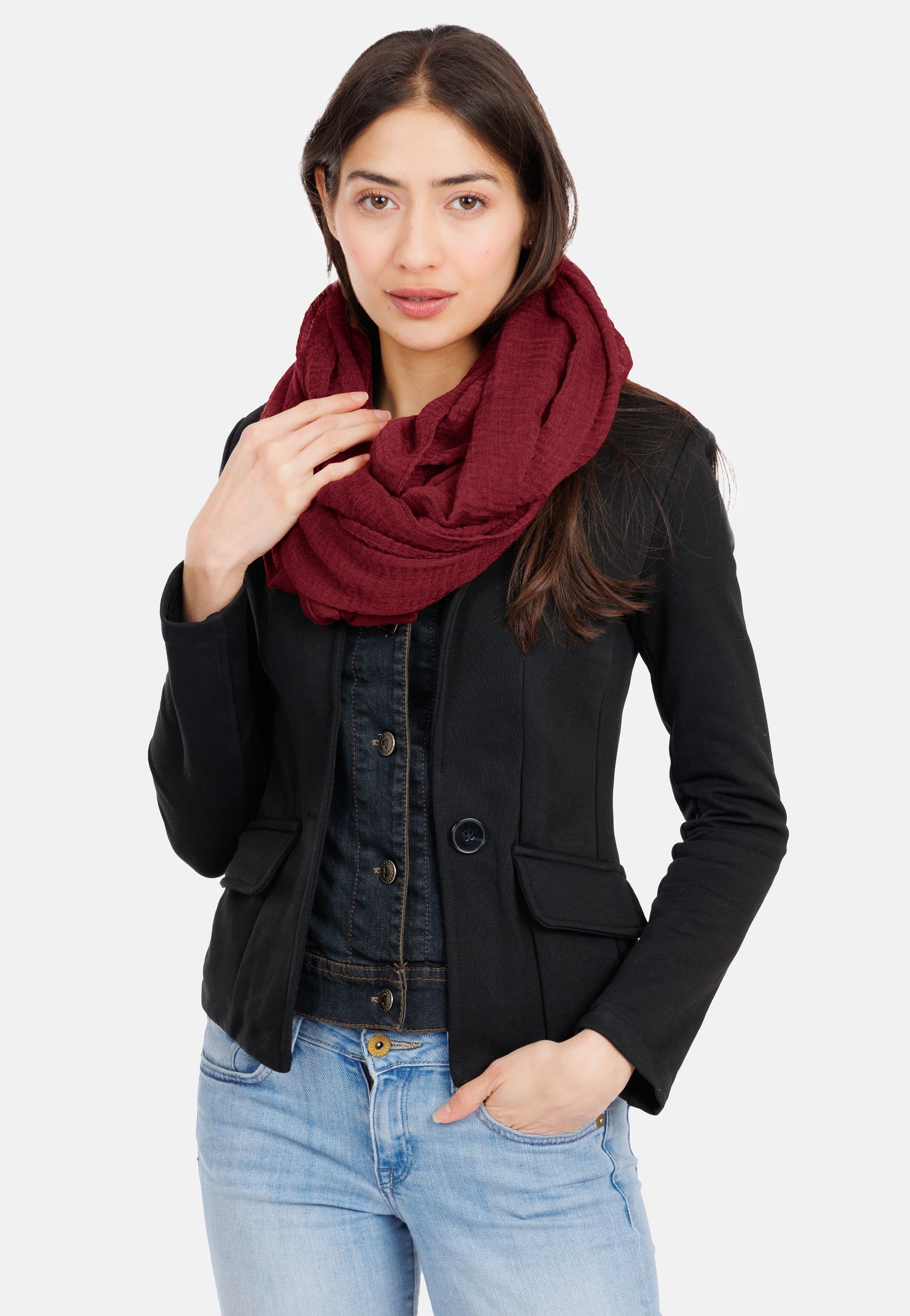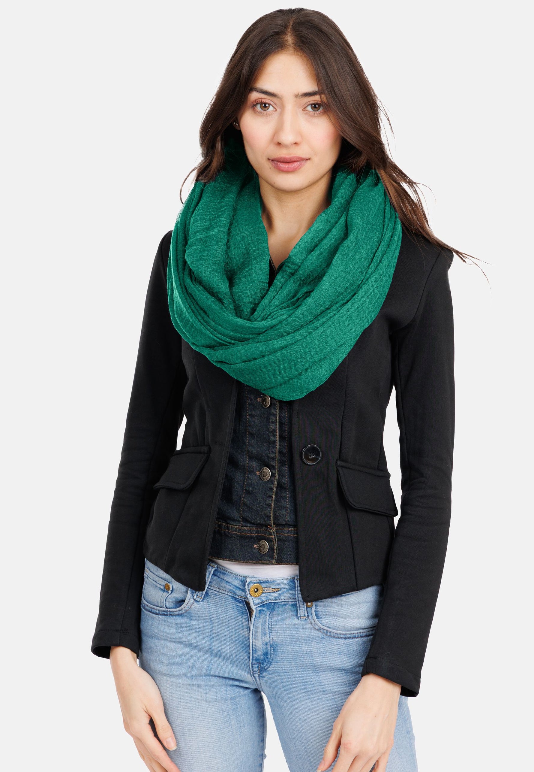 Lässiger unifarbener Damen Vintage Schal mit Crincle Effekt und umlaufenden kleinen Fransen. Der einfarbige Schal hat einen außergewöhnliches, leicht verwaschenes und sehr natürlich wirkendes Material. Perfekt zum angesagten Vintage Look. Der Schal hat eine Größe von ca. 90 x 200 cm. Material: 100% Viskose. Pflegehinweis: Maschinenwäsche bei 30 Grad. Caspar Fashion.