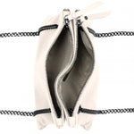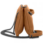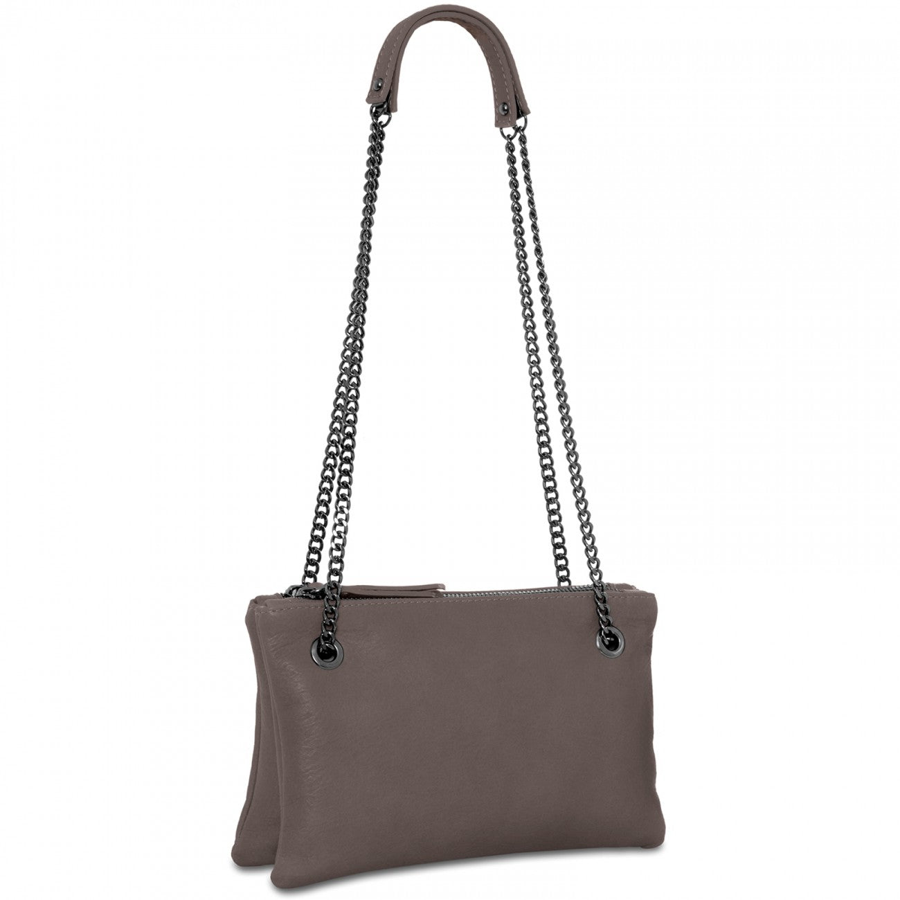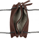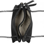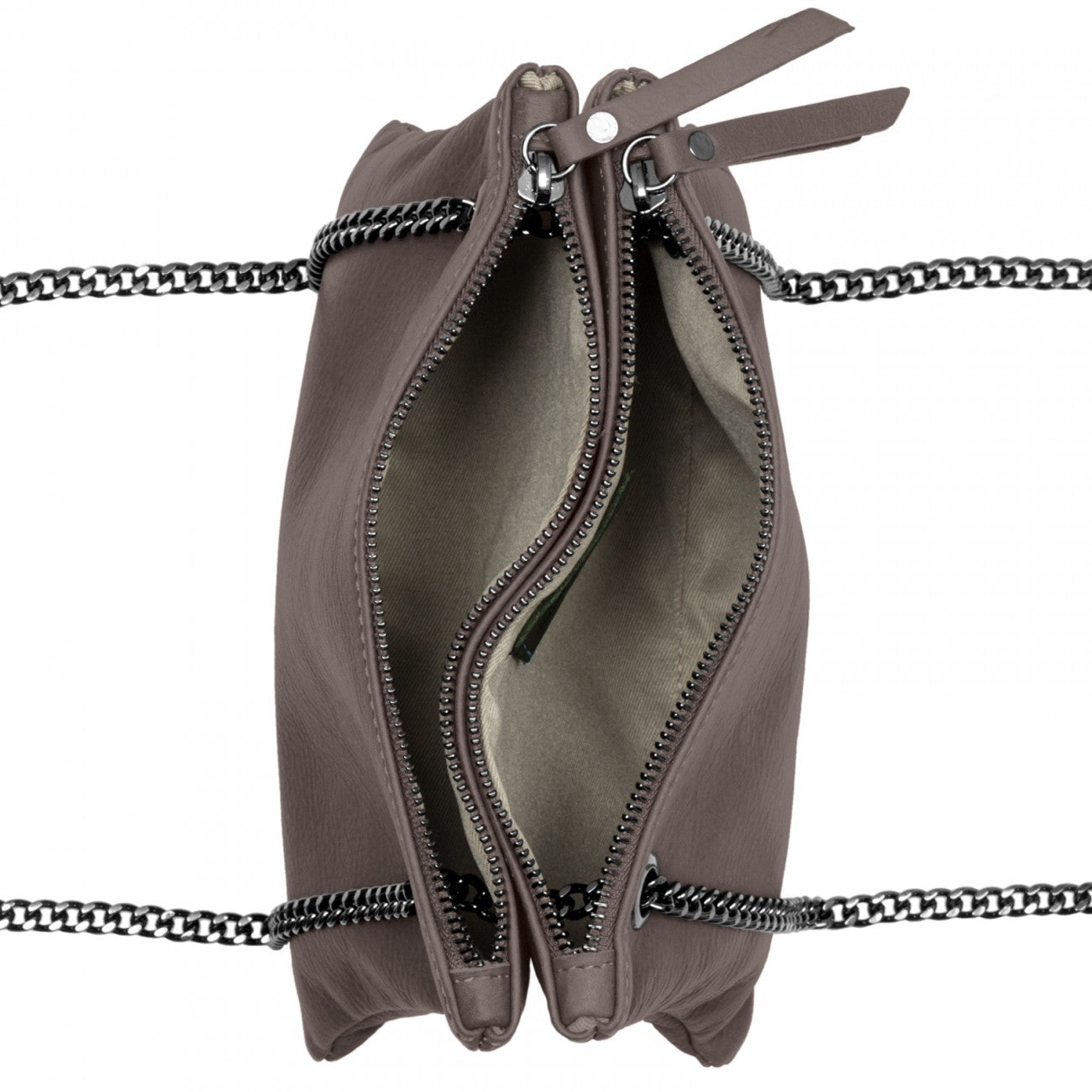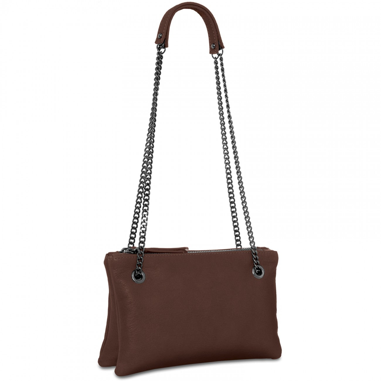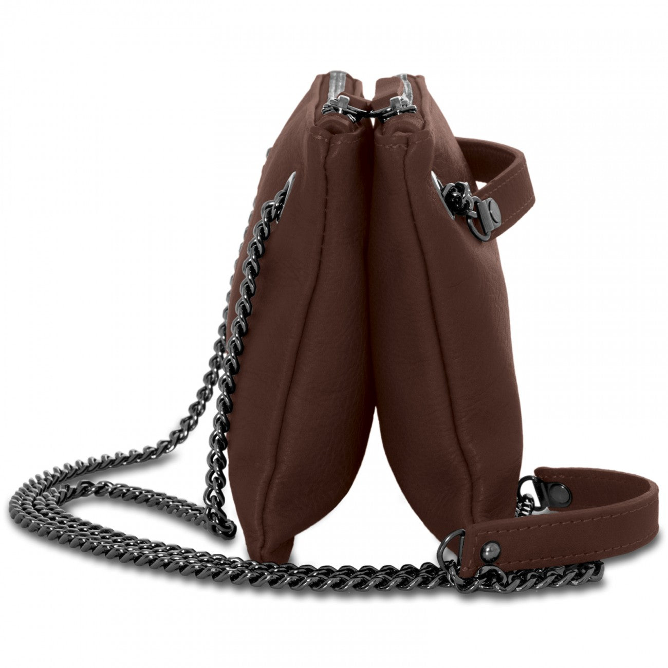 Zwei Taschen in einer! Diese Umhängetasche besteht aus besonders weichem und angenehmen Nappaleder direkt aus Italien und verspricht somit hohen Tragekomfort und beste Qualität. Die Tasche besteht aus zwei Taschen, die als Highlight zu einer Tasche verbunden sind.Die Träger bestehen aus einer Metallkette, welche doppelt getragen wird. Die zwei Hauptfächer können mit einem Reißverschluss geschlossen werden. Die Tasche besteht aus besonders weichem, italienischem Nappaleder. Maße: Länge ca. 23,5 cm, Höhe (ohne Henkel) ca. 15 cm, Breite ca. 3 cm. Caspar Fashion.