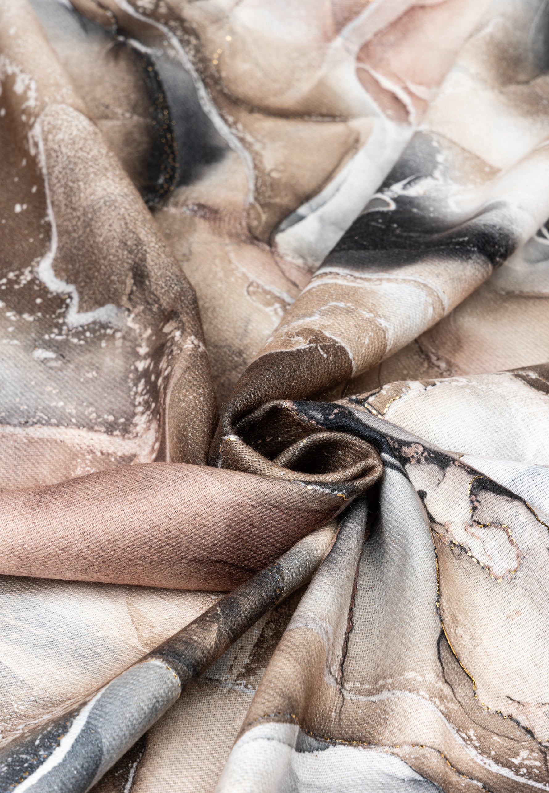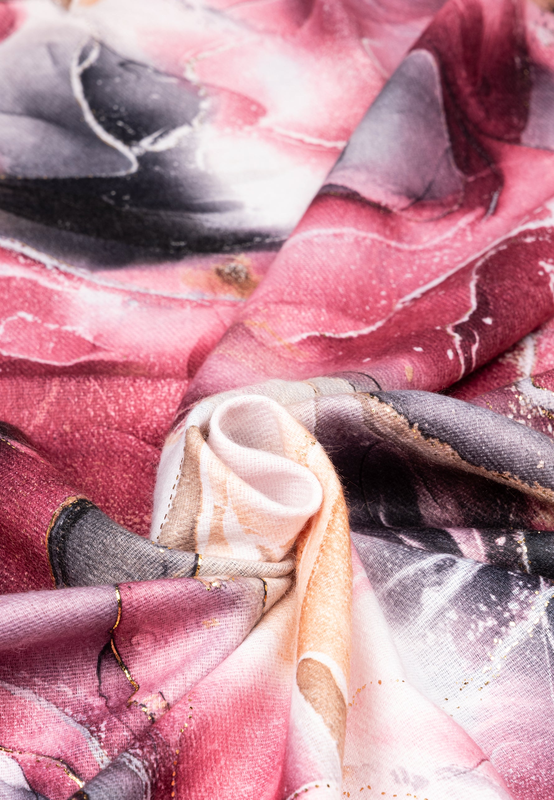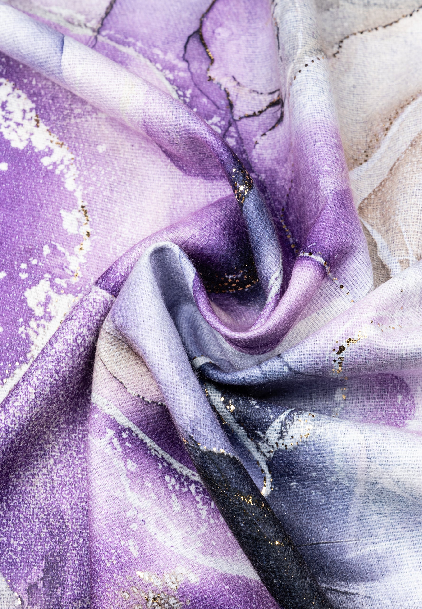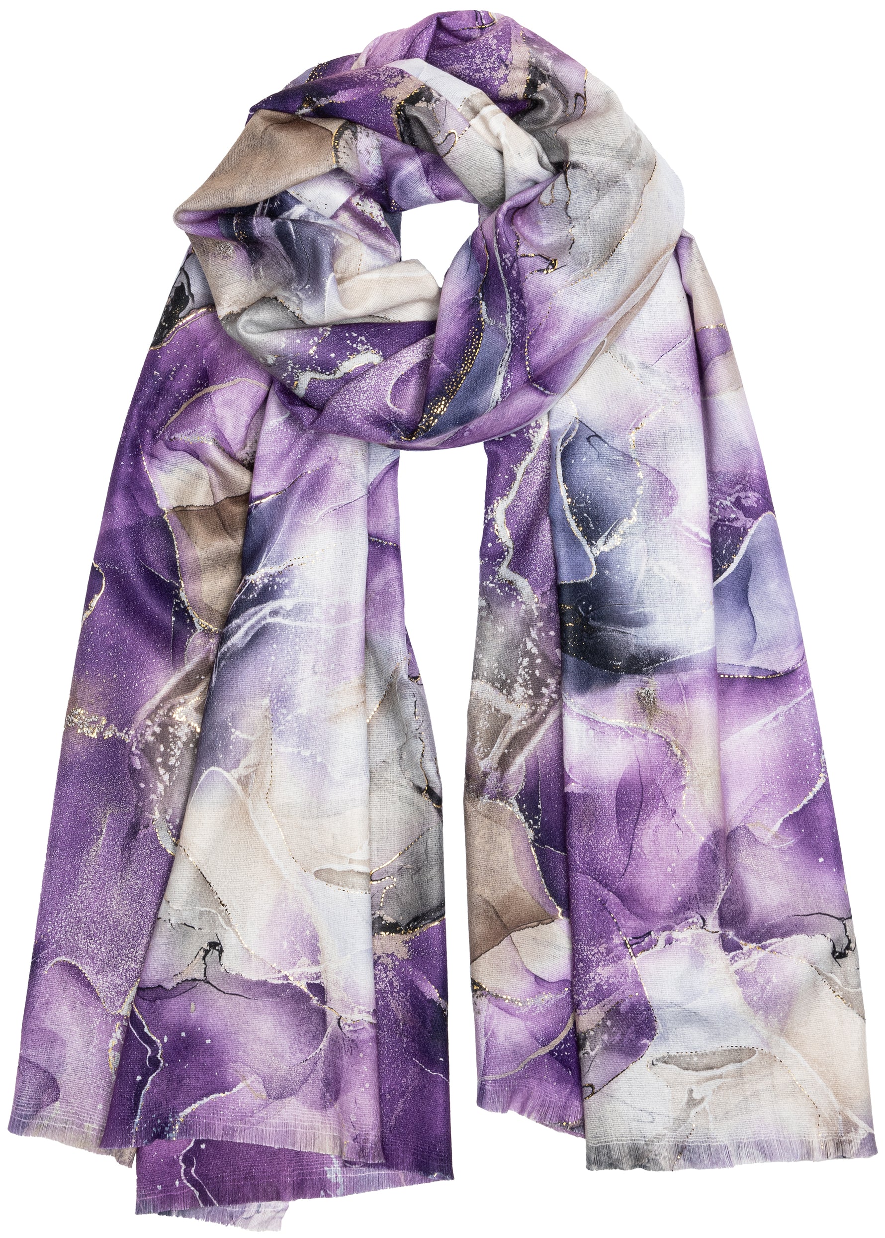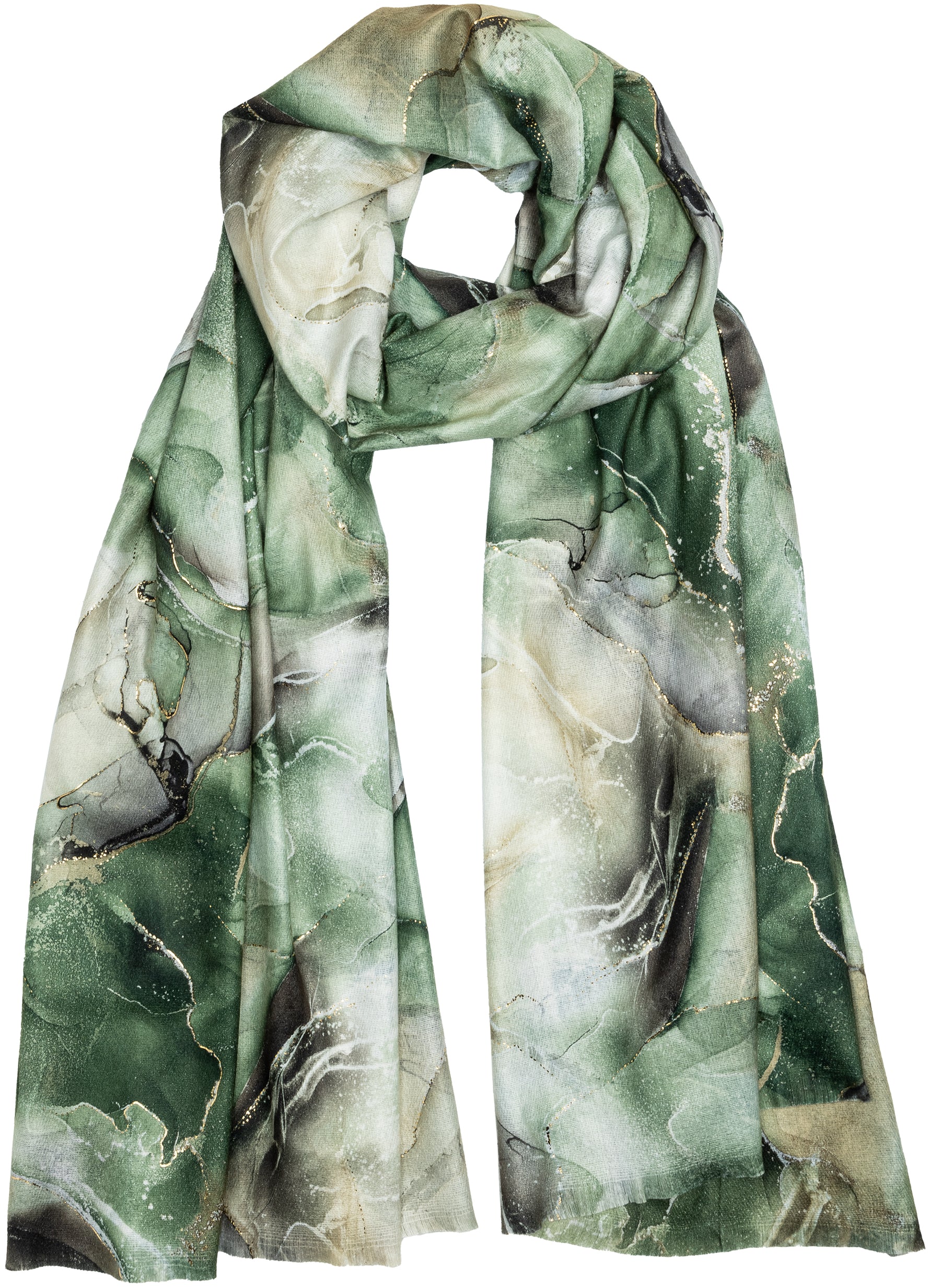 Stylischer, mitteldicker Damen XL Schal mit ausgefallenem Aquarell Print und gold glänzenden Akzenten. Durch das softe und gut wärmende Material ist dieser Schal sehr angenehm zu tragen. Er kann aufgrund seiner Größe auch kann als Cape, Poncho, Umhang oder Stola getragen werden. Der beidseitige Aquarell Print mit den goldglänzenden Akzentadern macht diesen Schal zu etwas ganz besonderem. Maße: Länge ca. 200 cm, Breite ca. 75 cm. Caspar Fashion.